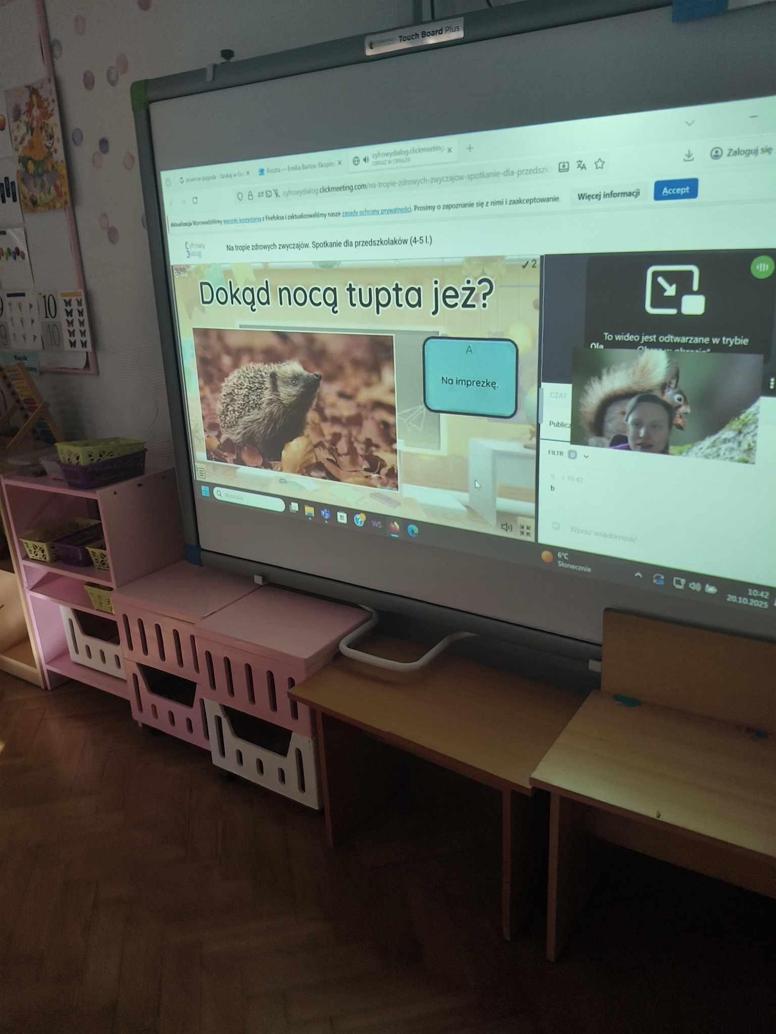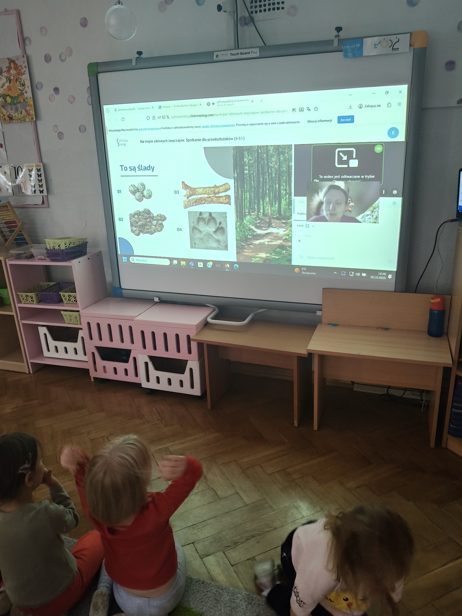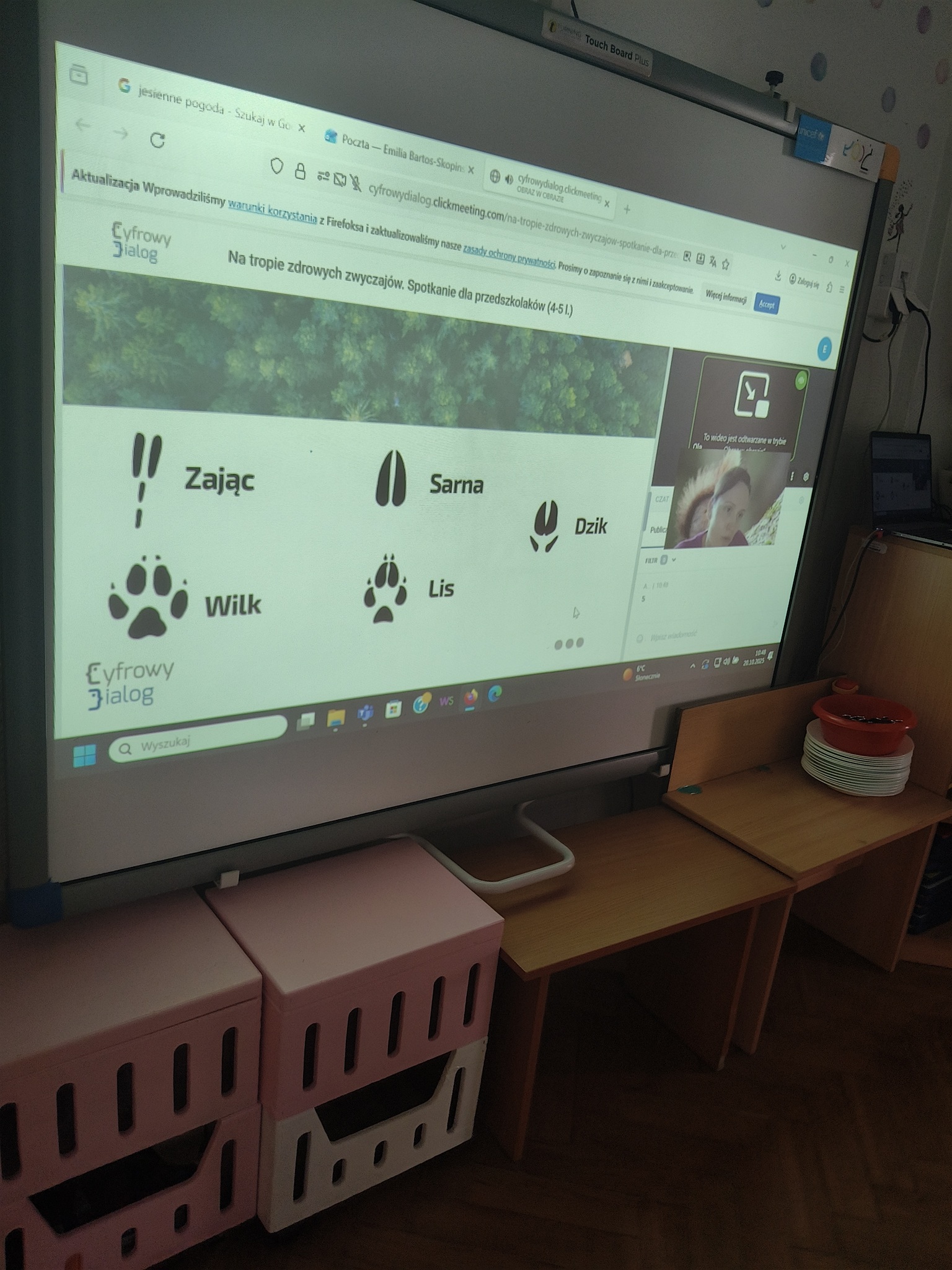 W ramach Europejskiego Tygodnia Kodowania – Code Week dzieci z grup: Smyki i Żaki odkrywały, czym jest kodowanie. Przedszkolaki uczestniczyły w zajęciach online „Na tropie zdrowych zwyczajów” przygotowanych przez Stowarzyszenie Cyfrowy Dialog. Podczas interaktywnych warsztatów dzieci przekonały się, co wspólnego mają leśne zwierzęta, taniec i zdrowe nawyki cyfrowe. Zamieniły się w małych detektywów-koderów i odkrywały tropy leśnych zwierząt, które pomogły odszyfrować kod do zdrowych nawyków cyfrowych. Kodowały ruchem i rozwiązywały jesienne zagadki z pomocą ScratchJr.