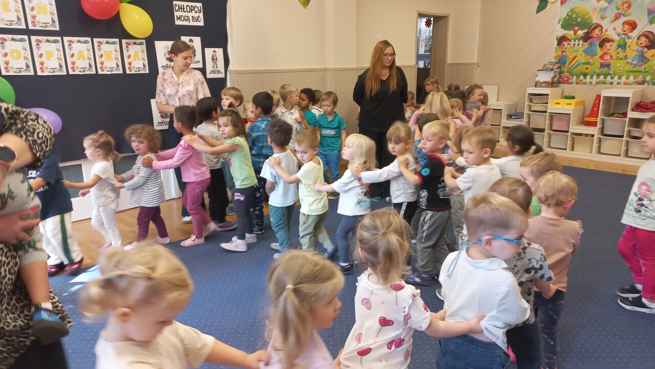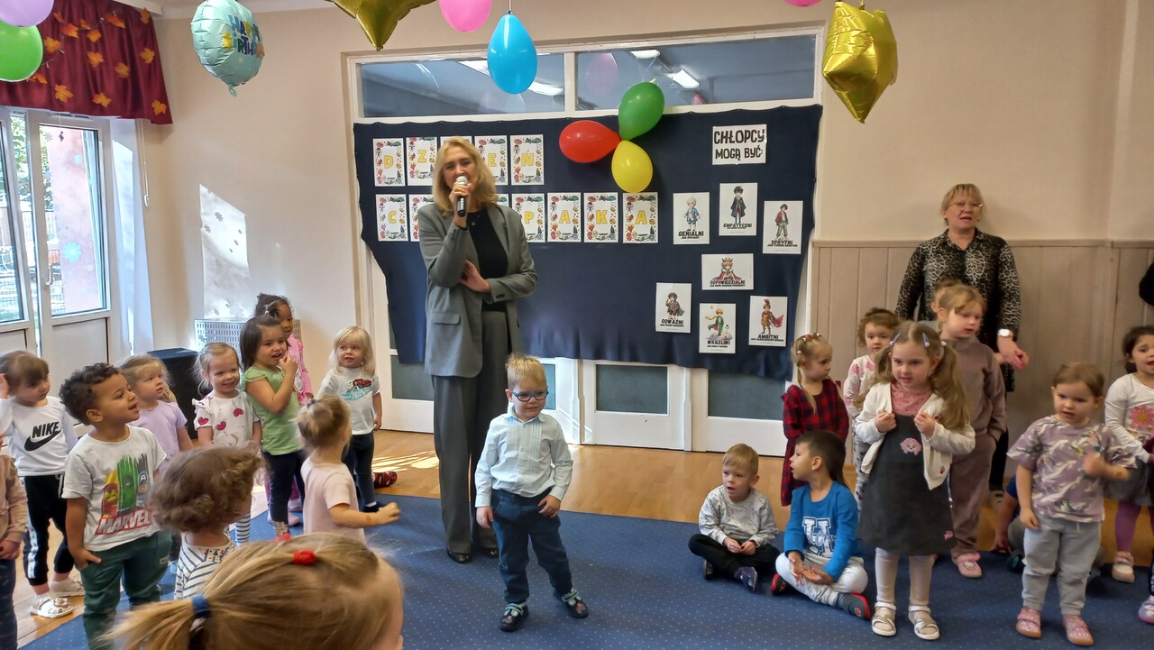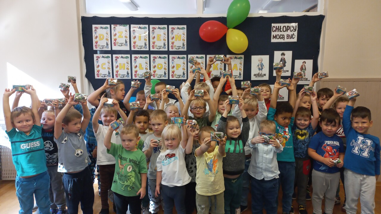 Na samym początku zebrane dziewczynki głośnym chórem zaśpiewały „Sto lat”, a następnie wszystkie przedszkolaki ruszyły do wesołej zabawy z okazji tego święta! Chłopcy mieli okazję wziąć udział w licznych konkursach przygotowanych TYLKO dla nich, ale jako prawdziwi dżentelmeni, zaprosili do zabawy również nasze małe kobietki! Było głośno, radośnie i wesoło, a uśmiechy wprost nie schodziły z buziek naszych milusińskich! Na koniec uroczystość każdy chłopiec otrzymał drobny upominek, z którym dumnie pozował do pamiątkowego zdjęcia. Wszystkim mężczyznom, tym małym i tym całkiem dużym, jeszcze raz życzymy wszystkiego najlepszego z okazji Ich Święta!!!