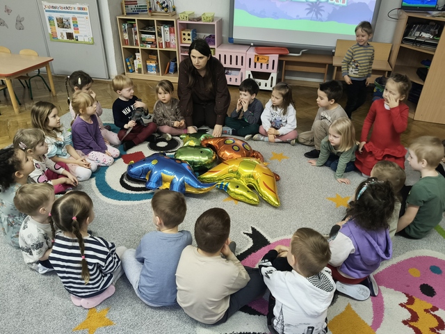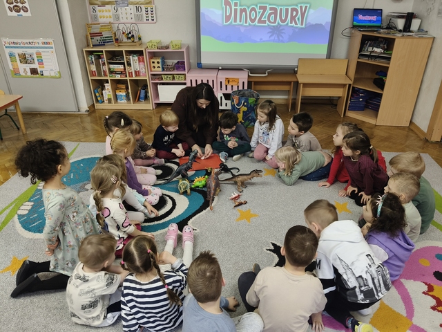 26 lutego dzieci z grupy Smyki świętowały ,,Dzień Dinozaura". Na początku zajęć dzieci obejrzały ciekawy film edukacyjny, z którego dowiedziały się, jak żyły dinozaury, jak wyglądały, czym się żywiły oraz jak wyginęły i kim jest paleontolog. Przedszkolaki przeprowadziły eksperyment z wulkanem. Dzieci rozpoznawały nazwy dinozaurów, klasyfikowały dinozaury na większe i mniejsze, mięsożerne i roślinożerne i rybożerne. Przedszkolaki brały również udział w różnych zabawach ruchowych. Był to szczególny dzień pełen radosnych wrażeń.