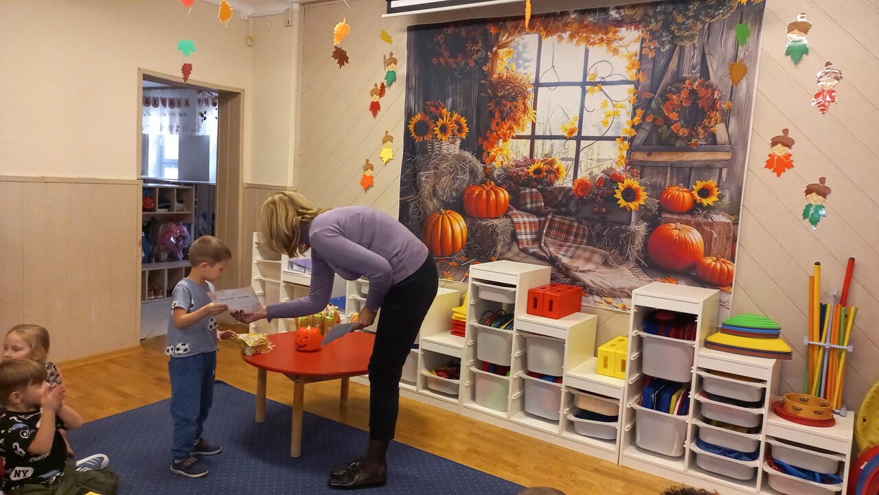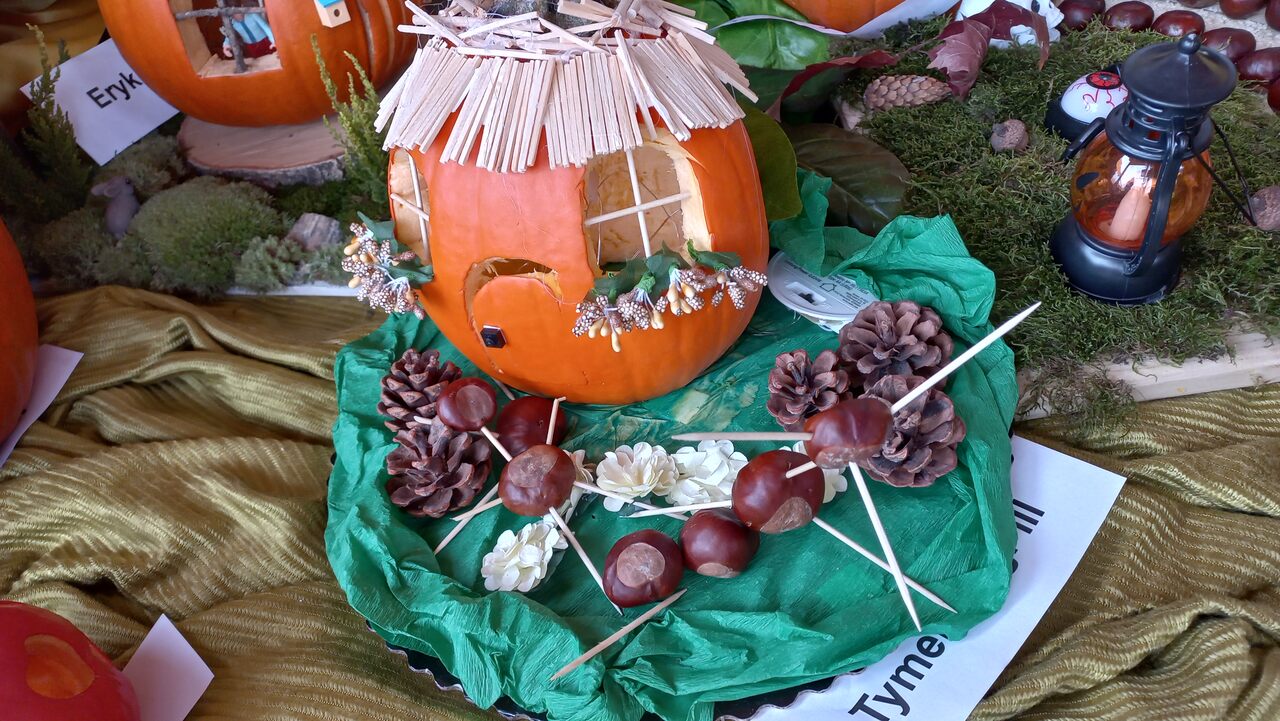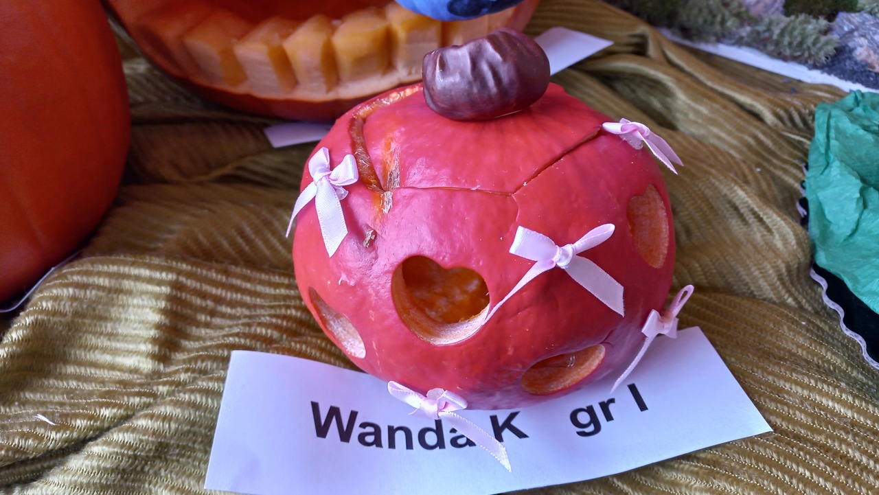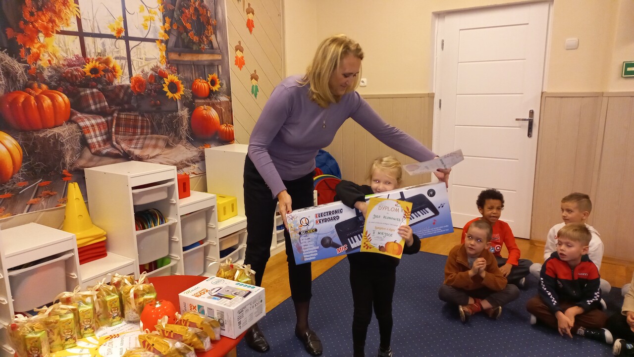 Zwięczeniem „Dnia Dyni” było wielkie rozstrzygnięcie konkursu „Lampion z dyni”. Jest nam bardzo miło, że konkurs cieszył się dużym zainteresowaniem, a prace zaskoczyły całe Jury! Ciężko było wybrać te 3 najpiękniejsze prace. Po długich naradach doszliśmy do wniosku, że I miejsce należy do Jagody z grupy Smyków, II miejsce do Julii z grupy Żaczków, a III miejsce do Margharyty z grupy Tuptusiów! Serdecznie dziękujemy zwycięzcom, a jednocześnie gorąco gratulujemy i dziękujemy wszystkim dzieciom biorącym udział w konkursie! To dzięki Wam wejście do Przedszkola zamieniło się w dyniową farmę!!!