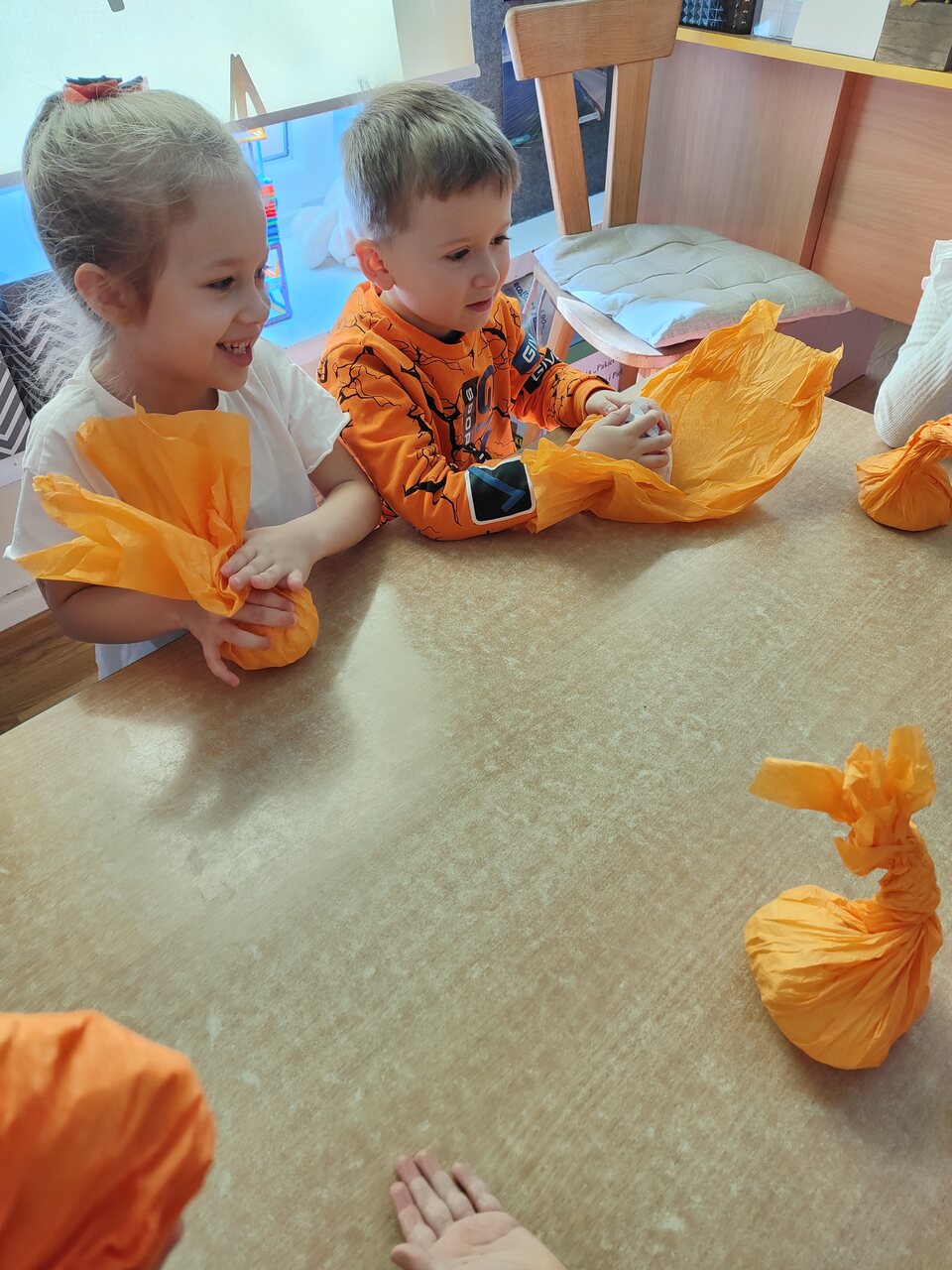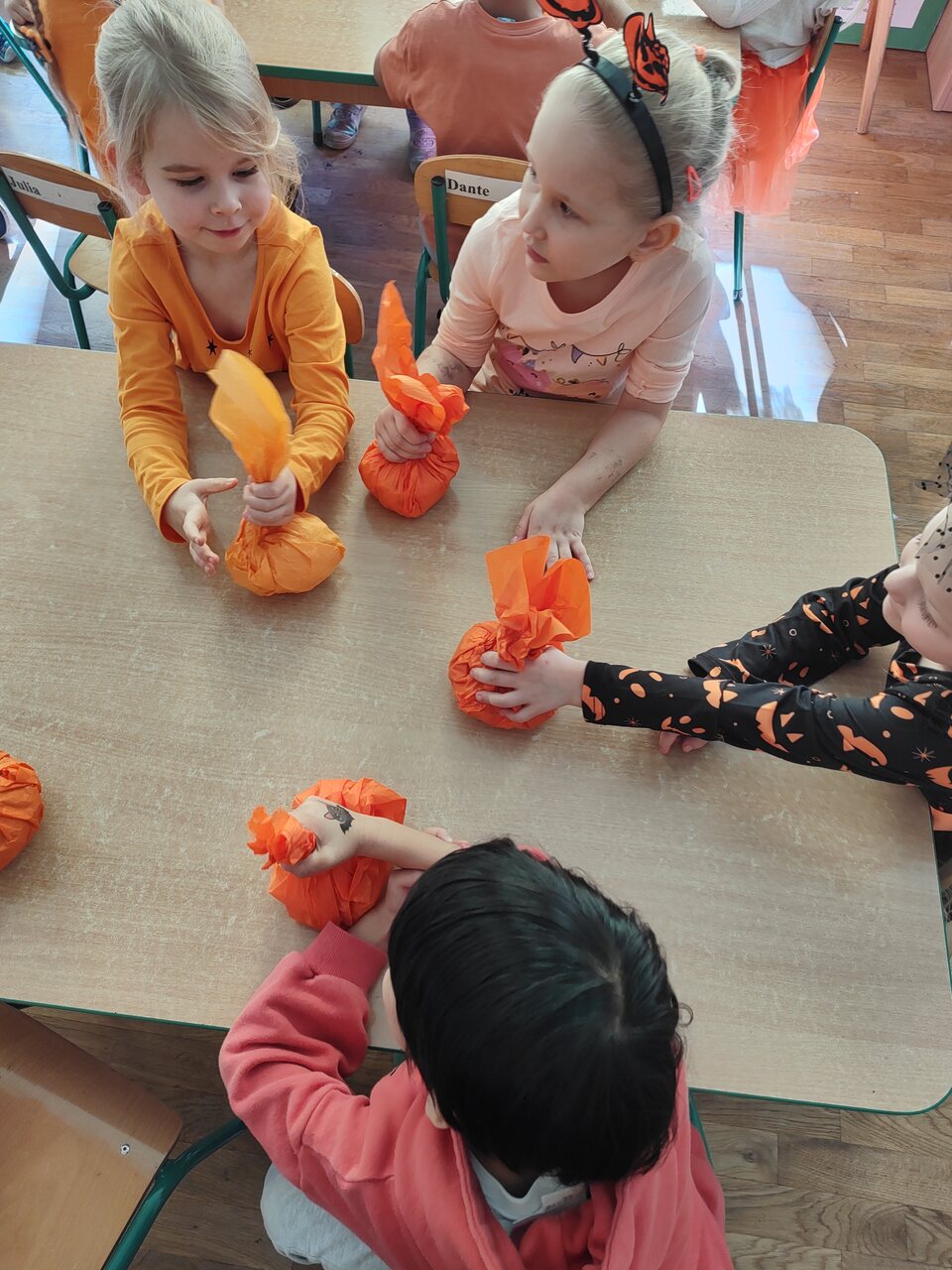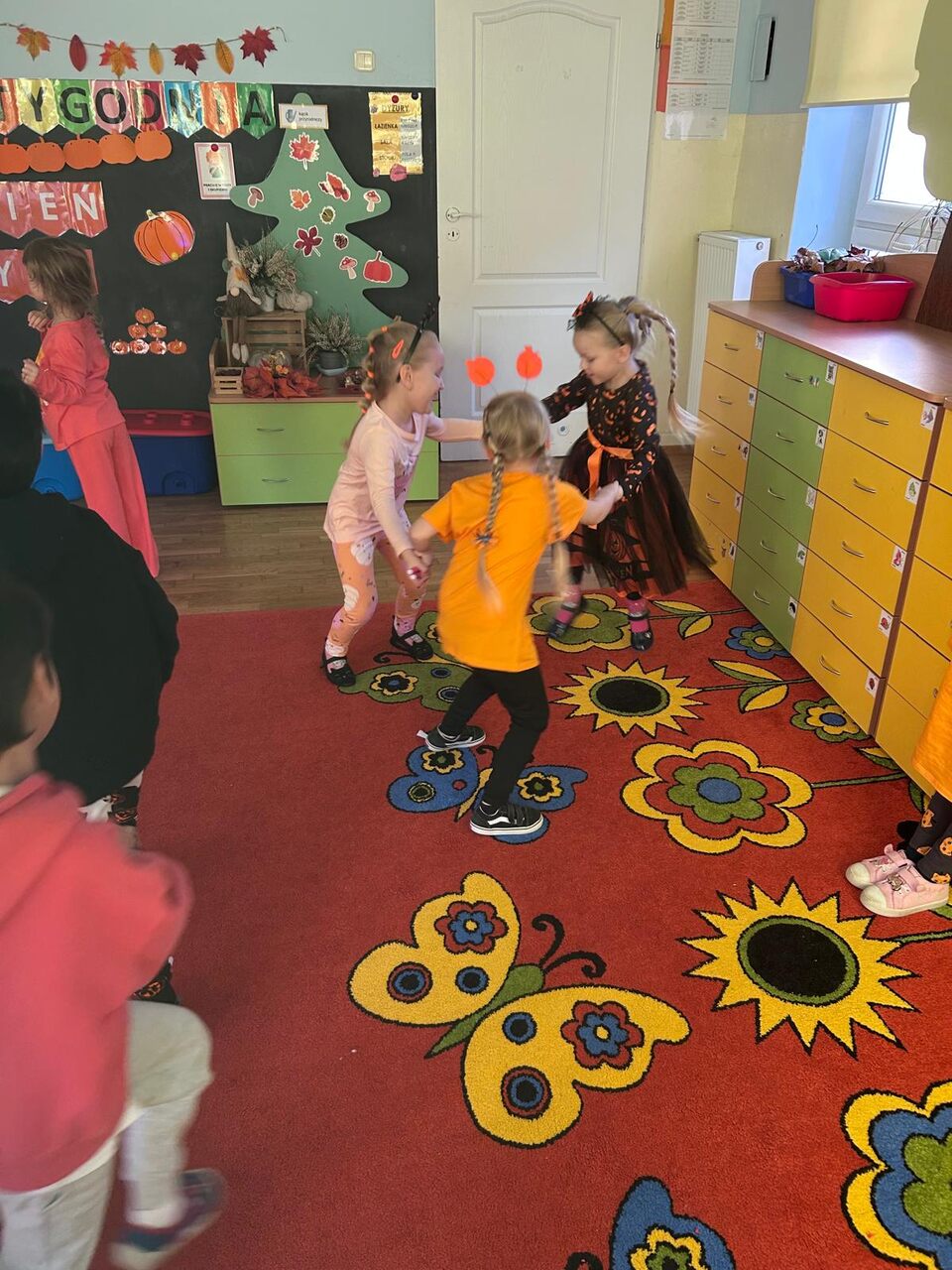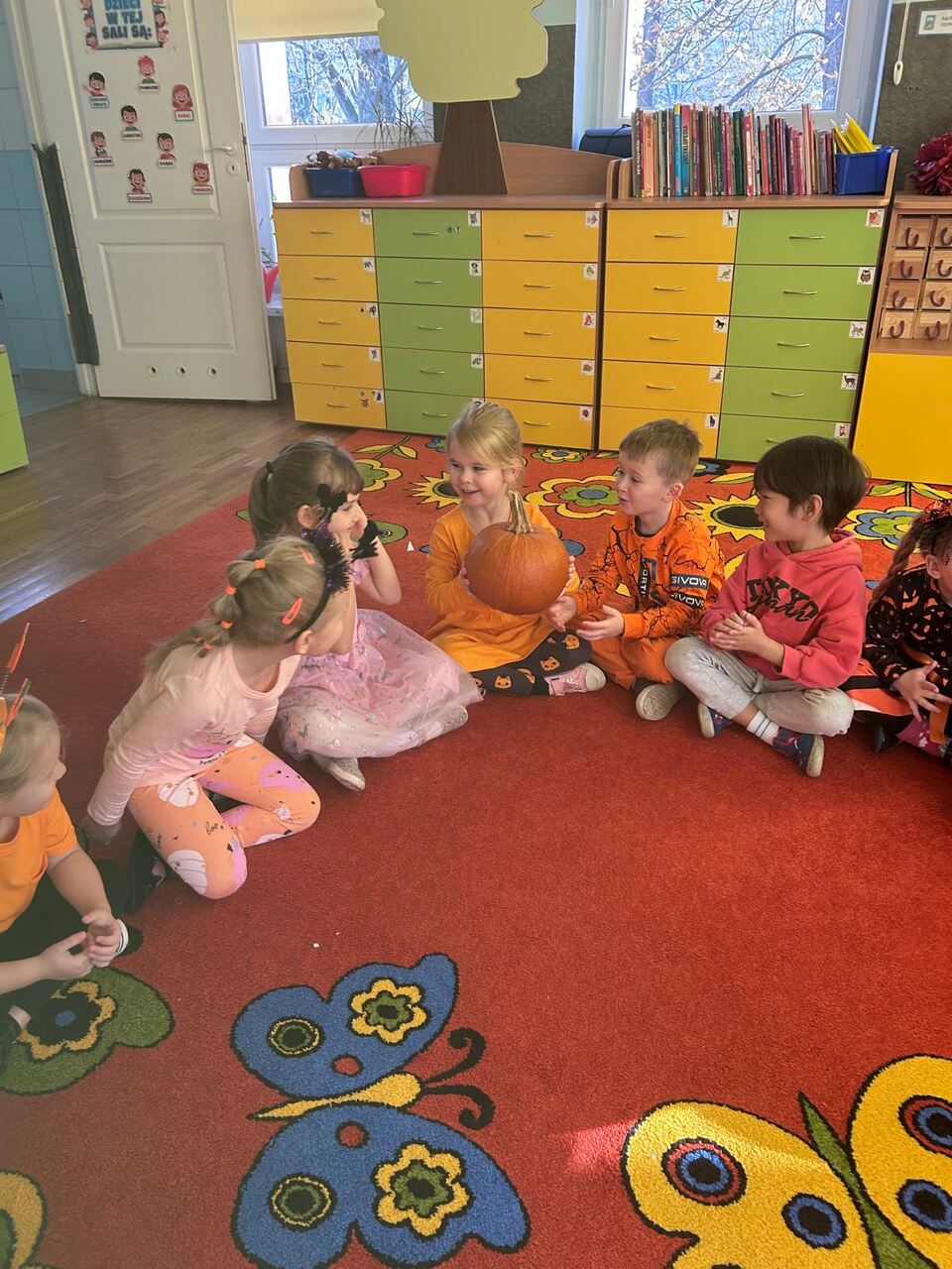 31.10.2025r. świętowaliśmy Dzień Dyni. Niemal wszystkie dzieci przyszły tego dnia ubrane na pomarańczowo, dzięki czemu nasze przedszkole zamieniło się w dyniowe pole!!! Każda grupa wiekowa zorganizowała zajęcia tematycznie związane z dyniami i kolorem pomarańczowym. Maluszki wyszły do pobliskiej Biblioteki Miejskiej „Dygresja”, aby uczestniczyć w dyniowych warsztatach- wysłuchały opowiadania, wykonały pracę plastyczną, wzięły udział w sesji zdjęciowej, a nawet poczęstowały się super kwaśnym cukierkiem! Żaczki w trakcie zajęć poznały różne rodzaje dyń oraz ich przeznaczenie, a przede wszystkim wykonały wspaniałe prace plastyczne- dynie z bibuły. Natomiast Juniorzy skupili się tego dnia na zabawach i konkursach ruchowych, podczas których nieodzownym elementem była dynia. Skorzystaliśmy z okazji i na koniec dnia wykonaliśmy wspólne, dyniowo- pomarańczowe, zdjęcie!!!