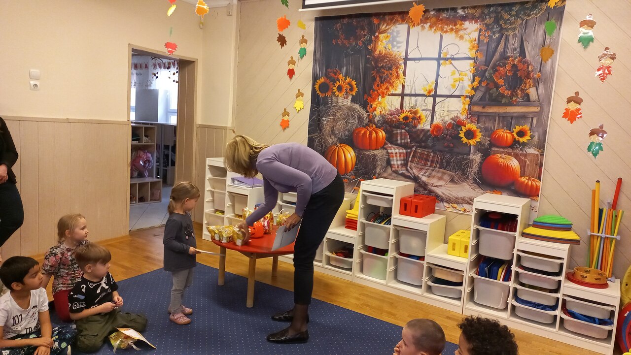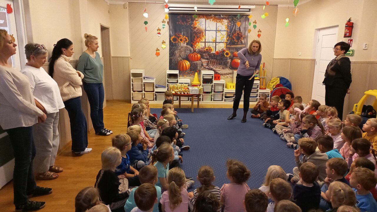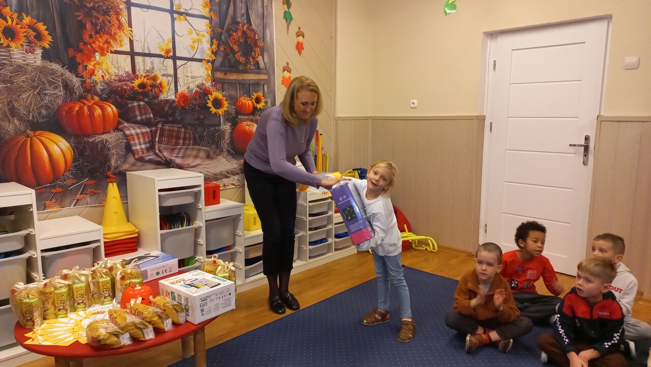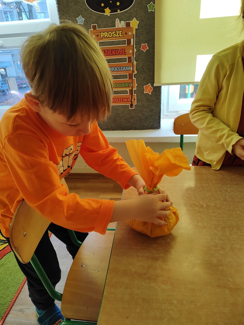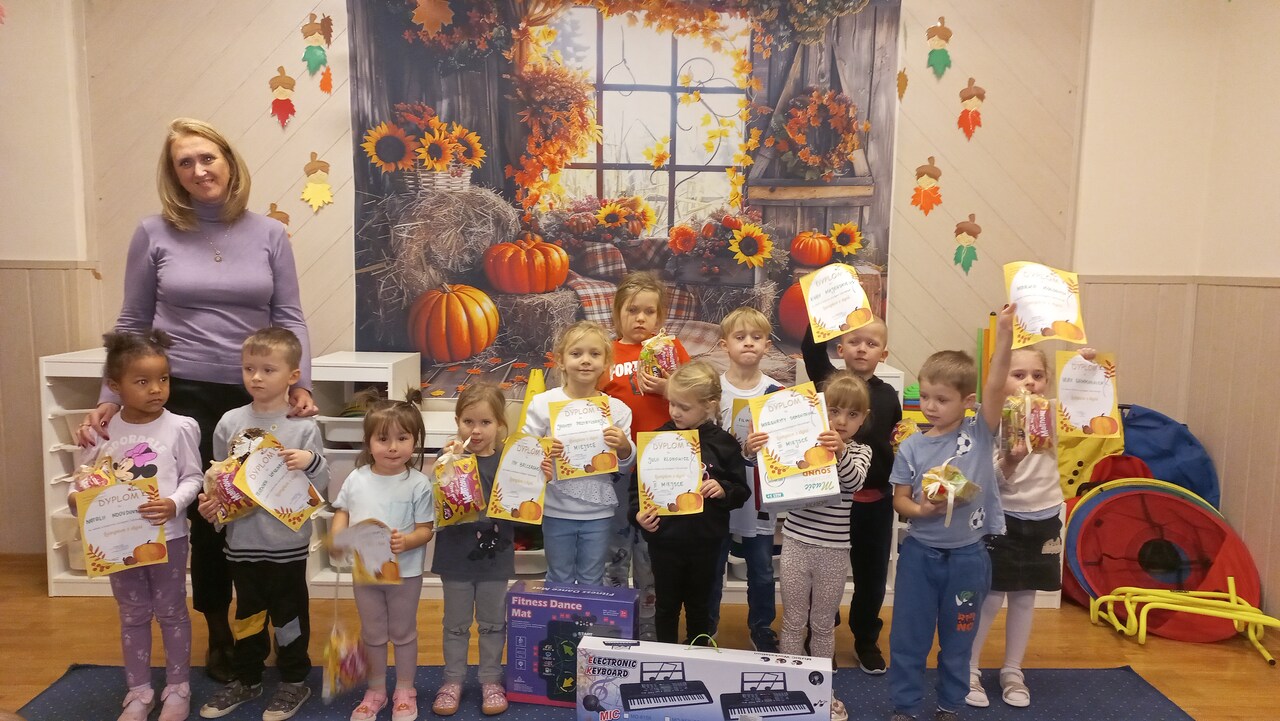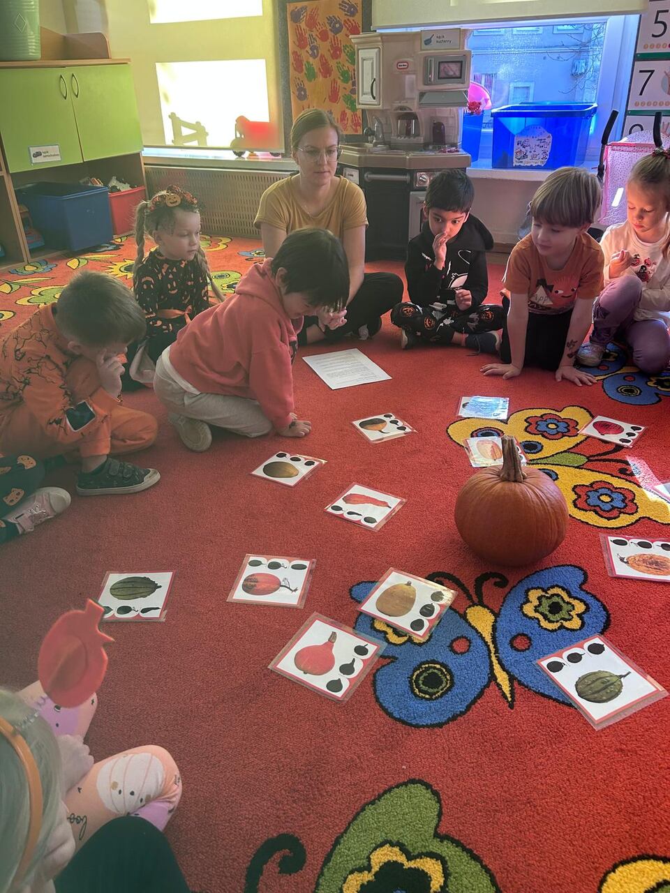 31.10.2025r. świętowaliśmy Dzień Dyni. Niemal wszystkie dzieci przyszły tego dnia ubrane na pomarańczowo, dzięki czemu nasze przedszkole zamieniło się w dyniowe pole!!! Każda grupa wiekowa zorganizowała zajęcia tematycznie związane z dyniami i kolorem pomarańczowym. Maluszki wyszły do pobliskiej Biblioteki Miejskiej „Dygresja”, aby uczestniczyć w dyniowych warsztatach- wysłuchały opowiadania, wykonały pracę plastyczną, wzięły udział w sesji zdjęciowej, a nawet poczęstowały się super kwaśnym cukierkiem! Żaczki w trakcie zajęć poznały różne rodzaje dyń oraz ich przeznaczenie, a przede wszystkim wykonały wspaniałe prace plastyczne- dynie z bibuły. Natomiast Juniorzy skupili się tego dnia na zabawach i konkursach ruchowych, podczas których nieodzownym elementem była dynia. Skorzystaliśmy z okazji i na koniec dnia wykonaliśmy wspólne, dyniowo- pomarańczowe, zdjęcie!!!