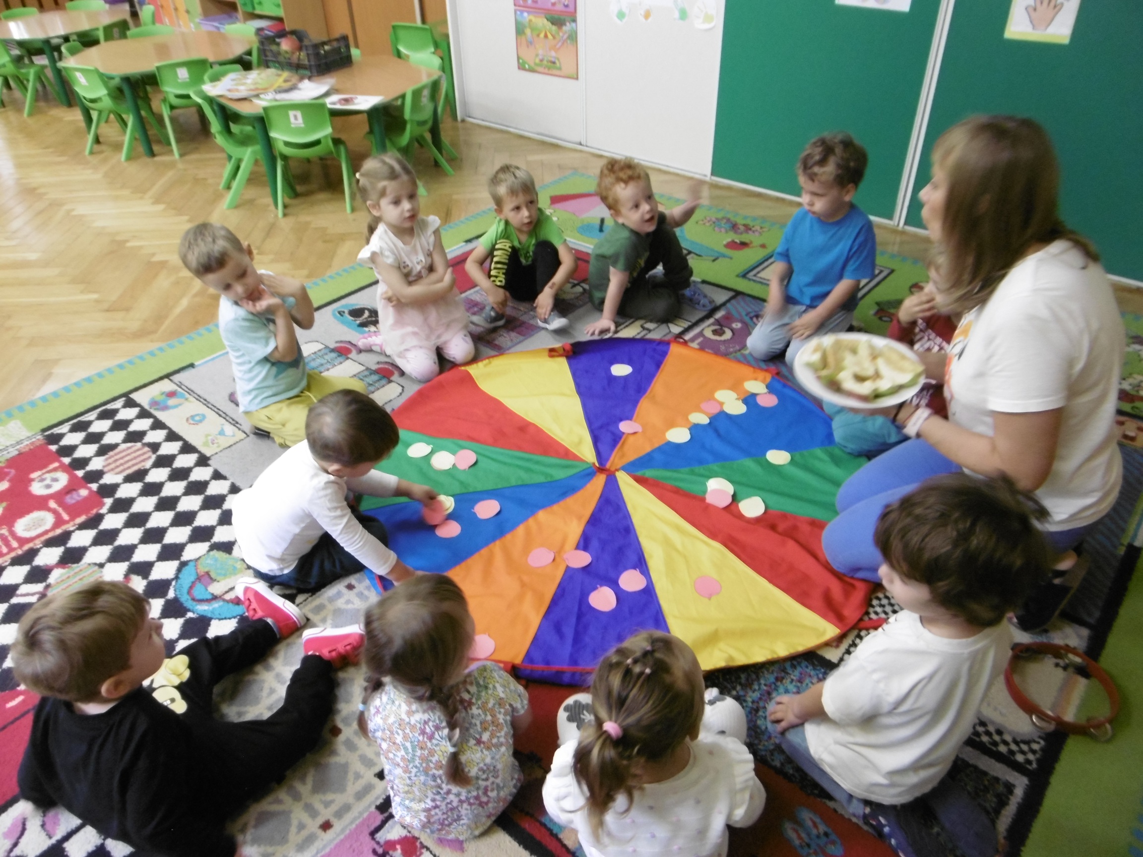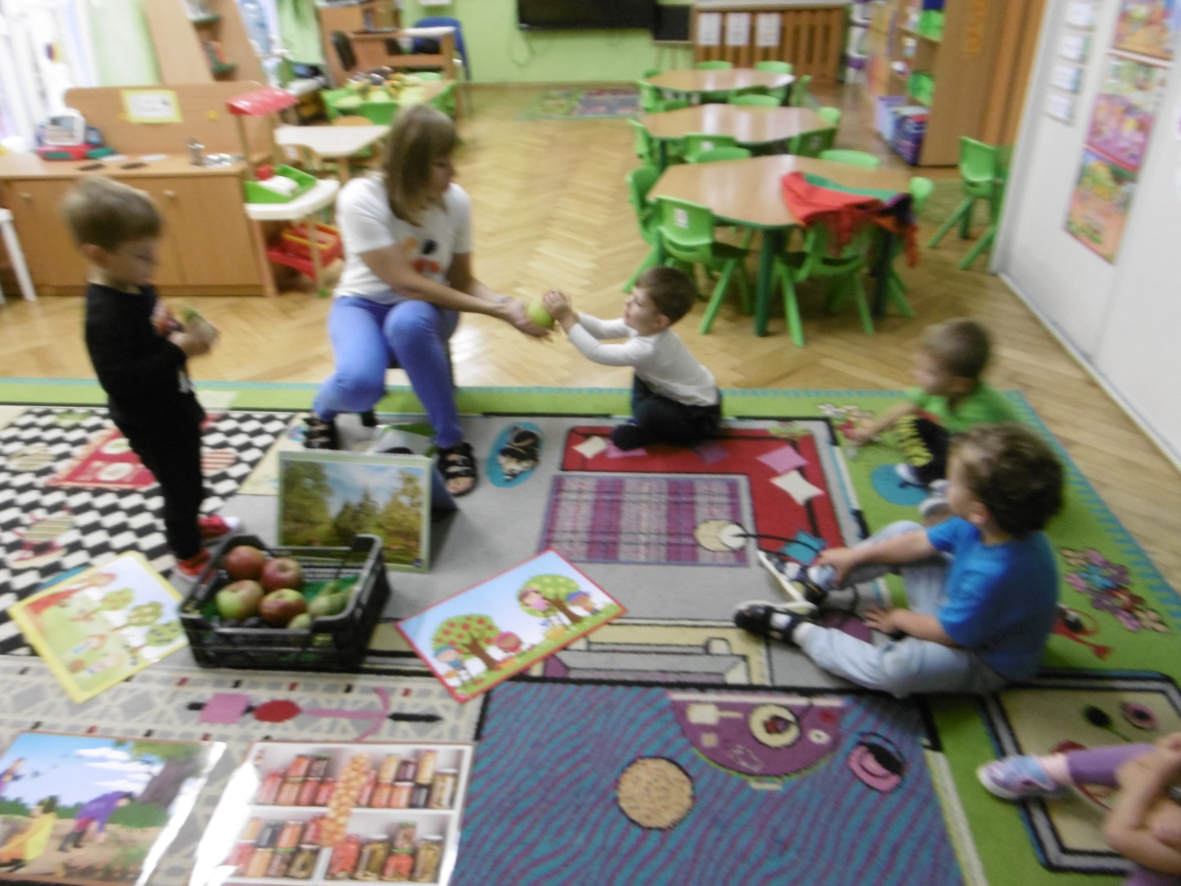 W ramach obchodów Dnia Jabłka dzieci z grupy Tuptusie uczestniczyły w całym cyklu zajęć i zabaw edukacyjnych oraz ruchowych, które związane były z darami sadu.