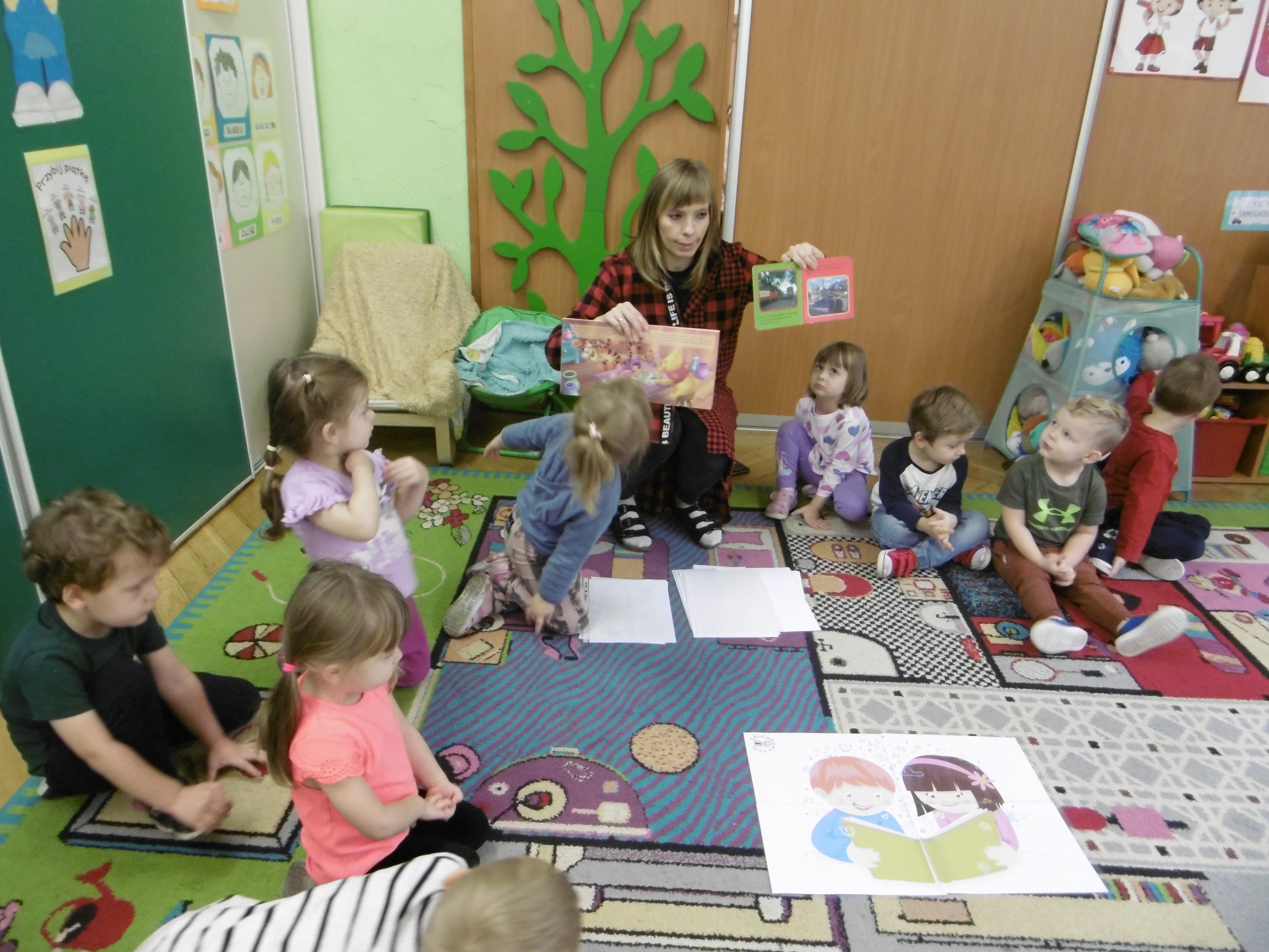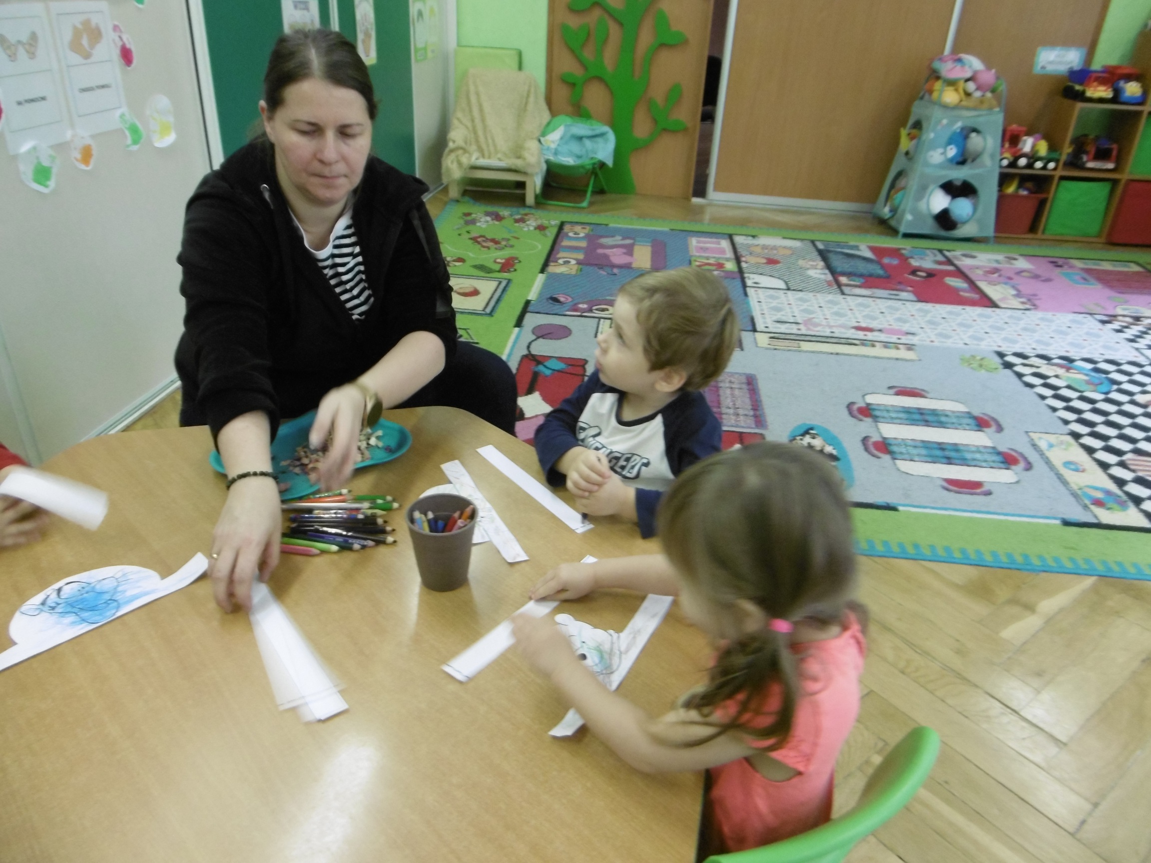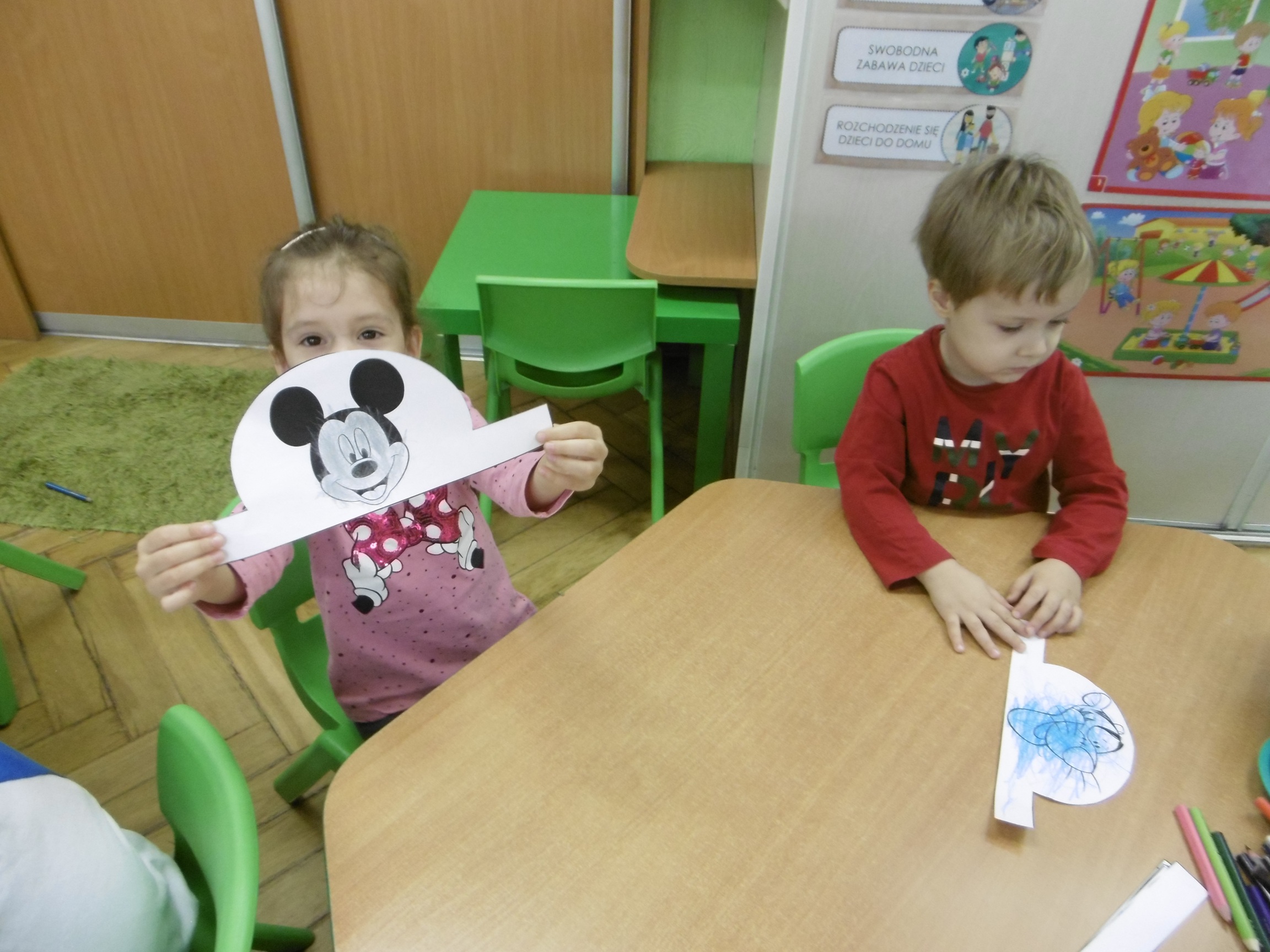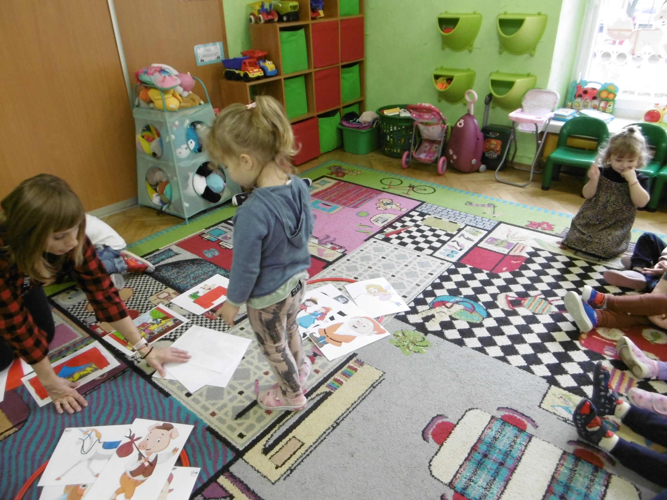 W trakcie obchodów Dnia Postaci z bajek, dzieci z grupy Tuptusie rozmawiały o tym, gdzie można się spotkać z bajkami dla dzieci (w książkach, w telewizji, w teatrze, czy w kinie). Przedszkolaki wymieniały także bohaterów ulubionych bajek dla dzieci i ich segregowały. Następnie składały z części obrazki przedstawiające bajkowych bohaterów oraz wyszukiwały ,,taką samą’’ postać przedstawioną na dużym obrazku. Tuptusie wykonały także opaski na głowę przedstawiające swoje ulubione postaci z bajek dla dzieci. Uczestniczyły też w zabawie przy niezwykle tanecznej muzyce. Przedszkolaki wysłuchały także bajki o ,,Czerwonym Kapturku’’, a następnie wykonały pracę, podczas której dopasowywały brakujące elementy do dużego obrazka.
