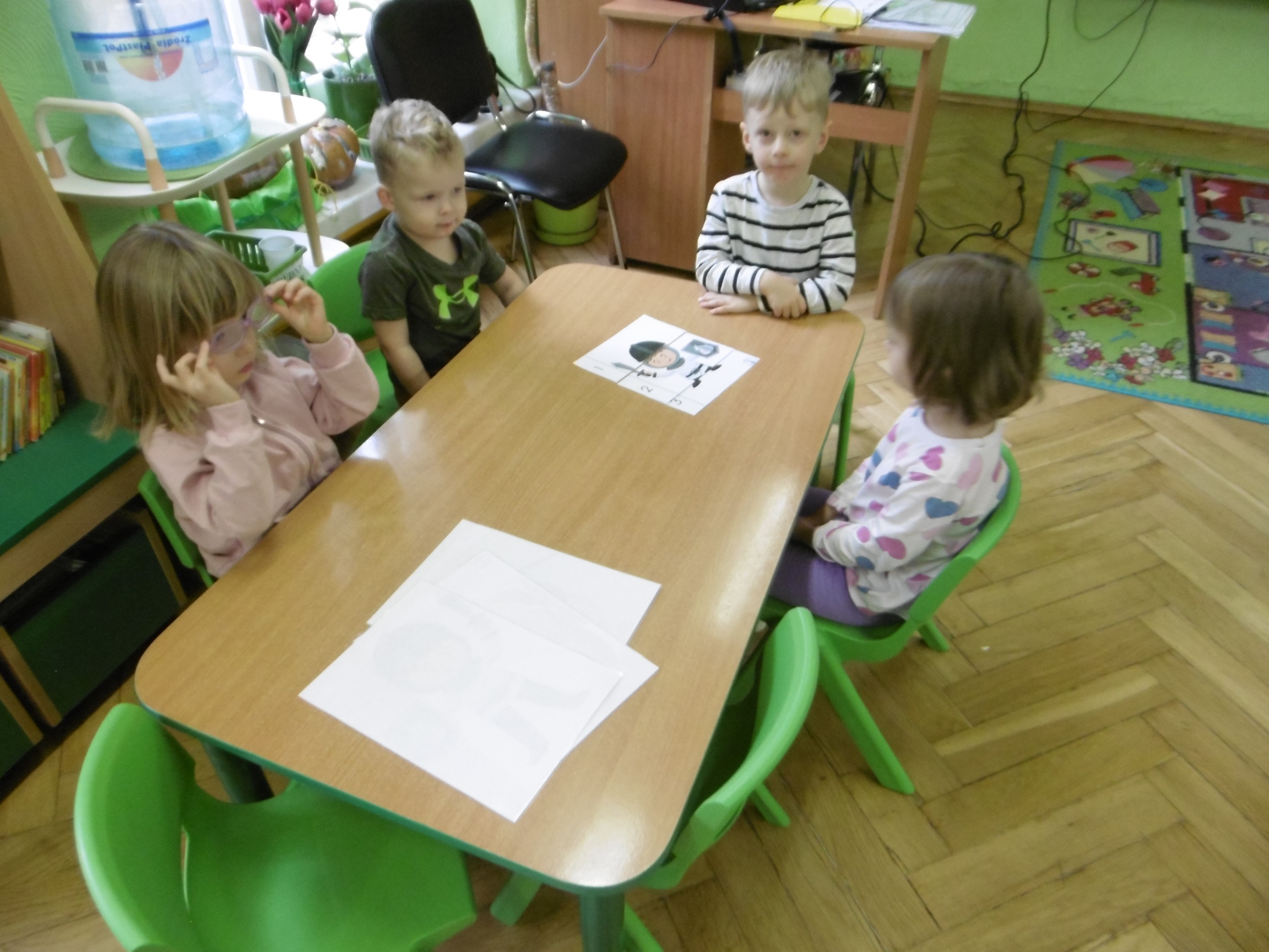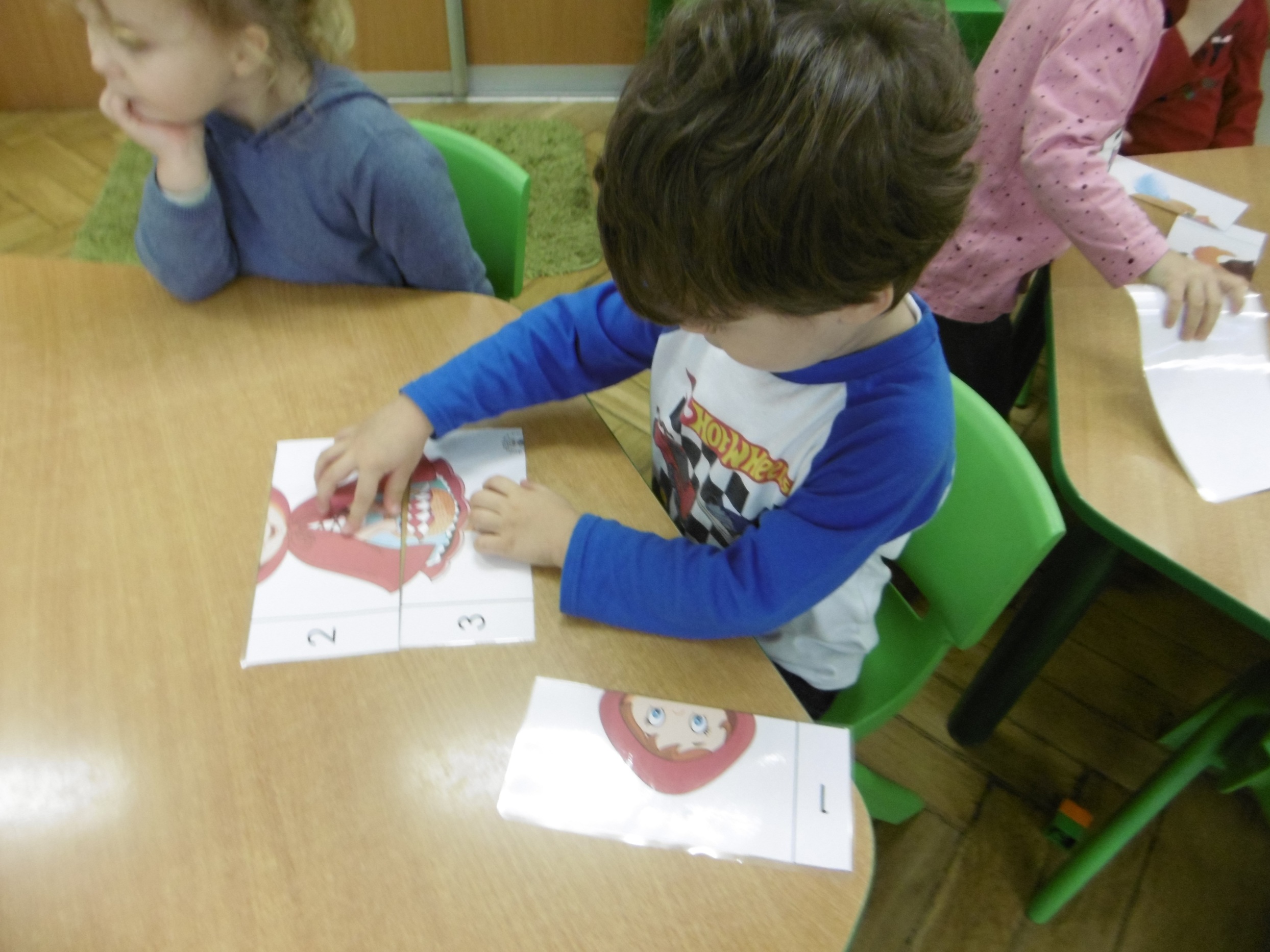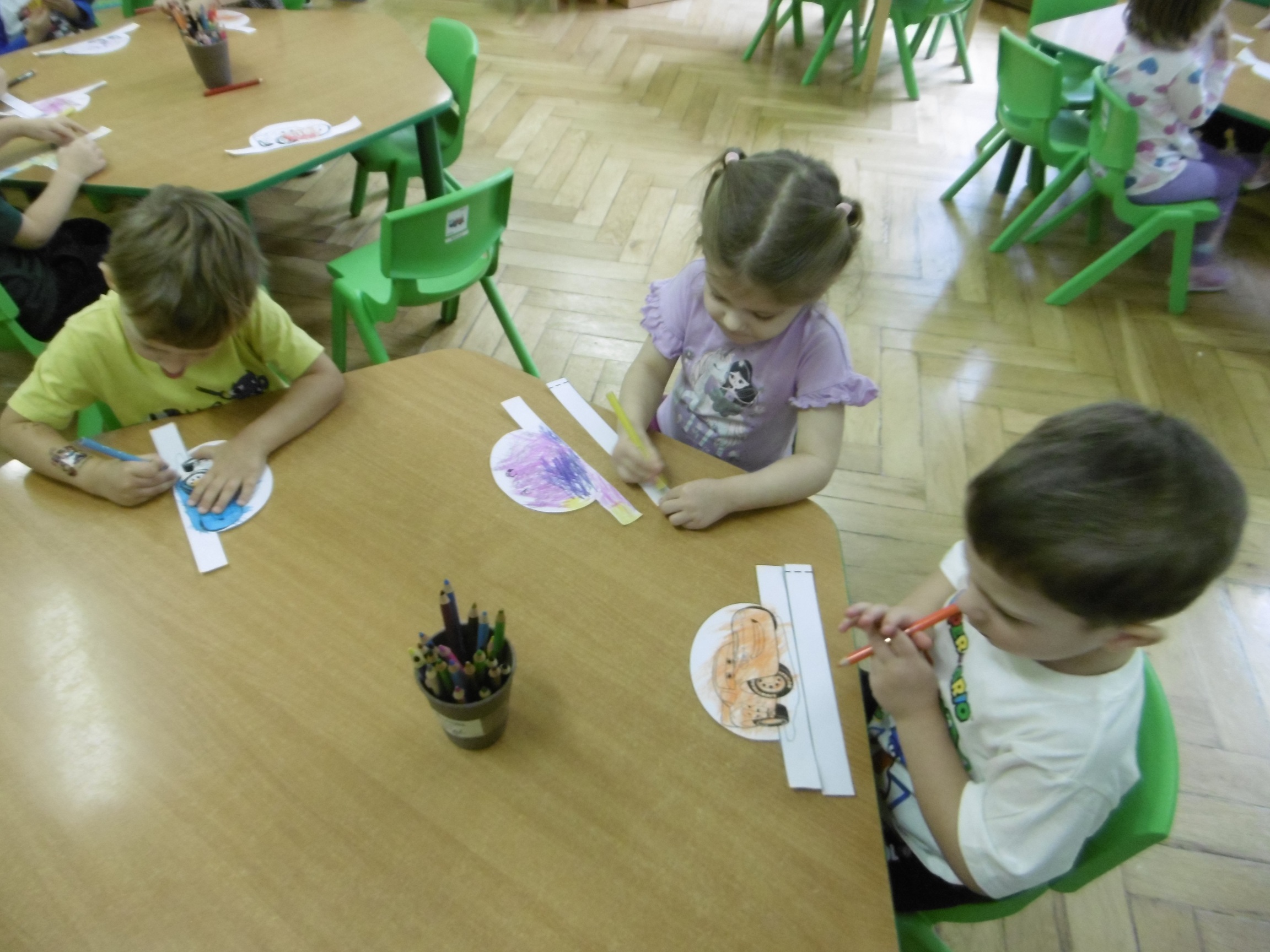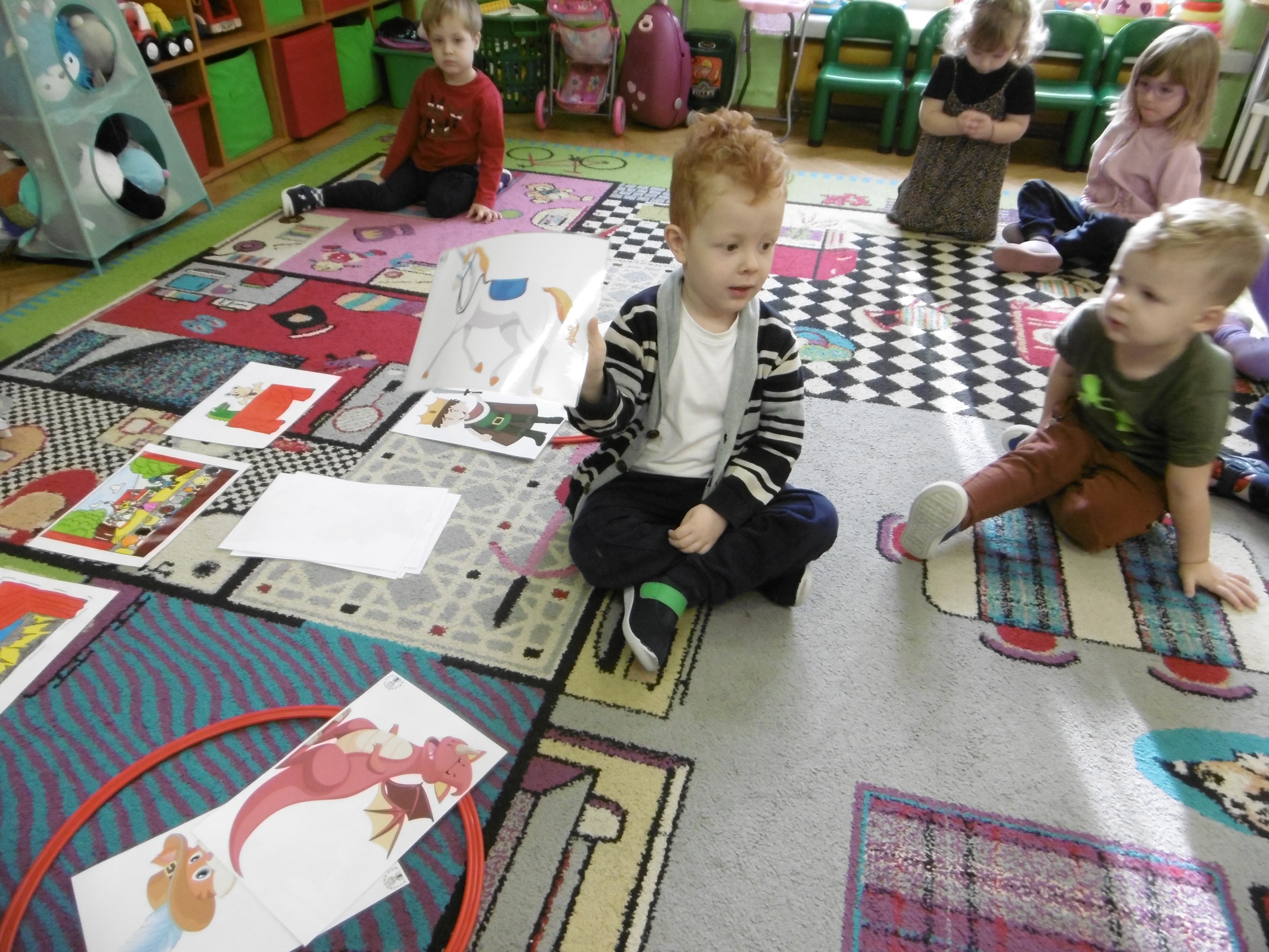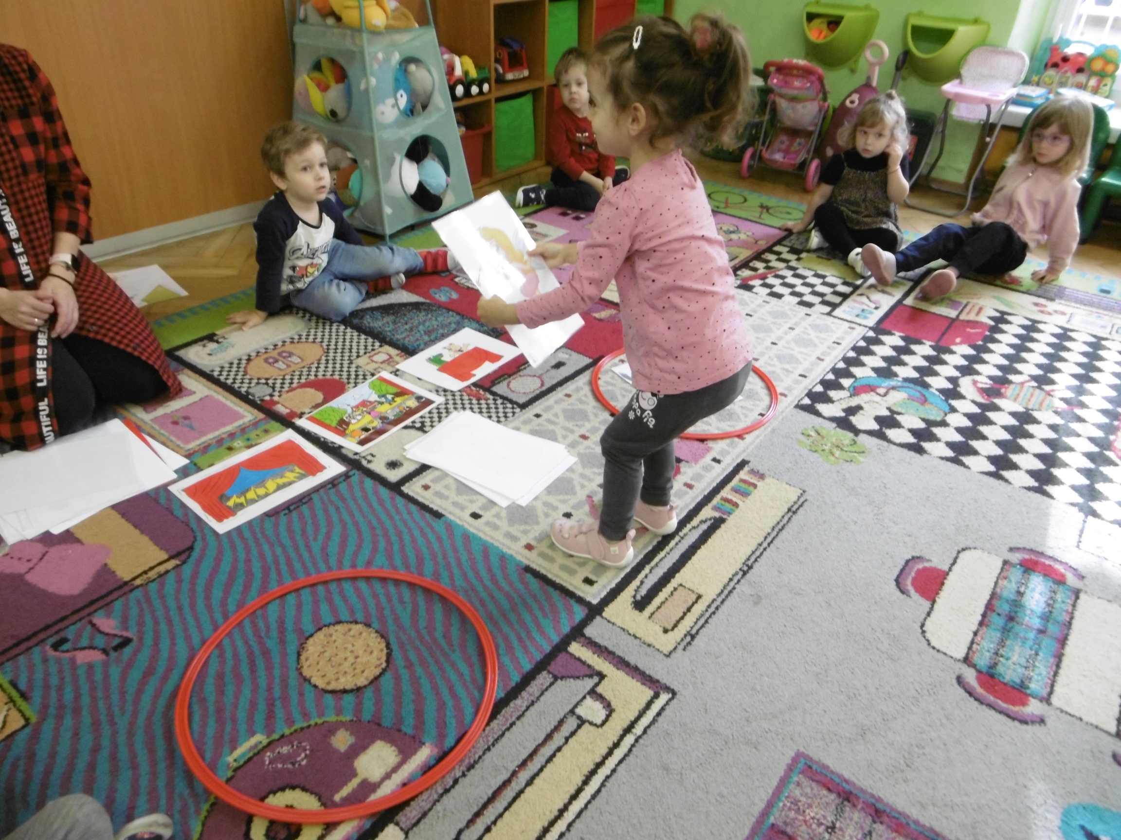 W trakcie obchodów Dnia Postaci z bajek, dzieci z grupy Tuptusie rozmawiały o tym, gdzie można się spotkać z bajkami dla dzieci (w książkach, w telewizji, w teatrze, czy w kinie). Przedszkolaki wymieniały także bohaterów ulubionych bajek dla dzieci i ich segregowały. Następnie składały z części obrazki przedstawiające bajkowych bohaterów oraz wyszukiwały ,,taką samą’’ postać przedstawioną na dużym obrazku. Tuptusie wykonały także opaski na głowę przedstawiające swoje ulubione postaci z bajek dla dzieci. Uczestniczyły też w zabawie przy niezwykle tanecznej muzyce. Przedszkolaki wysłuchały także bajki o ,,Czerwonym Kapturku’’, a następnie wykonały pracę, podczas której dopasowywały brakujące elementy do dużego obrazka.
