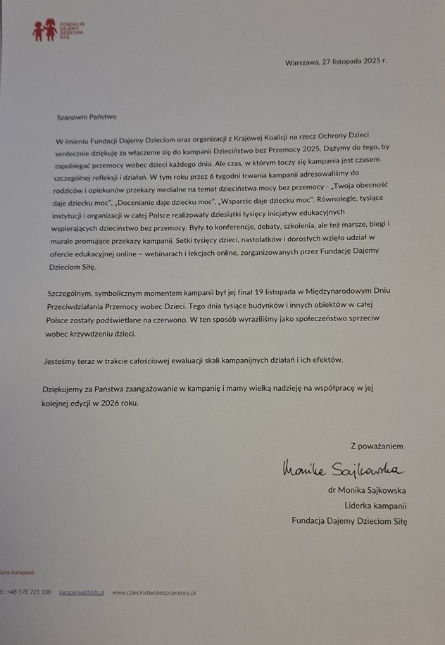 Był to Międzynarodowy Dzień Przeciwdziałania Przemocy wobec Dzieci.
