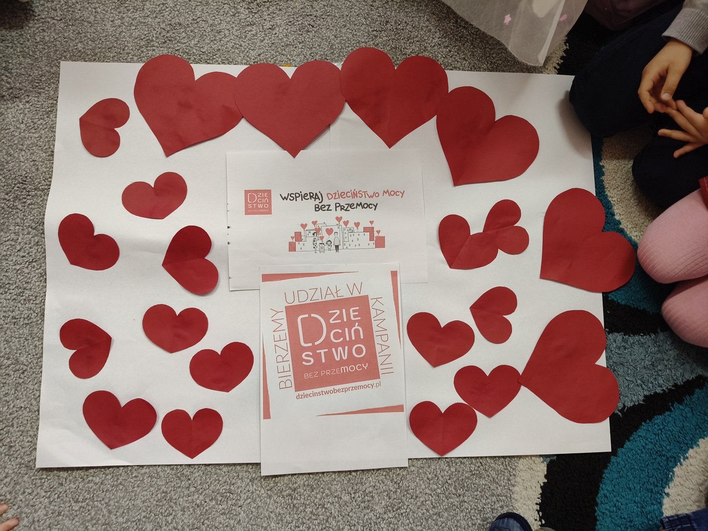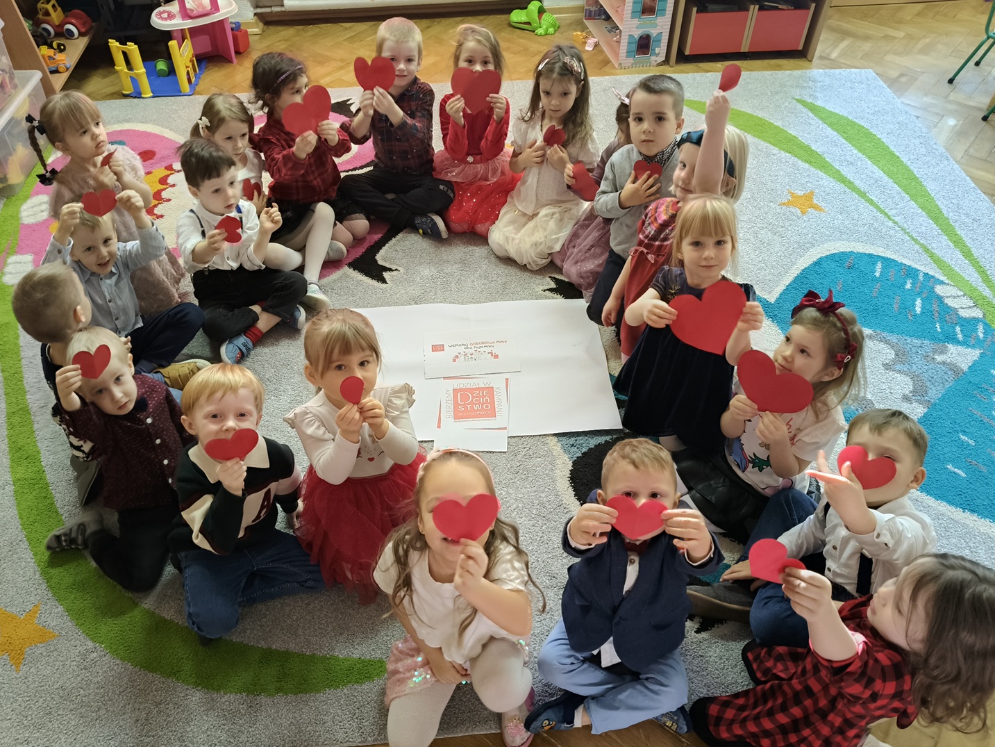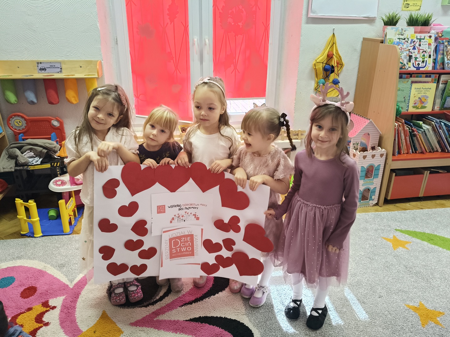 Na ten szczególny dzień udekorowaliśmy wejście do przedszkola czerwonymi girlandami, serduszkami i logo kampanii. O godz. 17.00 podświetliliśmy na czerwono drzwi wejściowe do przedszkola włączając się do udziału w finale kampanii. Był to wyjątkowy moment jedności, w którym wspólnie stanęliśmy po stronie najmłodszych.