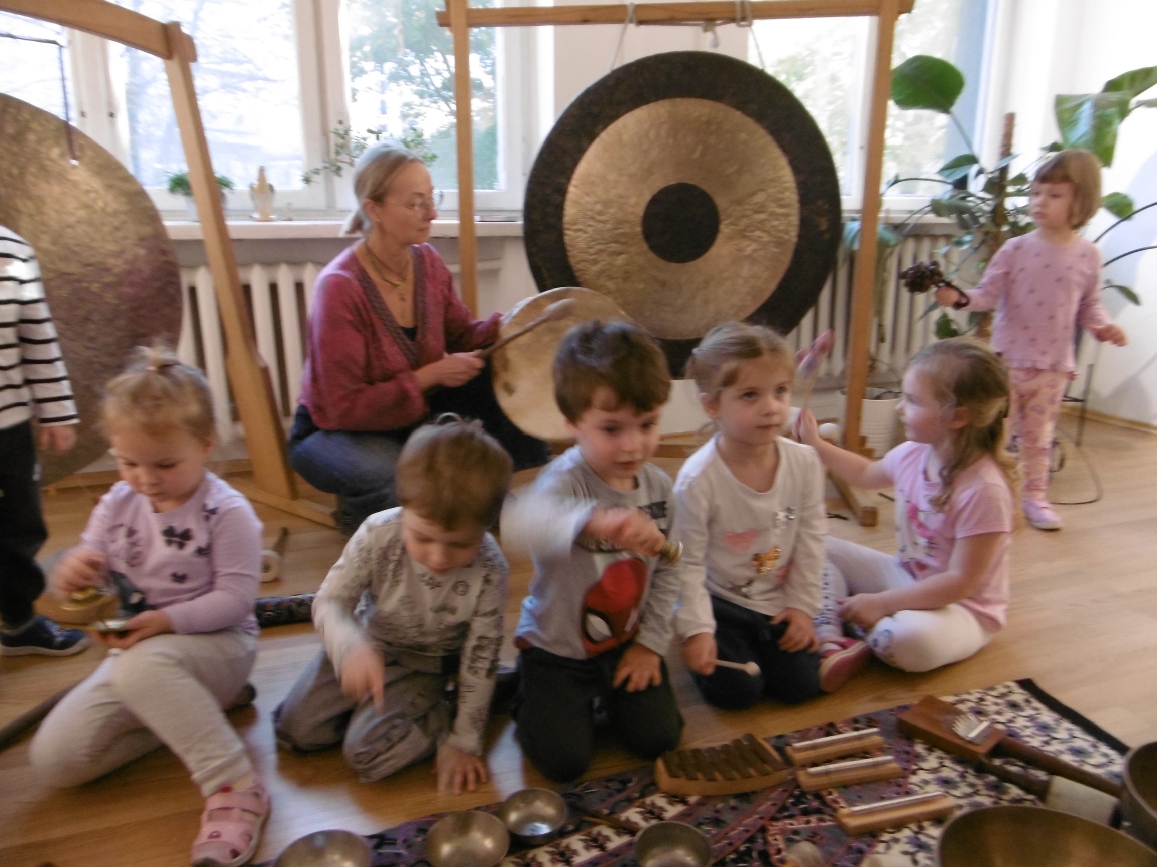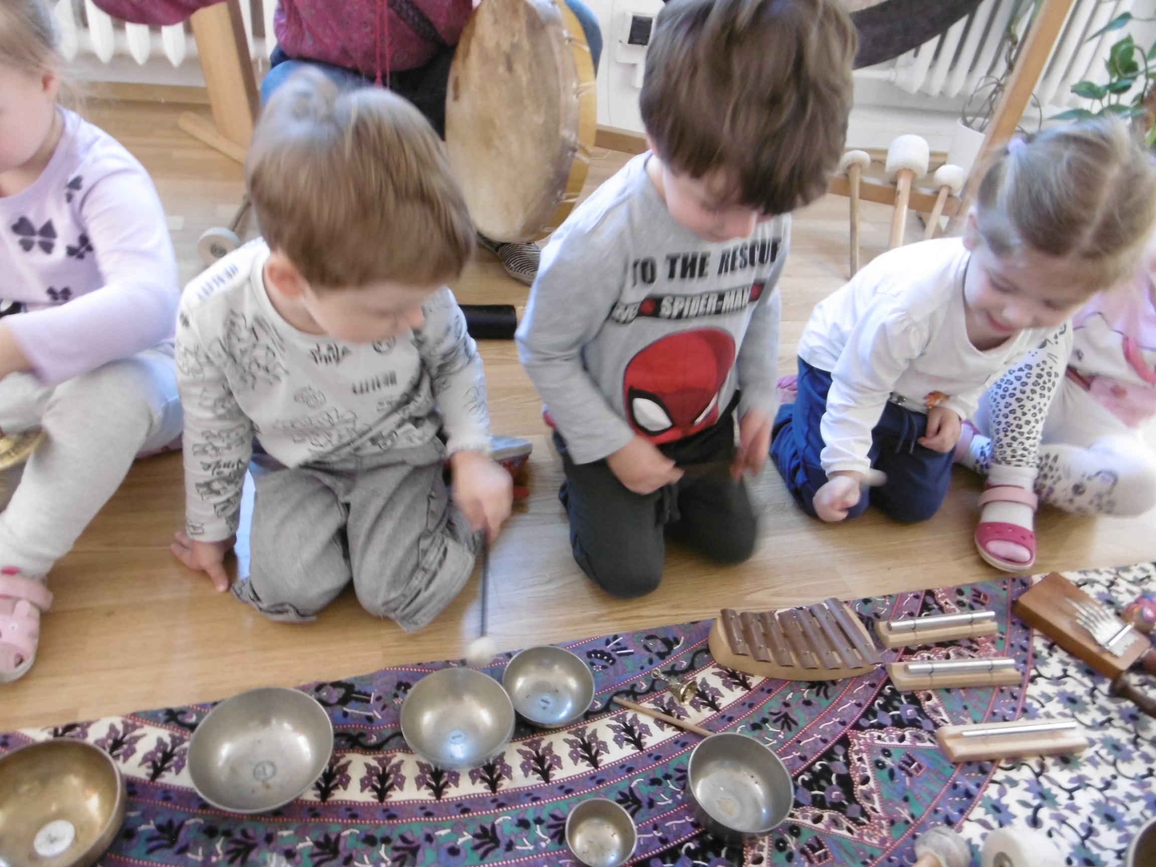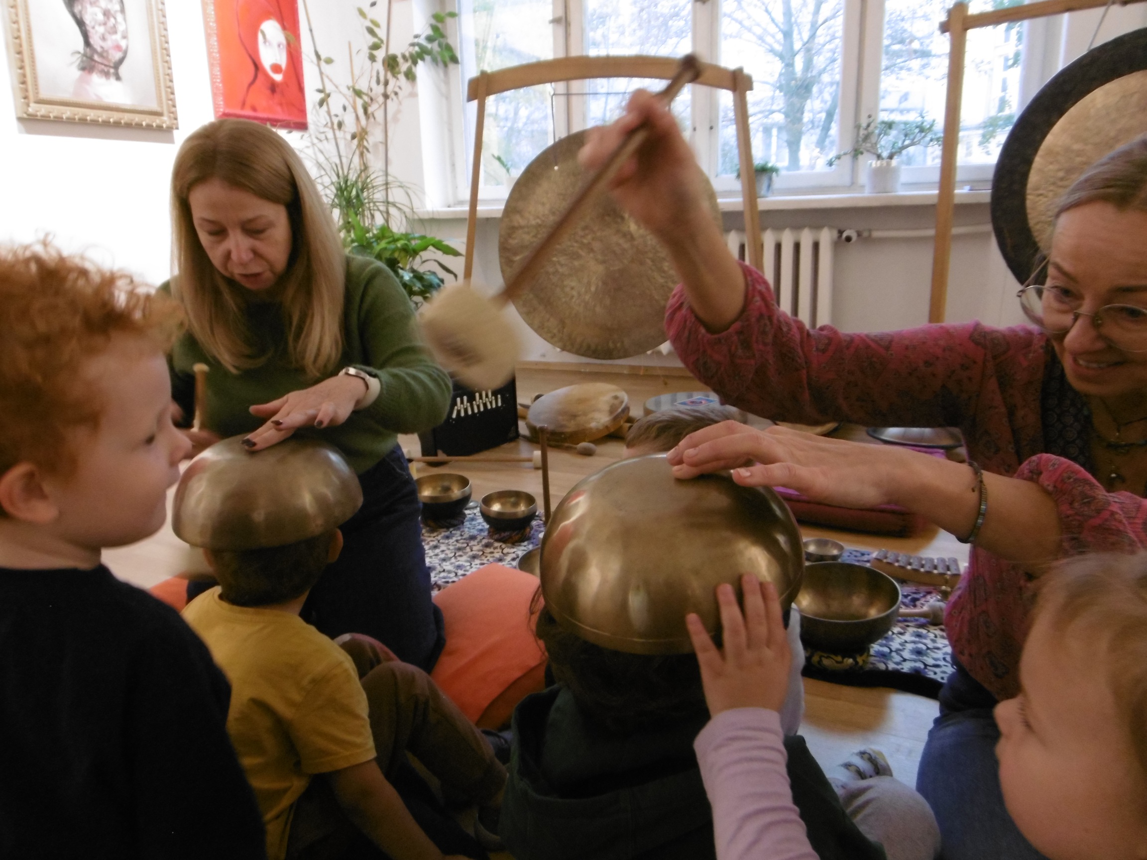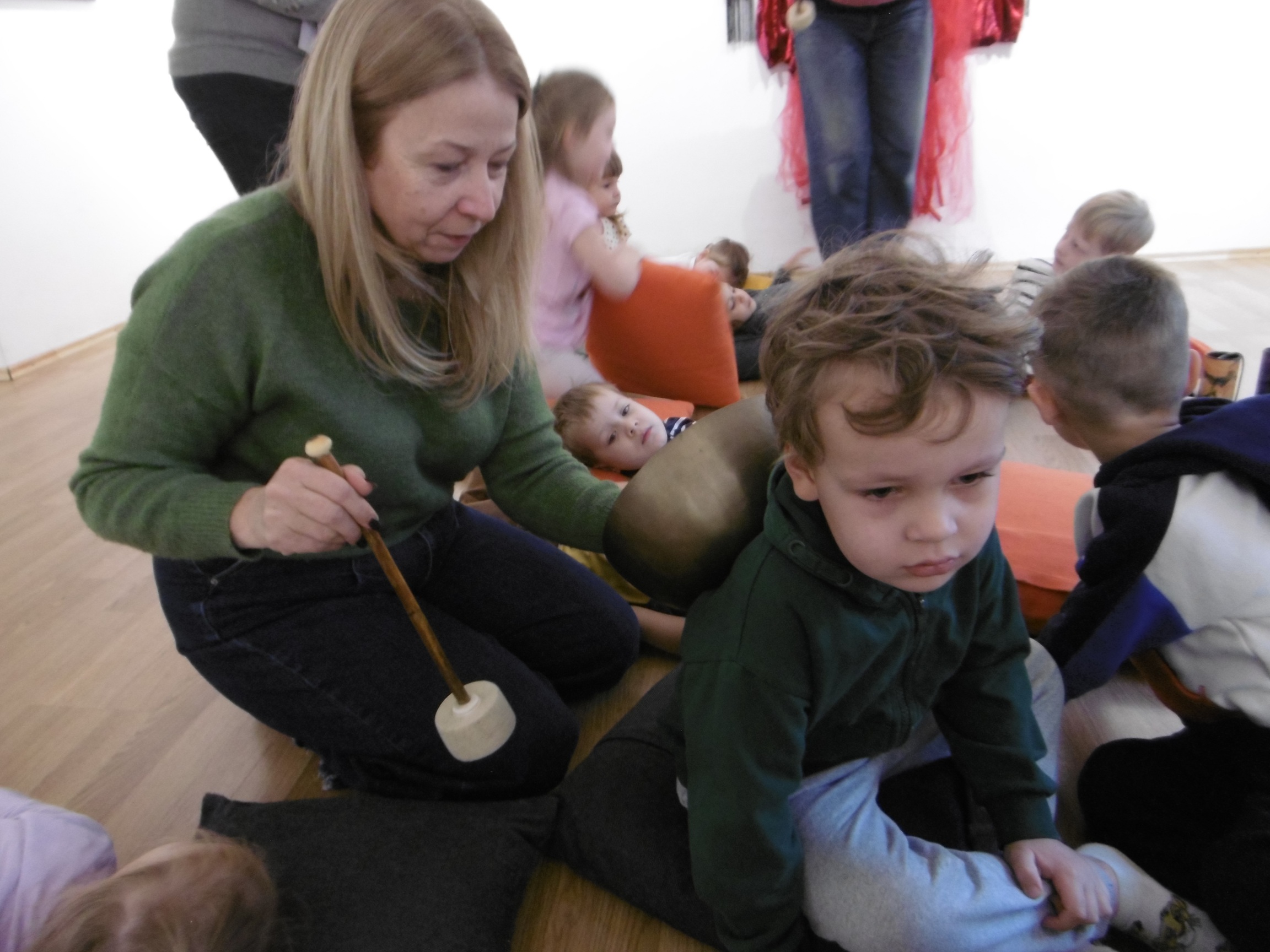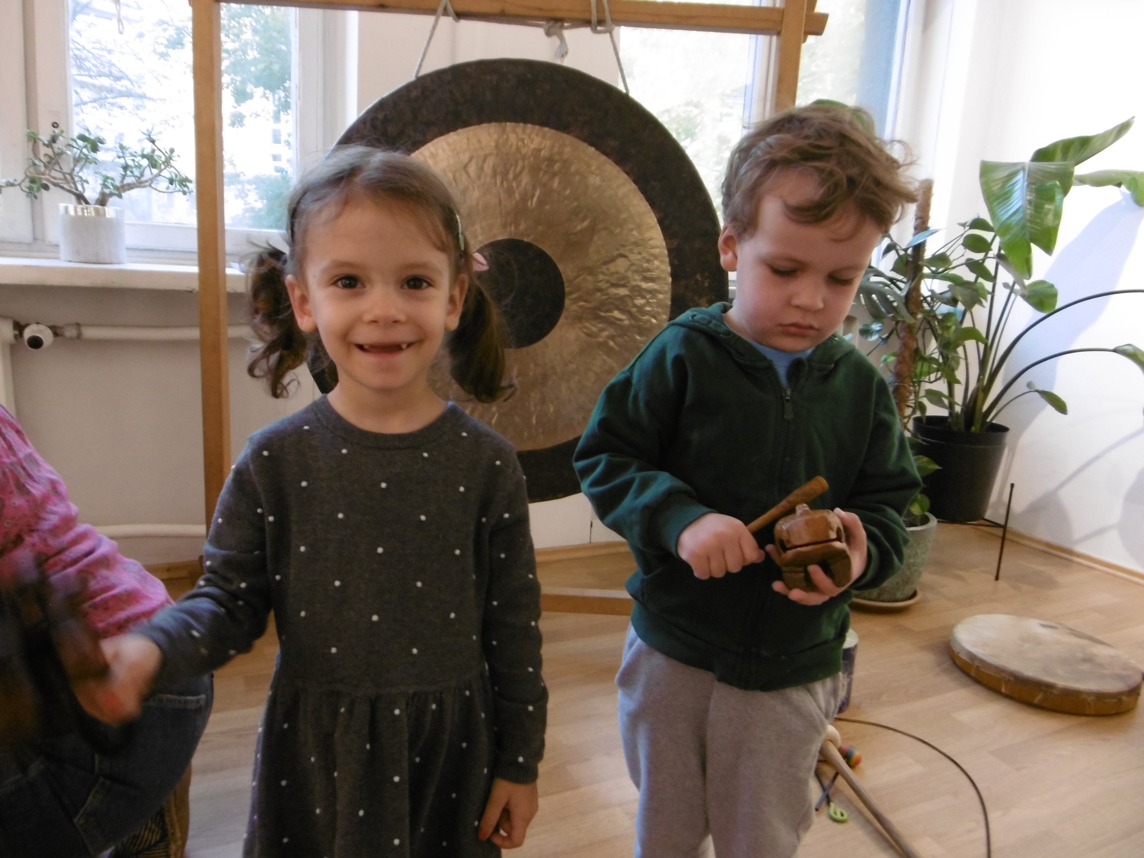 W ostatnich dniach grupa Tuptusiów wybrała się do pobliskiego Stowarzyszenia Kamienica 56. W tym ciekawym miejscu zostało dla naszych przedszkolaków zorganizowane nietypowe spotkanie muzyczne, podczas którego wykorzystano misy dźwiękowe, gongi i dzwonki.