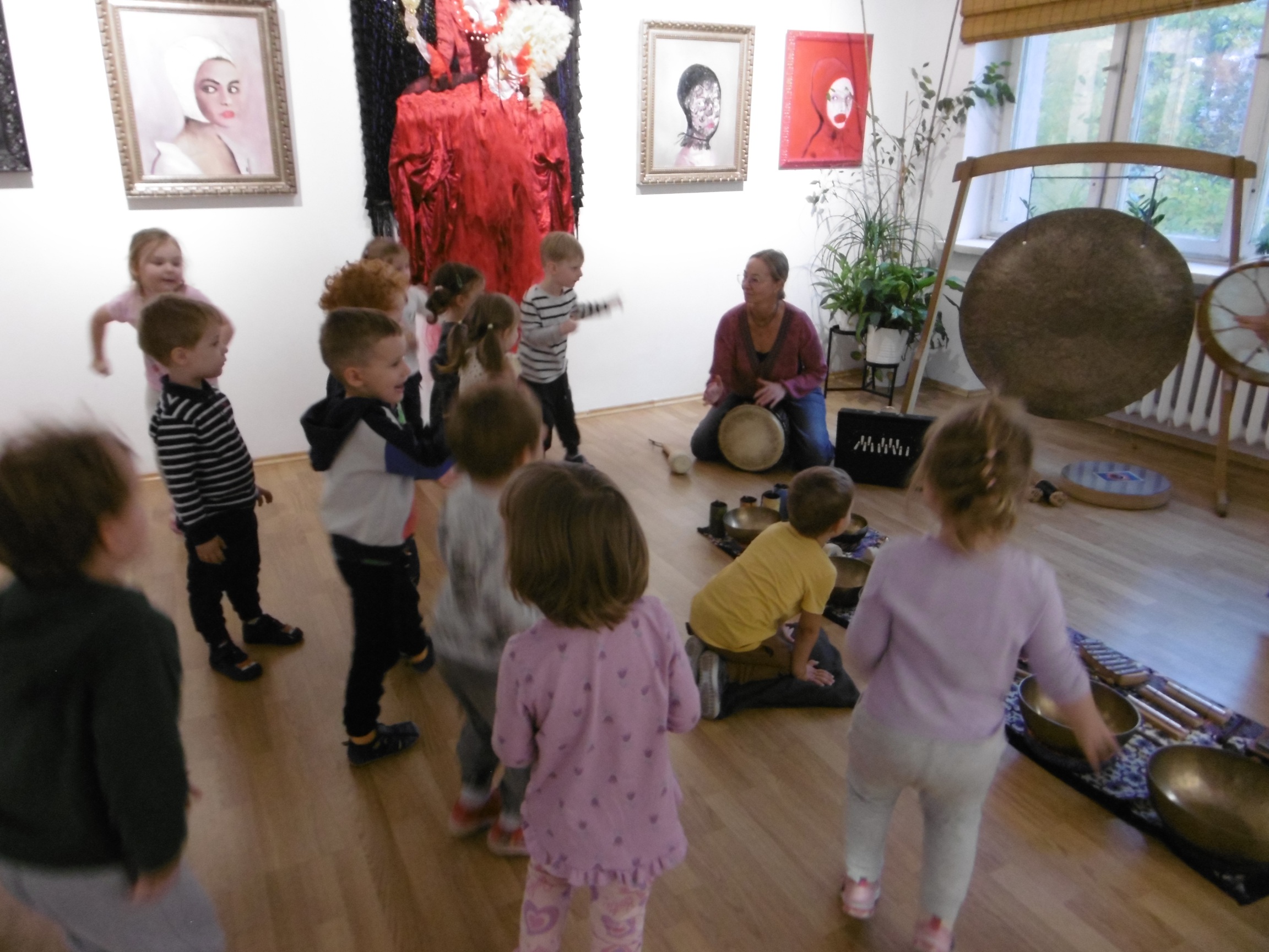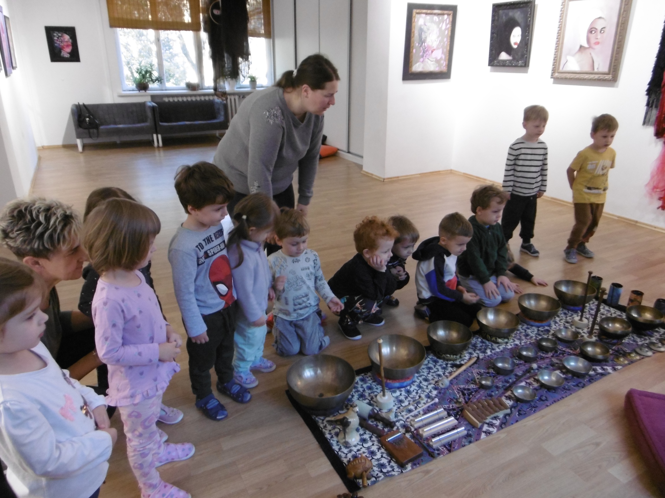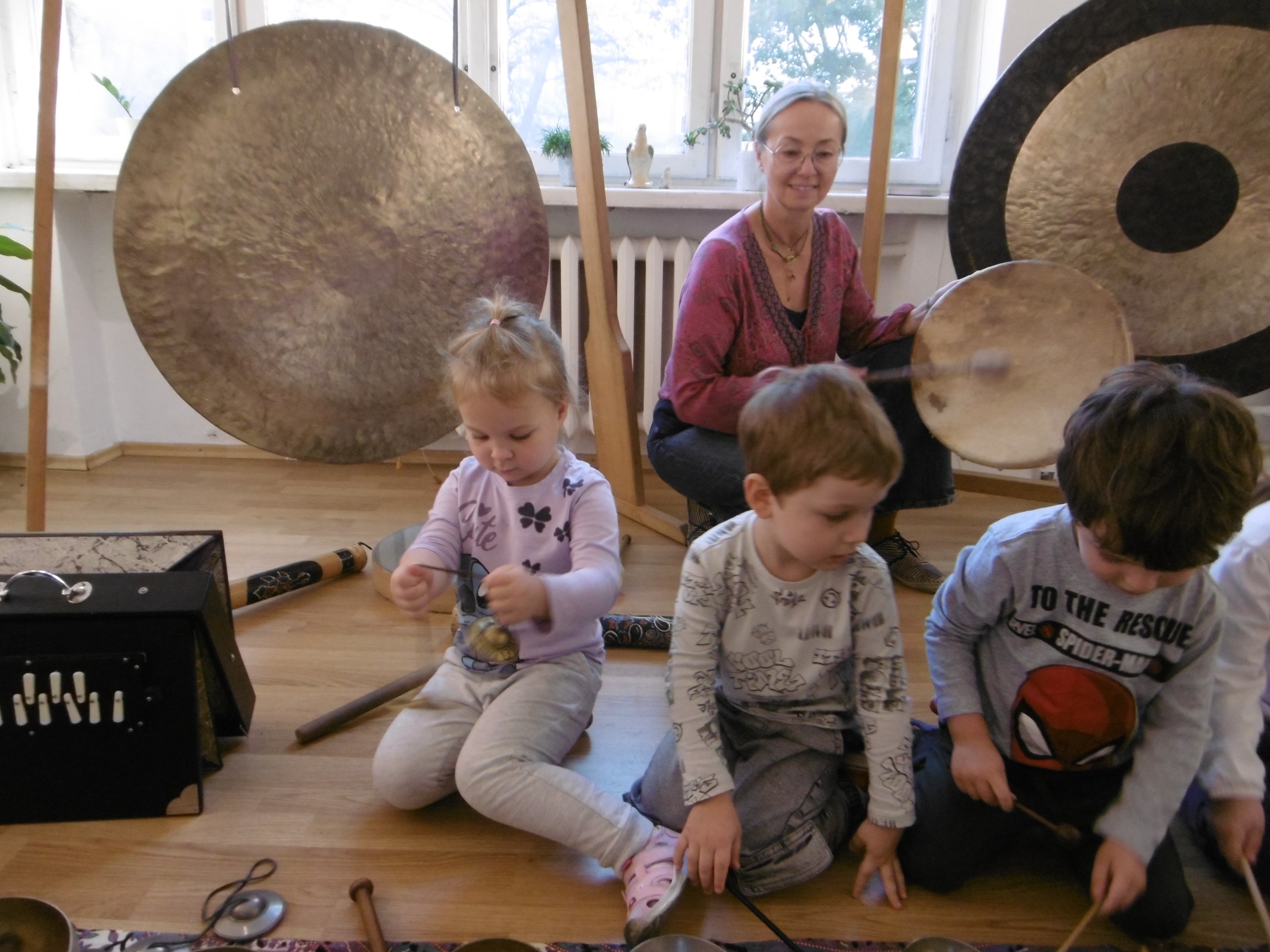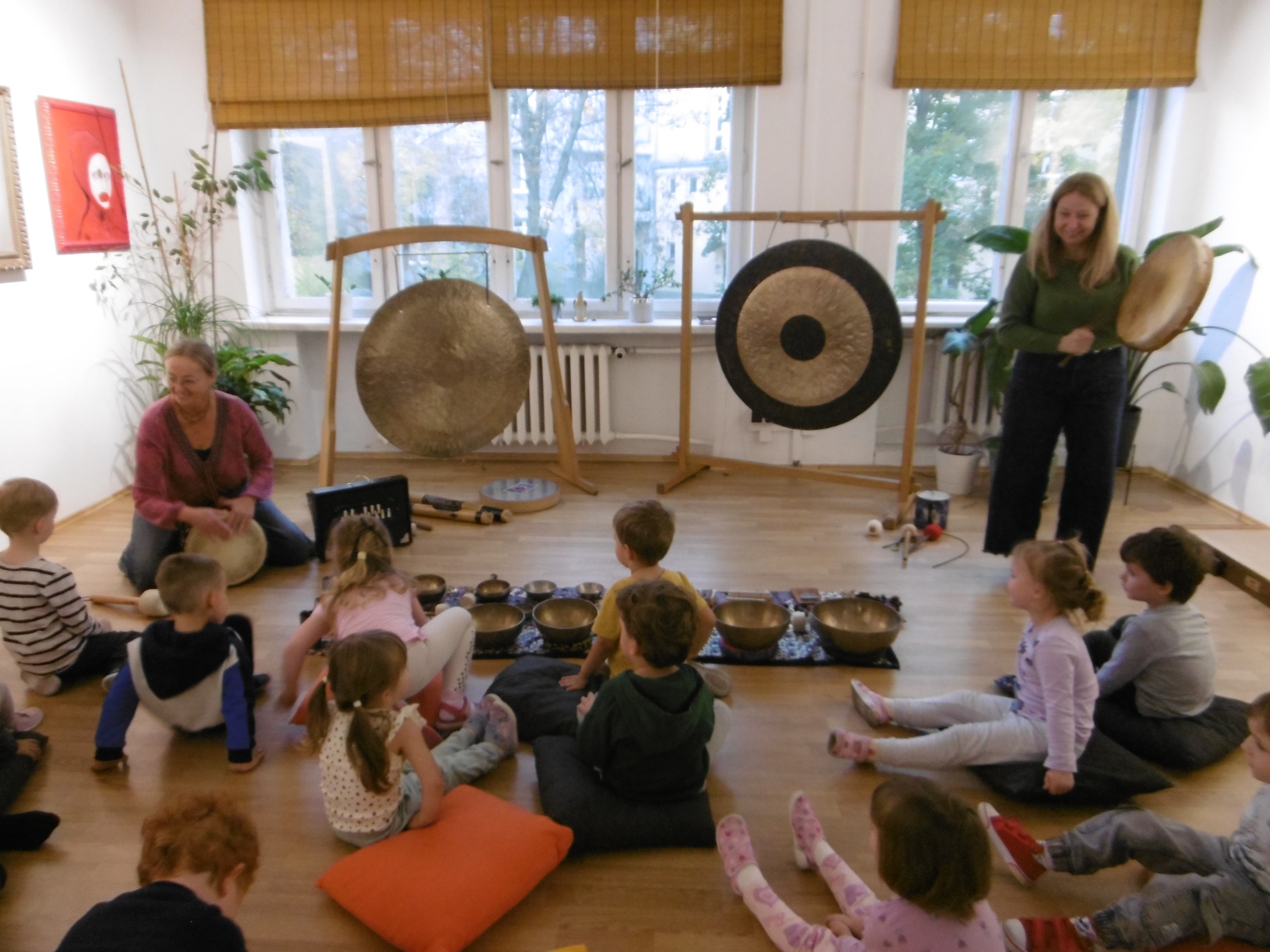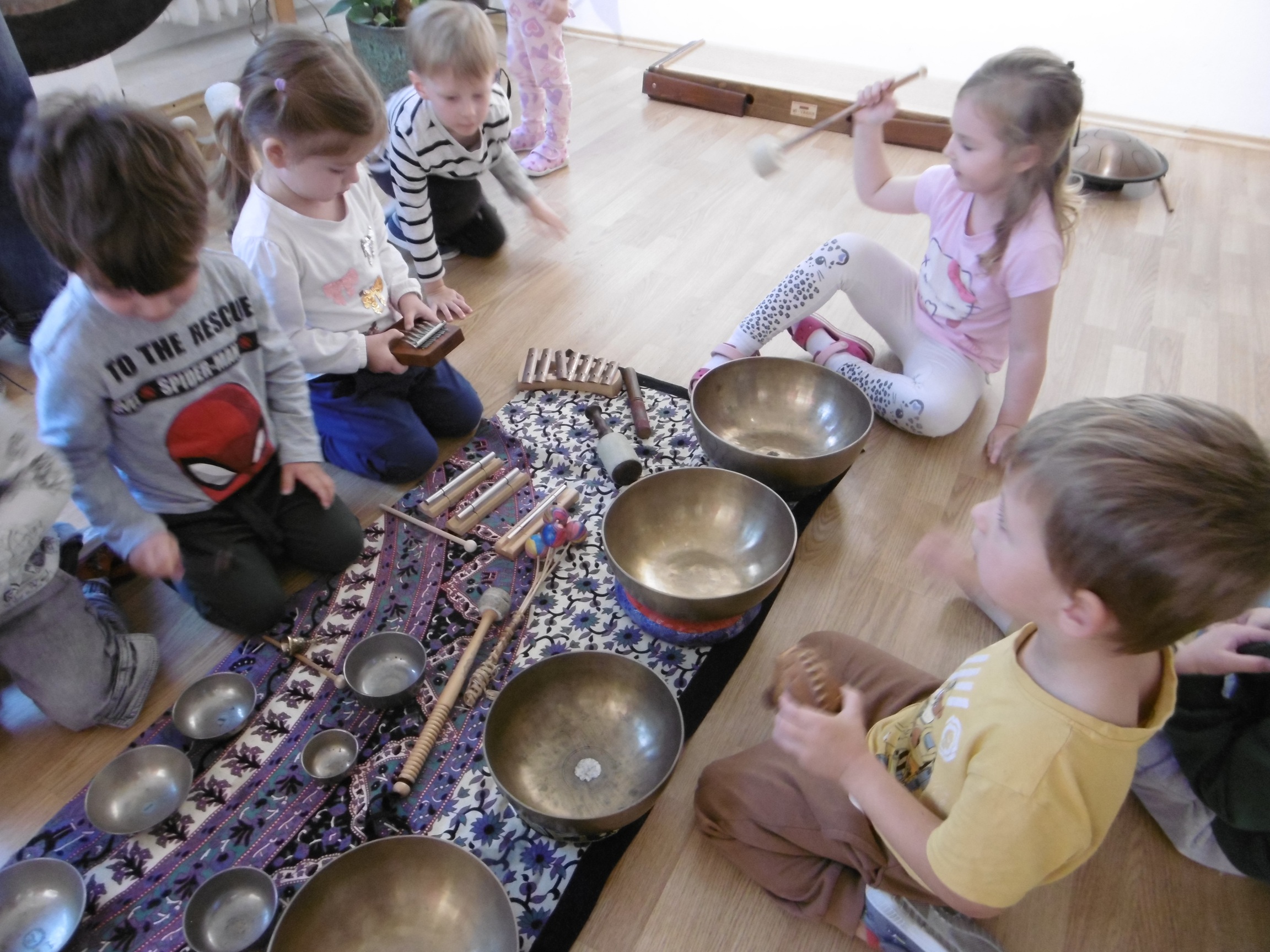 W ostatnich dniach grupa Tuptusiów wybrała się do pobliskiego Stowarzyszenia Kamienica 56. W tym ciekawym miejscu zostało dla naszych przedszkolaków zorganizowane nietypowe spotkanie muzyczne, podczas którego wykorzystano misy dźwiękowe, gongi i dzwonki.