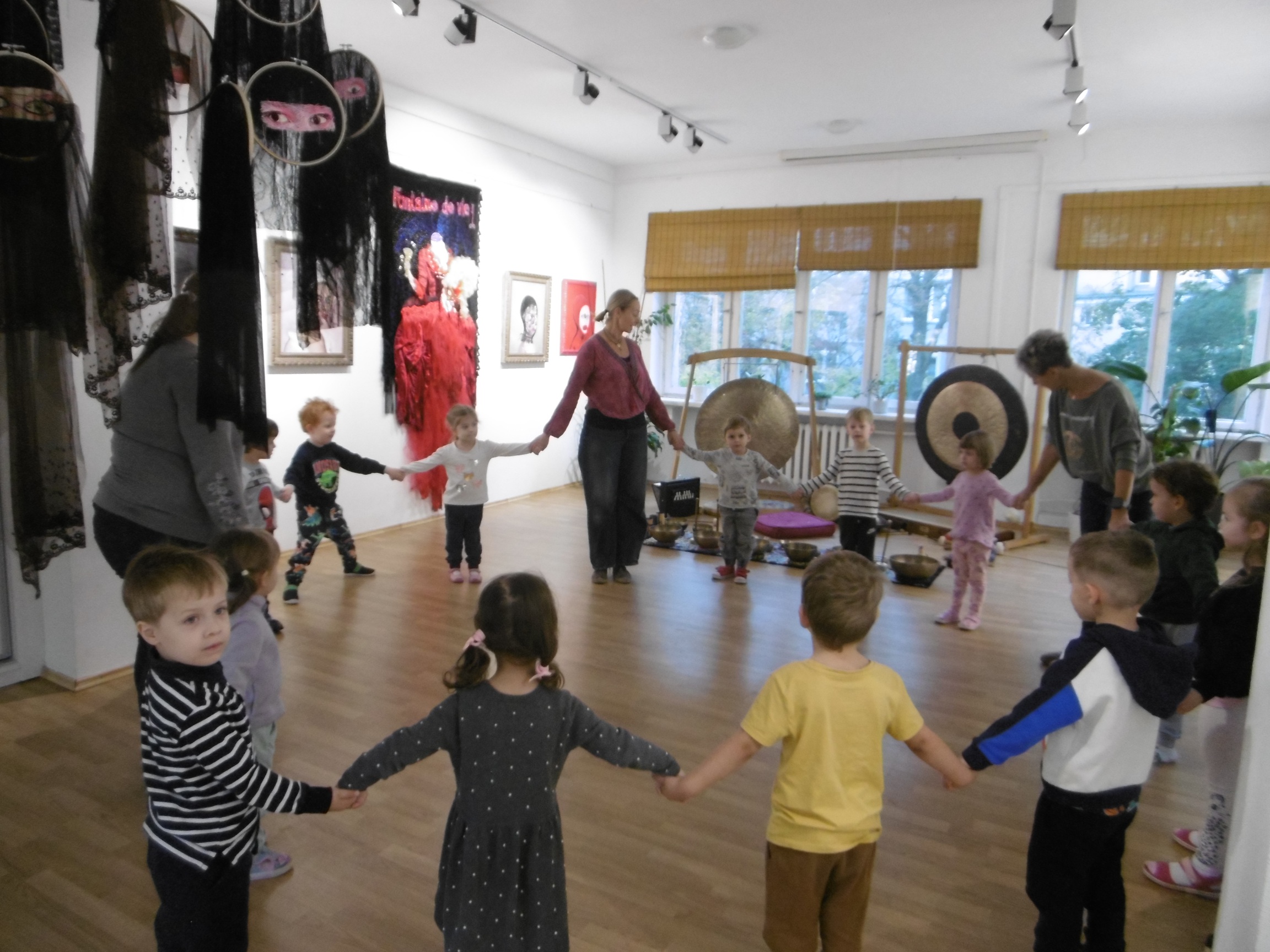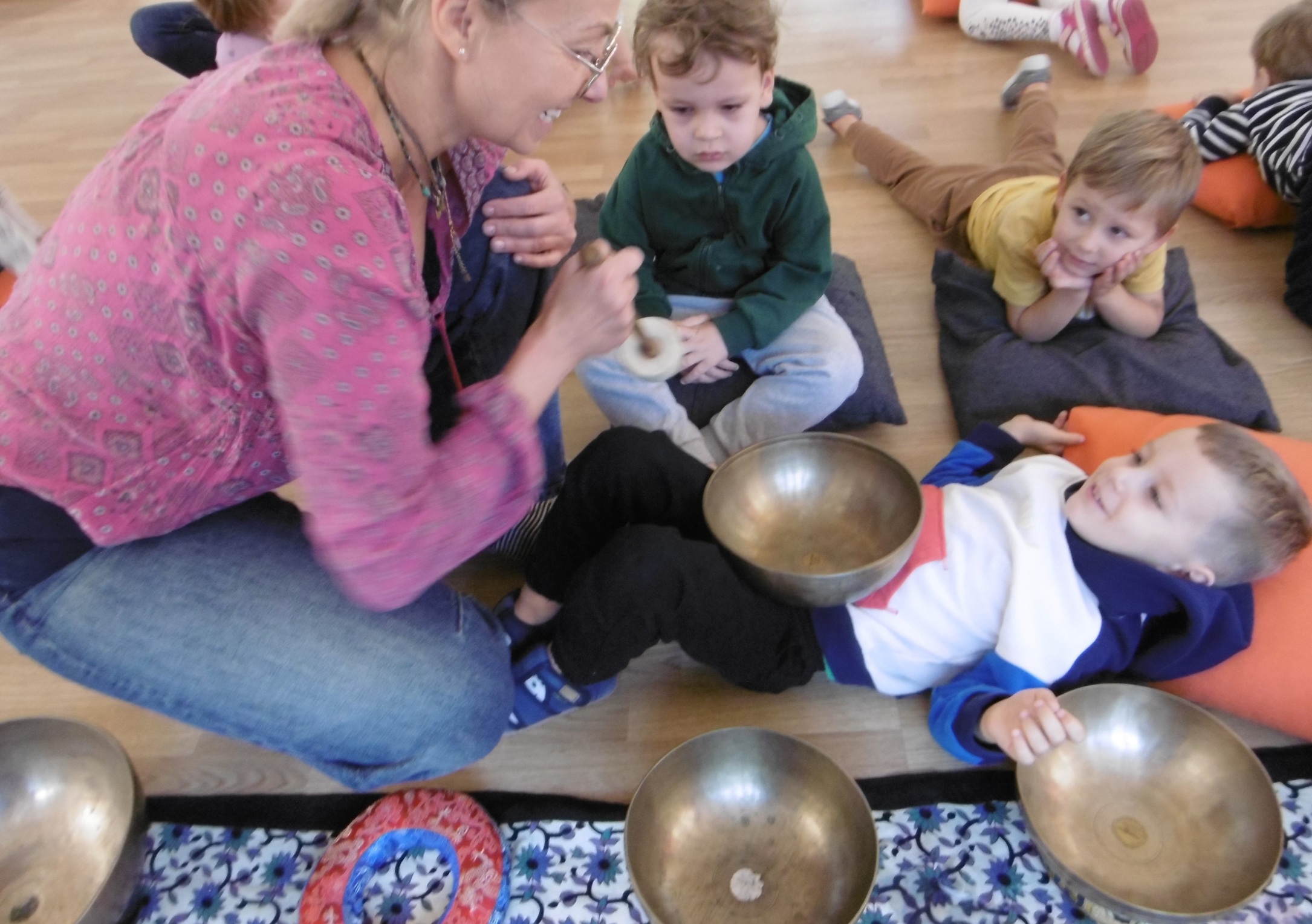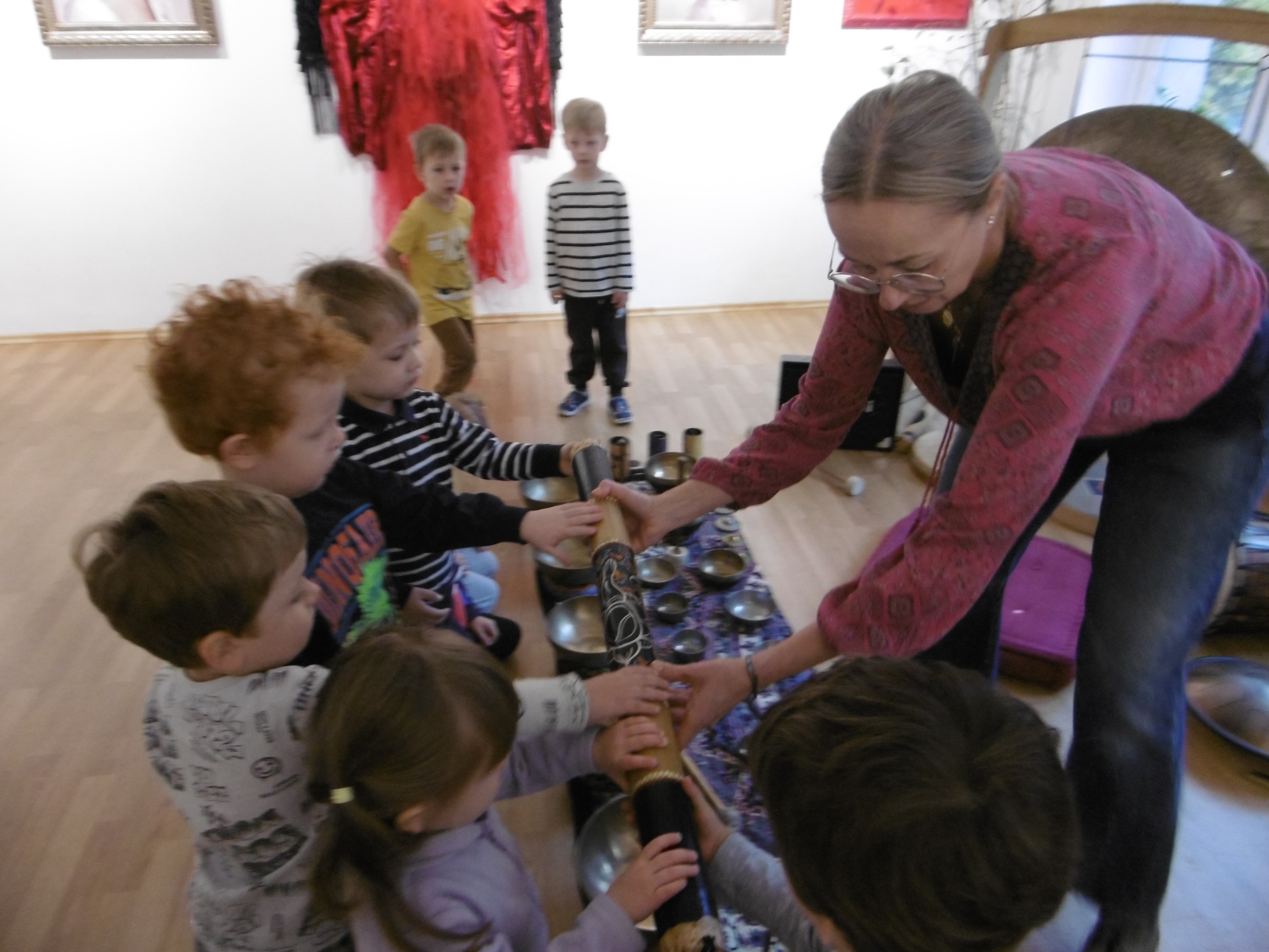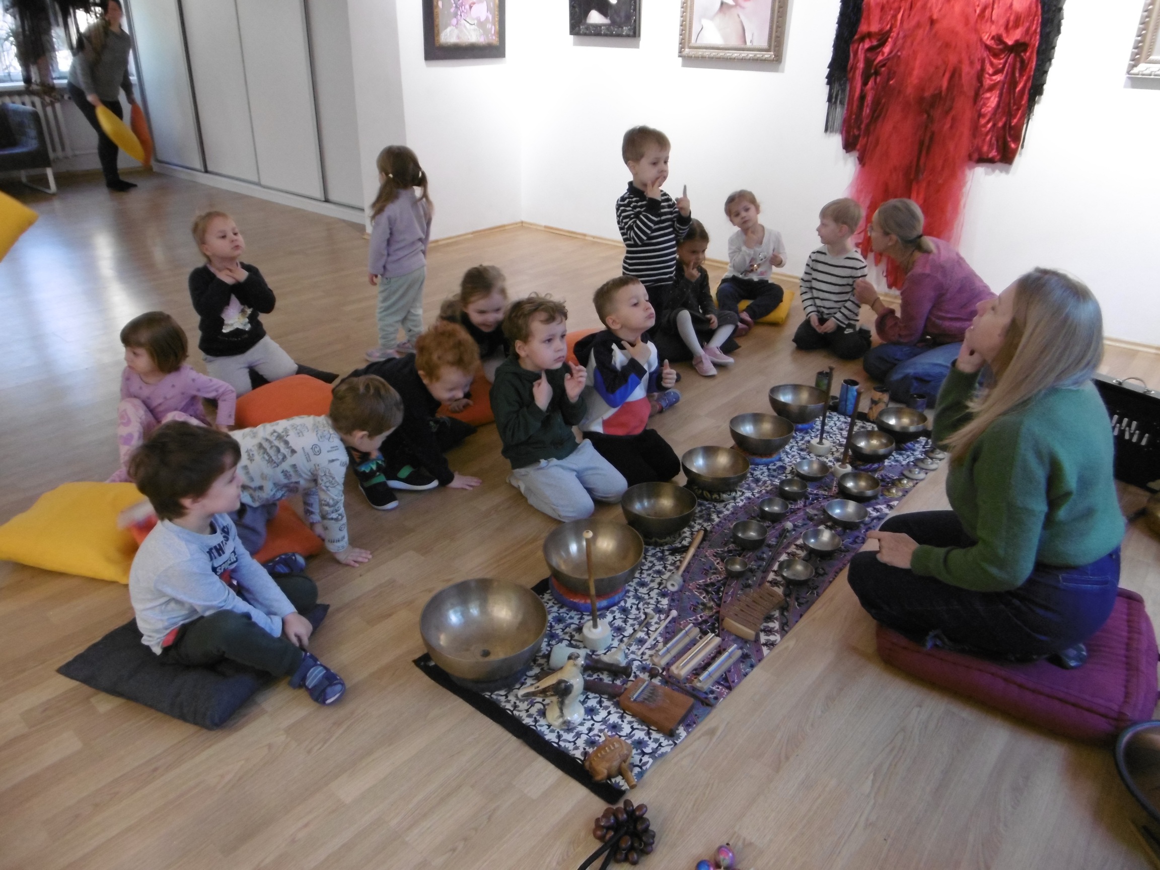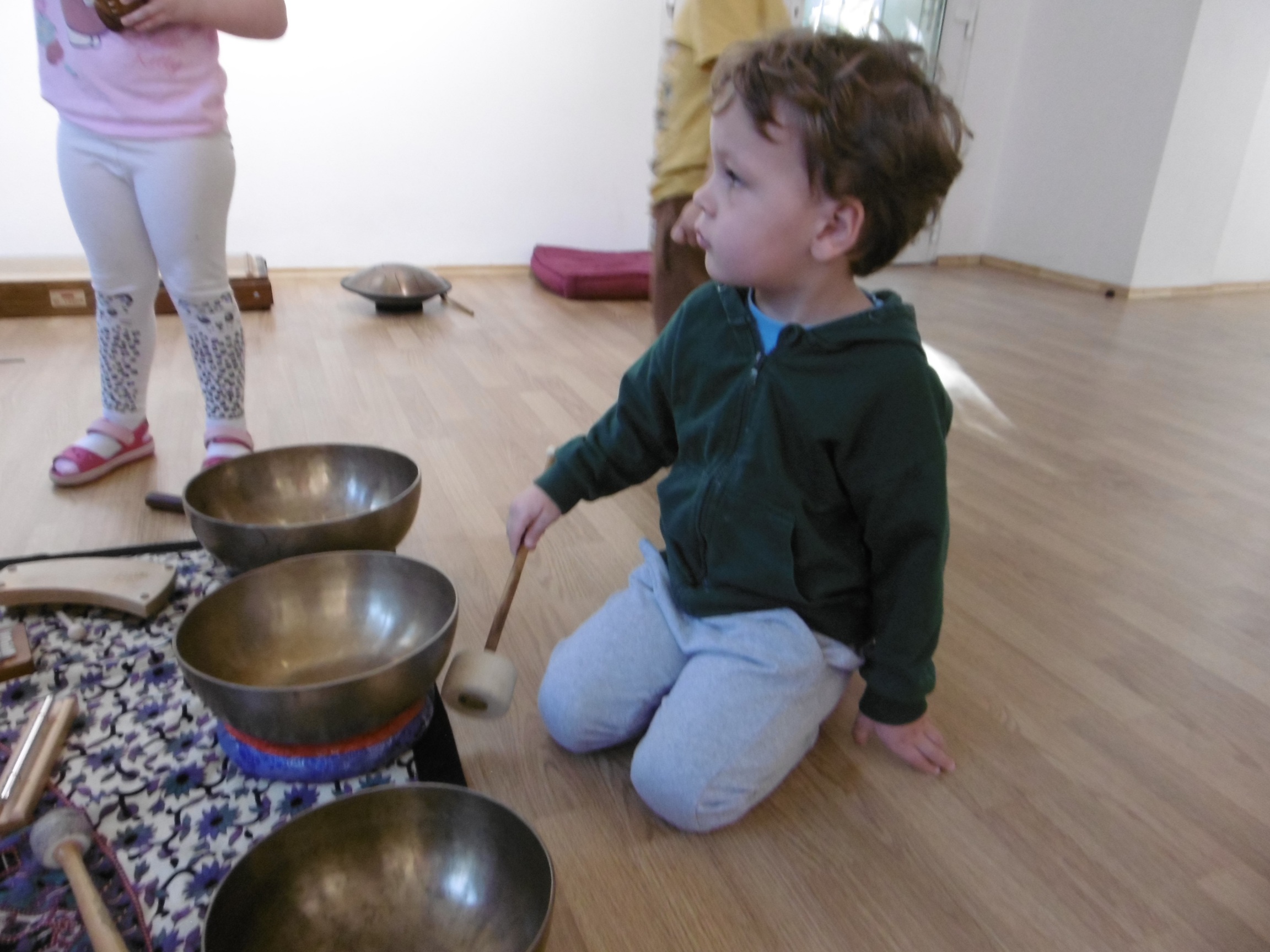 W ostatnich dniach grupa Tuptusiów wybrała się do pobliskiego Stowarzyszenia Kamienica 56. W tym ciekawym miejscu zostało dla naszych przedszkolaków zorganizowane nietypowe spotkanie muzyczne, podczas którego wykorzystano misy dźwiękowe, gongi i dzwonki.