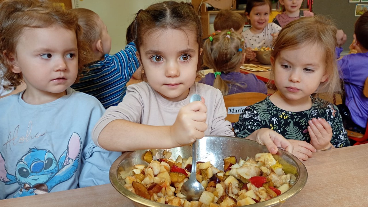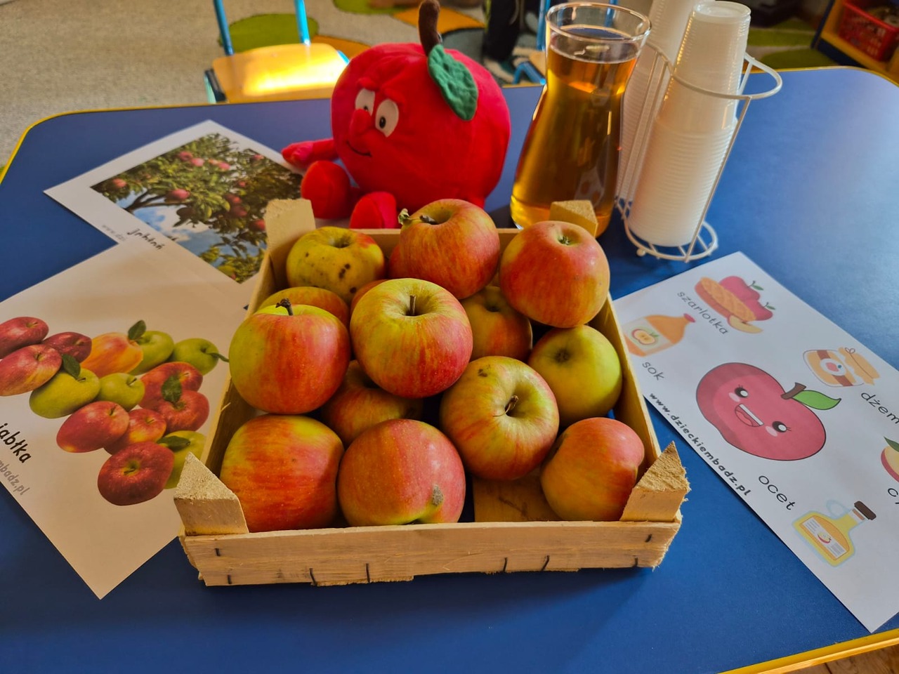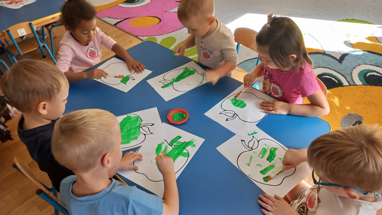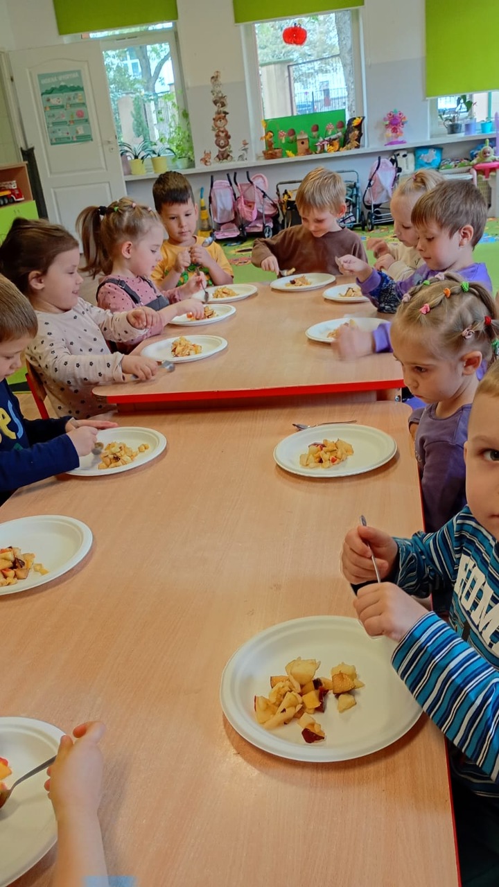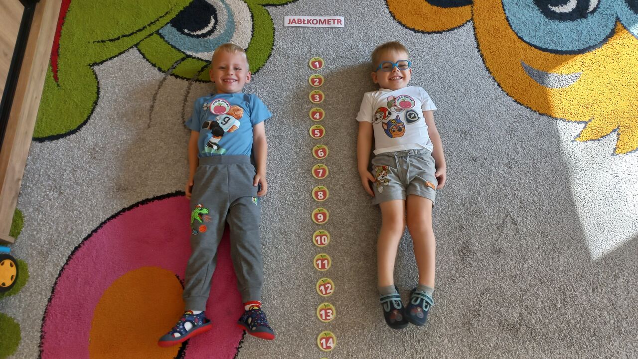 Nasze kochane maluszki chętnie i z zaciekawieniem biorą udział we wszystkich aktywnościach proponowanych w Przedszkolu. Tym razem wzięły udział w obchodach Dnia Jabłka, które odbyły się w minionym tygodniu. Tuptusie w małych grupach, wspólnymi siłami, ułożyły jabłuszkowe rytmy oraz przygotowały jabłuszkowy kompot. Po obejrzeniu filmu edukacyjnego związanego z jabłkami i ich przetwórstwem, zajęły się porządkowaniem tych owoców- od najmniejszego do największego oraz mierzeniem wzrostu za pomocą „jabłkometru”. Maluszkom bardzo podobały się zabawy ruchowe, poznały piosenkę „Małe, czerwone jabłuszko”, do której pięknie tańczyły! Po serii zabaw, zmęczone i spragnione, udały się na degustację jabłuszkowego soczku. Na koniec zajęć Tuptusie wykonały prace plastyczne- pokolorowały jabłuszkowe rytmy oraz dokładnie pomalowały farbami jabłuszkowy kontur. „Dzień jabłka” wzbudził wśród naszych przedszkolaków wiele zdrowych, pozytywnych emocji!!!