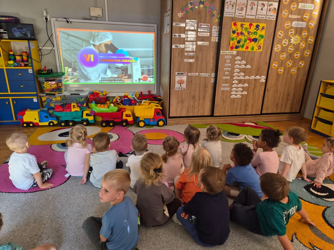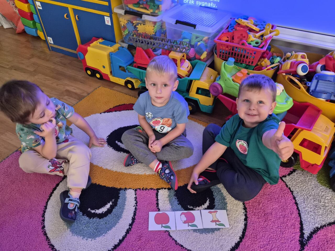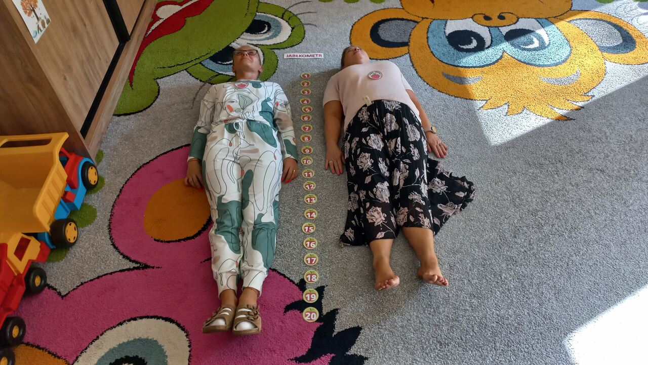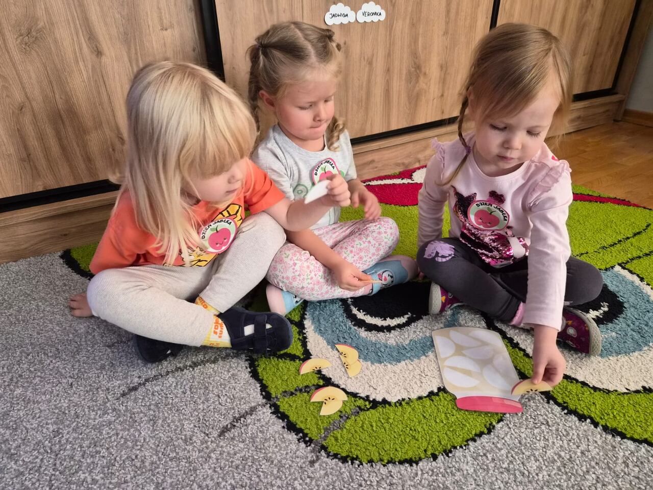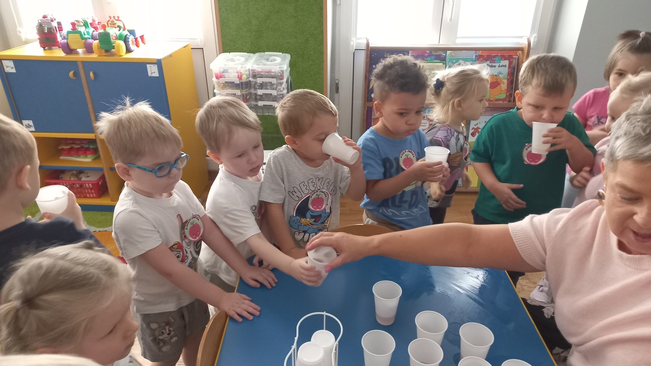 Nasze kochane maluszki chętnie i z zaciekawieniem biorą udział we wszystkich aktywnościach proponowanych w Przedszkolu. Tym razem wzięły udział w obchodach Dnia Jabłka, które odbyły się w minionym tygodniu. Tuptusie w małych grupach, wspólnymi siłami, ułożyły jabłuszkowe rytmy oraz przygotowały jabłuszkowy kompot. Po obejrzeniu filmu edukacyjnego związanego z jabłkami i ich przetwórstwem, zajęły się porządkowaniem tych owoców- od najmniejszego do największego oraz mierzeniem wzrostu za pomocą „jabłkometru”. Maluszkom bardzo podobały się zabawy ruchowe, poznały piosenkę „Małe, czerwone jabłuszko”, do której pięknie tańczyły! Po serii zabaw, zmęczone i spragnione, udały się na degustację jabłuszkowego soczku. Na koniec zajęć Tuptusie wykonały prace plastyczne- pokolorowały jabłuszkowe rytmy oraz dokładnie pomalowały farbami jabłuszkowy kontur. „Dzień jabłka” wzbudził wśród naszych przedszkolaków wiele zdrowych, pozytywnych emocji!!!