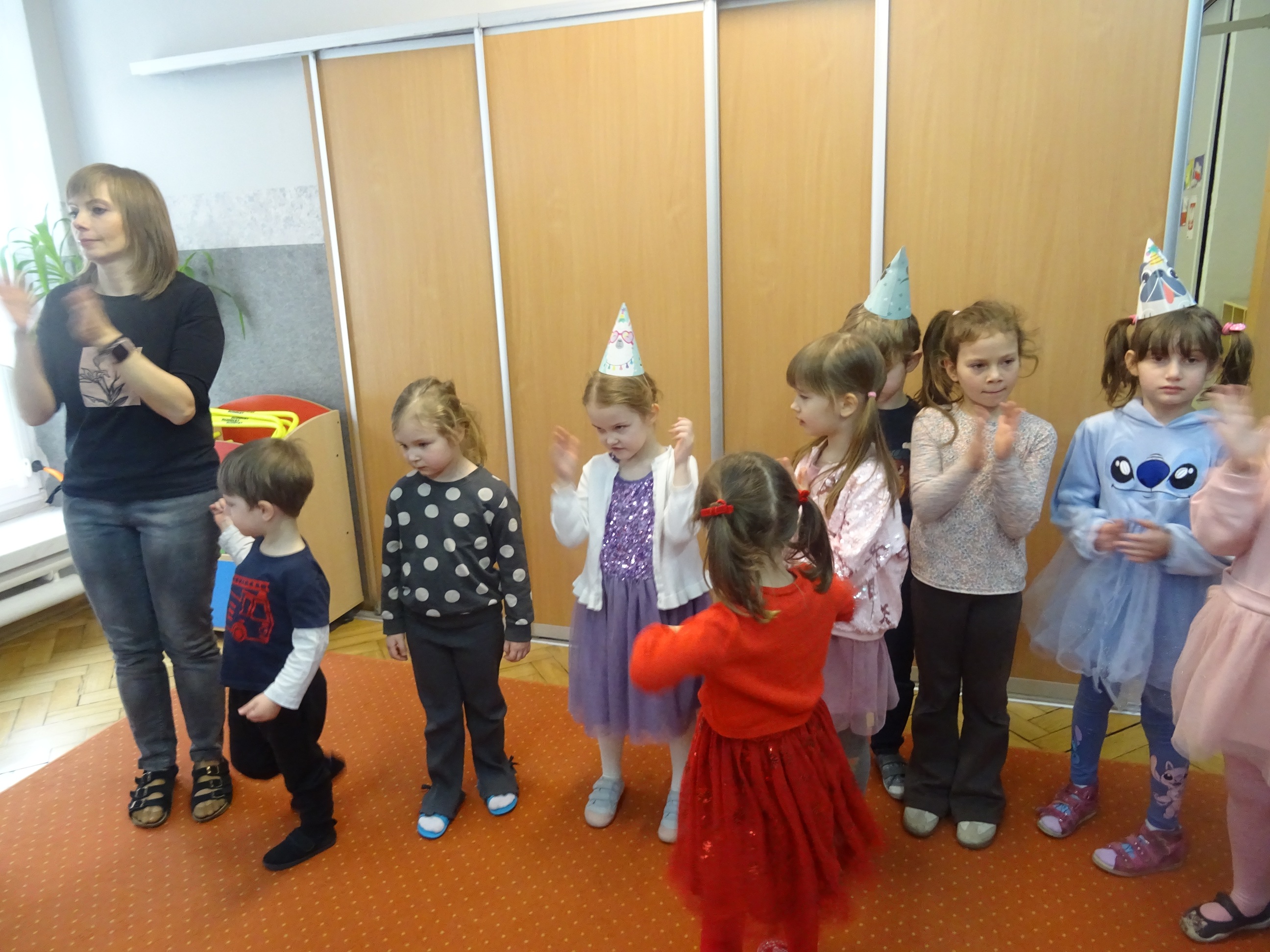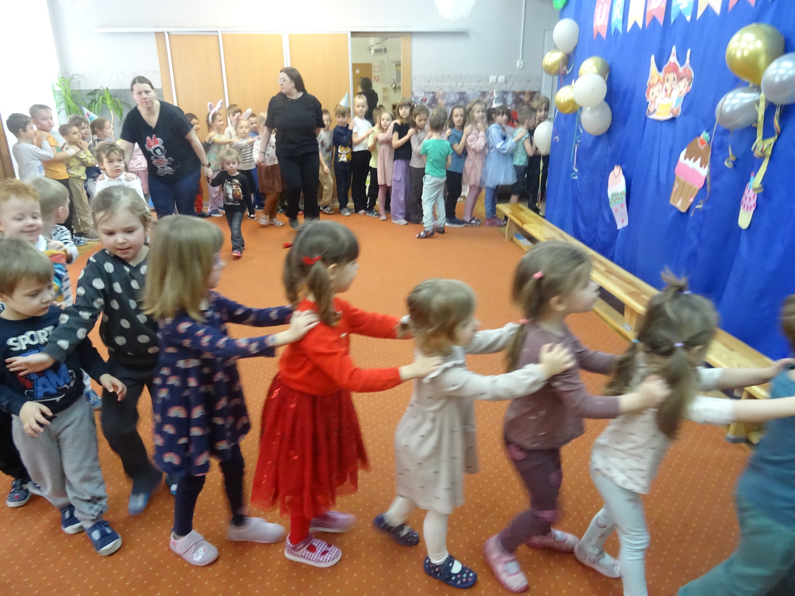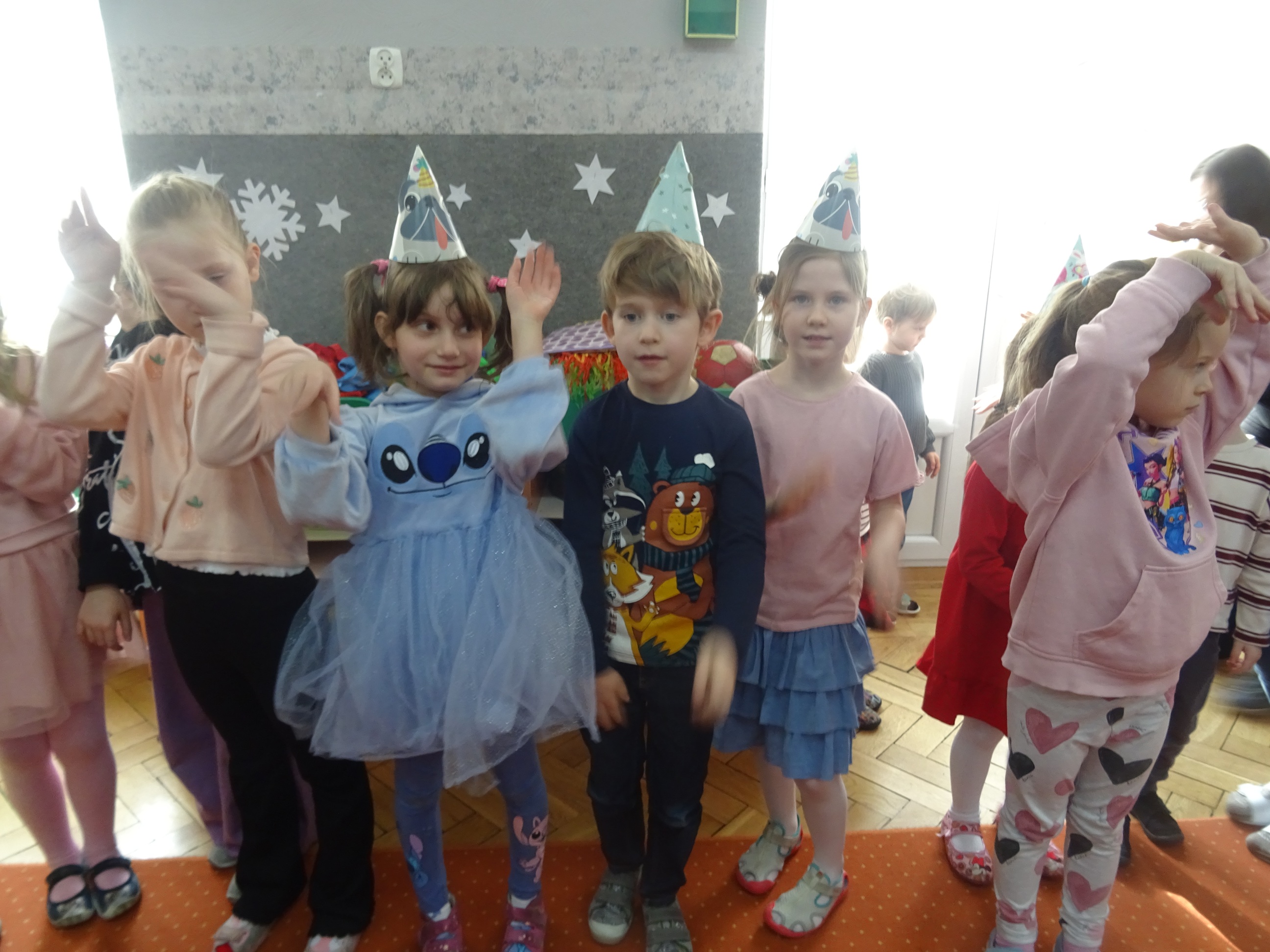 19.02.2026r., zorganizowaliśmy w naszym Przedszkolu Uroczystość Urodzinową dla wszystkich dzieci urodzonych w miesiącu lutym. Przy dźwiękach wesołej muzyki wszystkie przedszkolaki radośnie pląsały i oddawały się swobodnej zabawie. Nasi wyjątkowi Solenizanci mogli sprawdzić swój refleks w przygotowanych dla nich konkursach ruchowych i tanecznych. Było mnóstwo śmiechu i radości! Wszystkim Solenizantom życzymy wspaniałych prezentów, dużo zdrówka i jeszcze więcej radosnych dni!!!