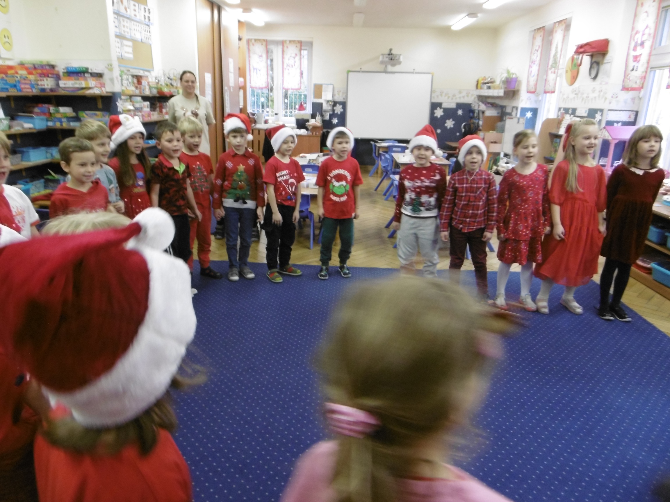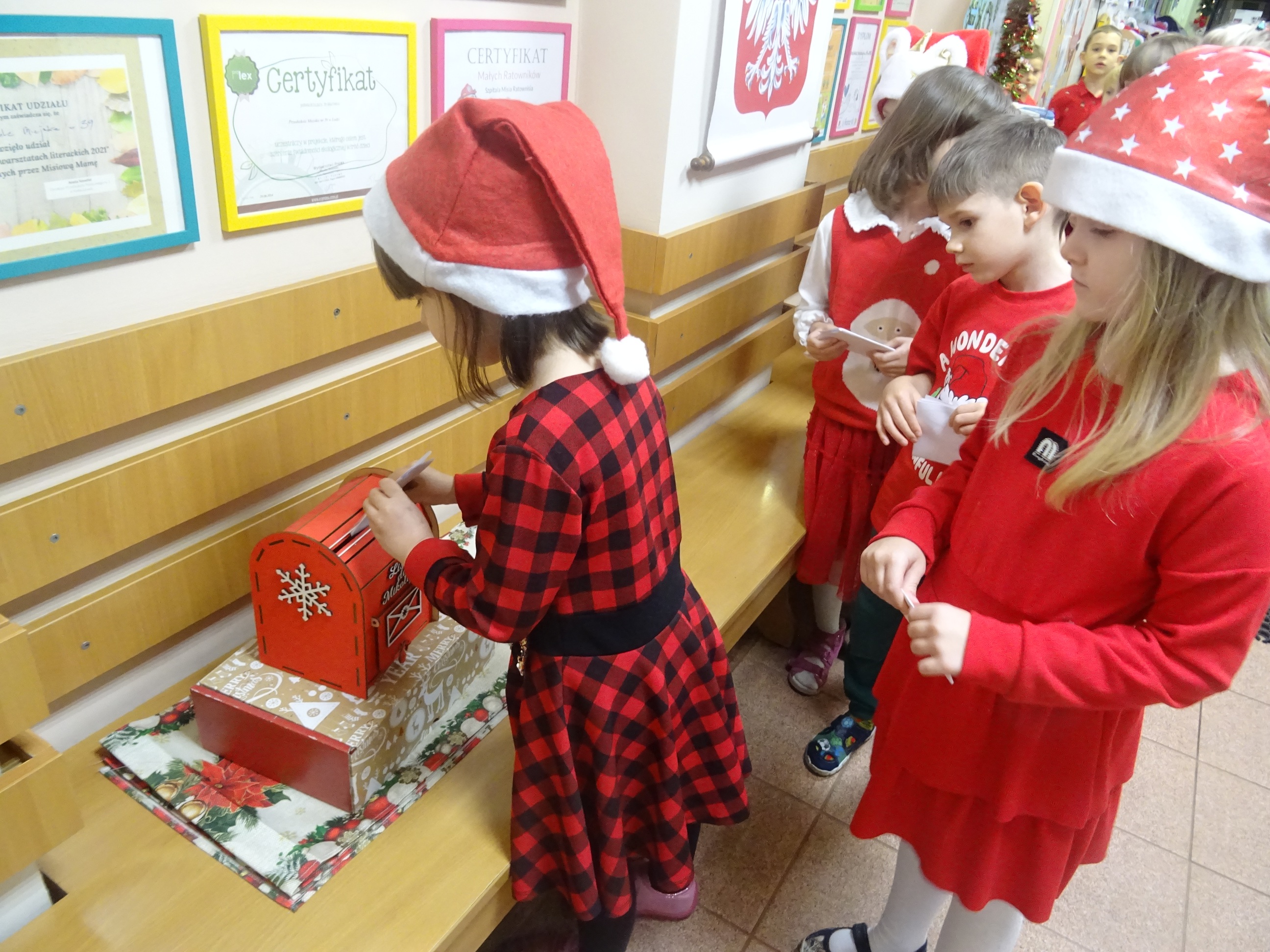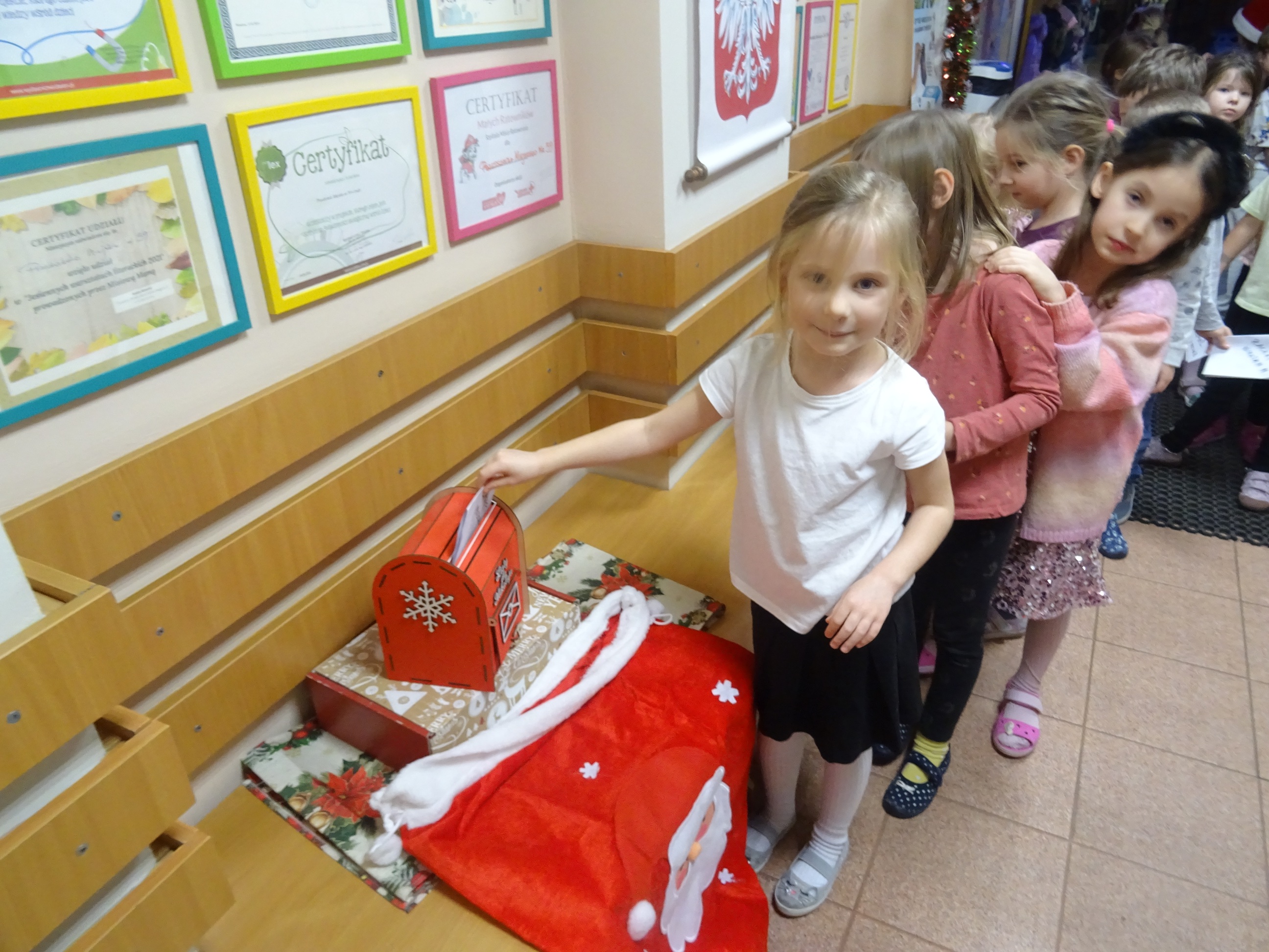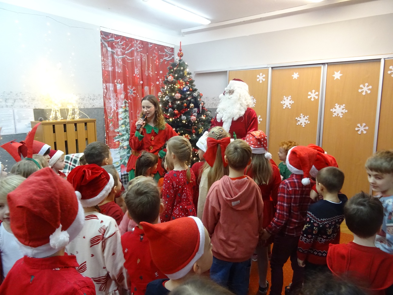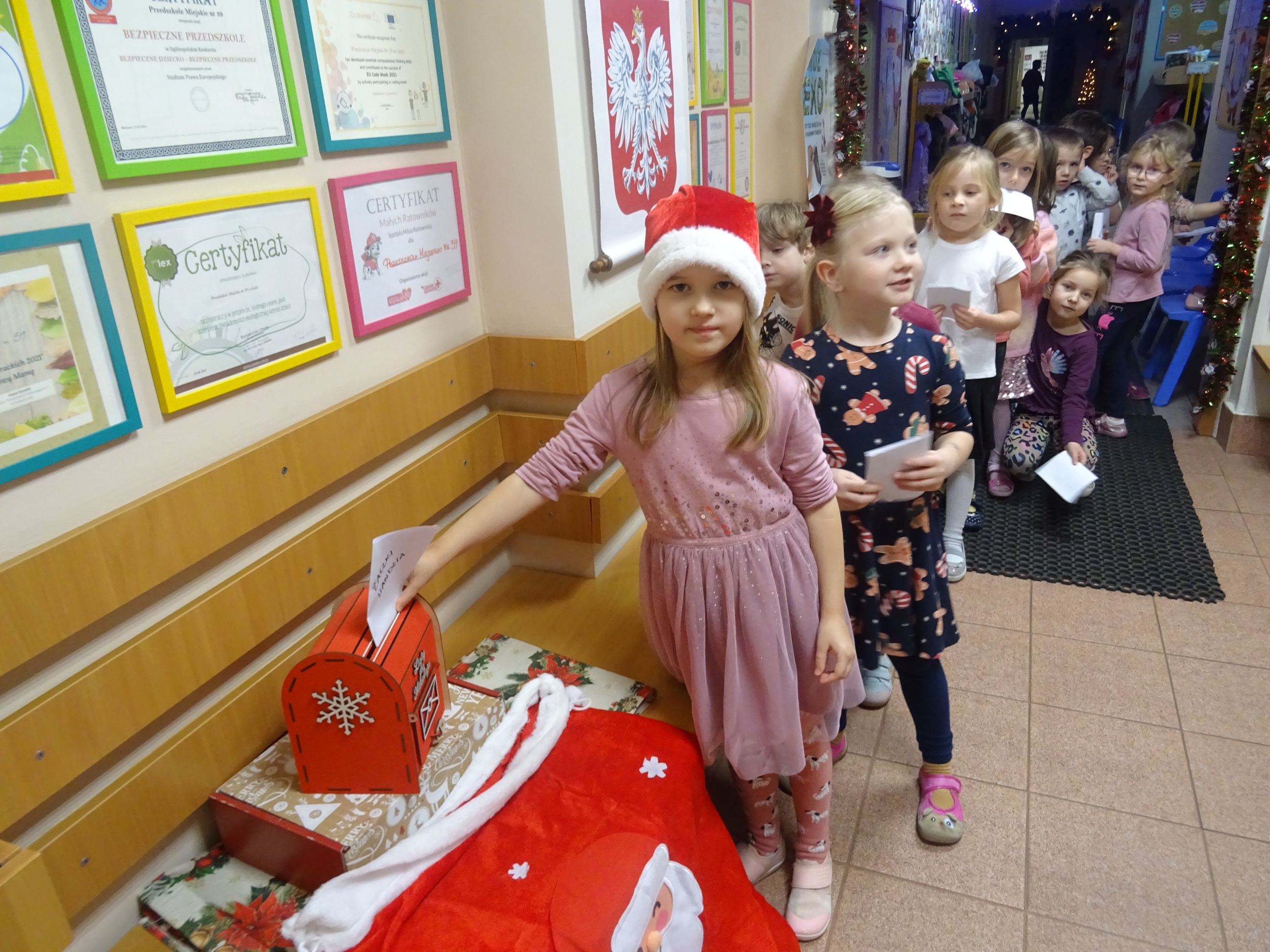 Mikołaj zasiadł w fotelu i opowiedział dzieciom opowieść ruchową dotyczącą tego, jak przygotowuje się do roznoszenia prezentów. Zadał przedszkolakom kilka zagadek i zaprosił do wspólnego tańca.