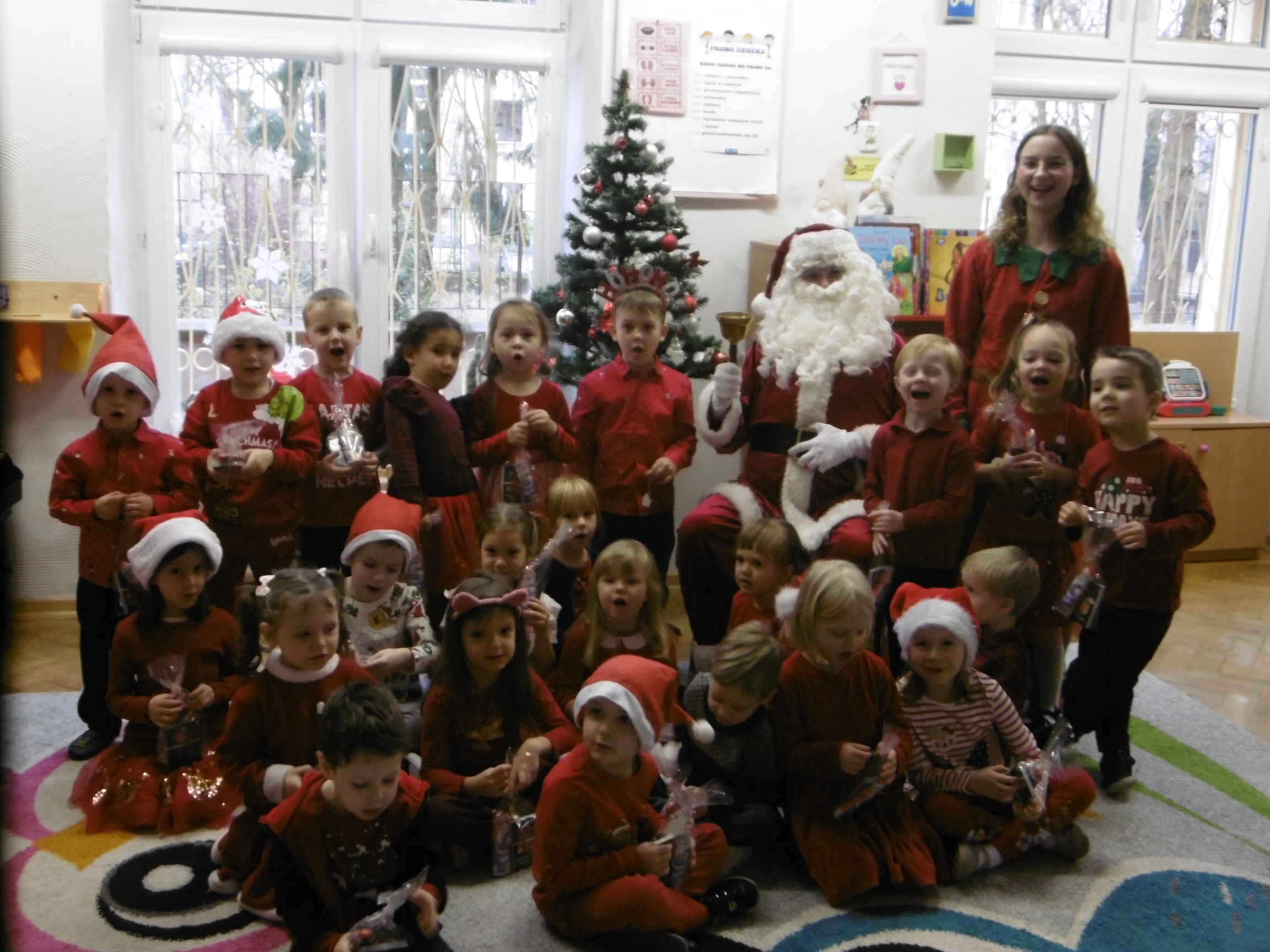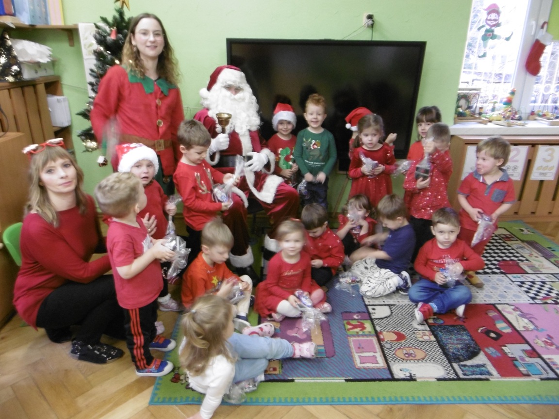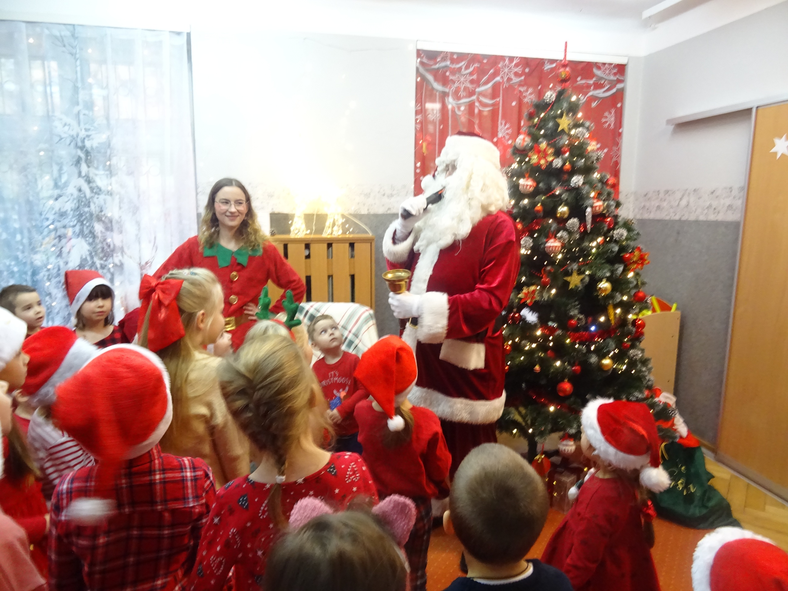 Pomimo braku śniegu Święty Mikołaj nie zawiódł dzieci i nie kazał długo na siebie czekać. Już od samego rana wraz z elfem zawitał do naszego Przedszkola. Na początek zabaw mikołajkowych dzieci przywitał elf i poprowadził zabawy ruchowe do piosenek o tematyce zimowej i świątecznej.