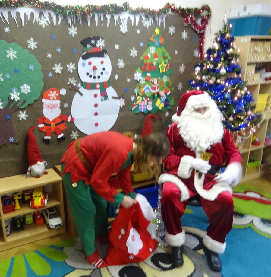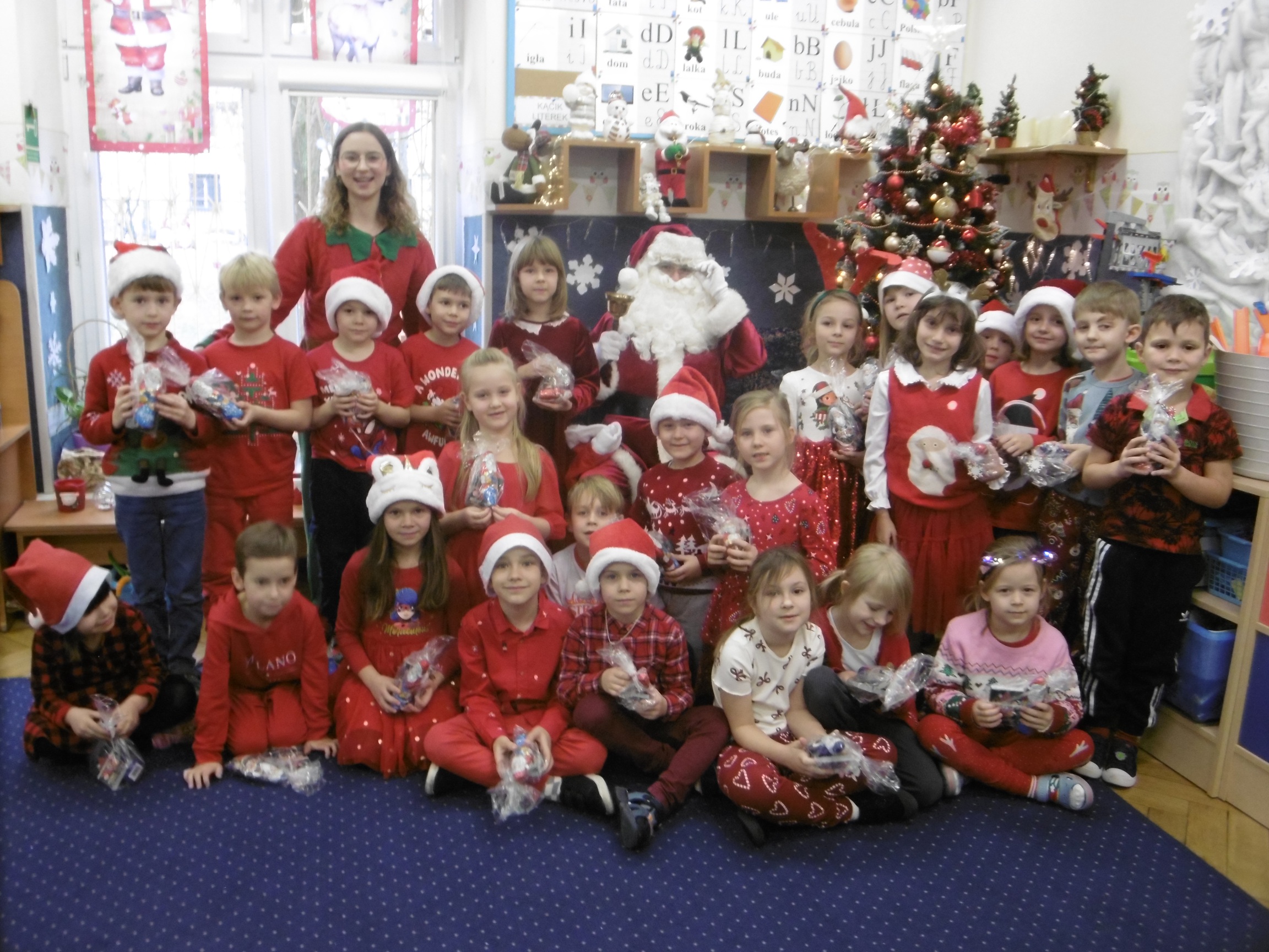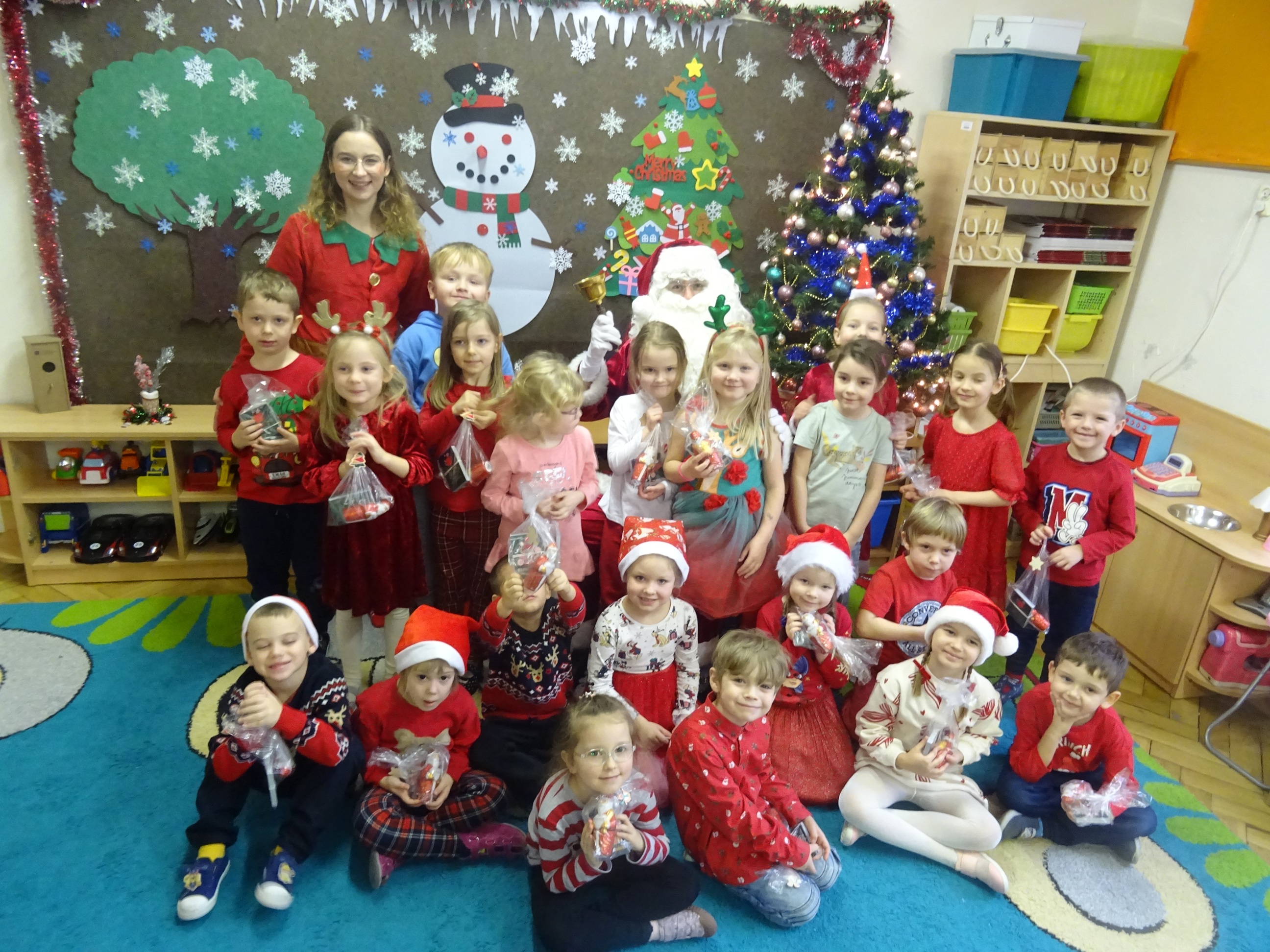 Pomimo braku śniegu Święty Mikołaj nie zawiódł dzieci i nie kazał długo na siebie czekać. Już od samego rana wraz z elfem zawitał do naszego Przedszkola. Na początek zabaw mikołajkowych dzieci przywitał elf i poprowadził zabawy ruchowe do piosenek o tematyce zimowej i świątecznej.