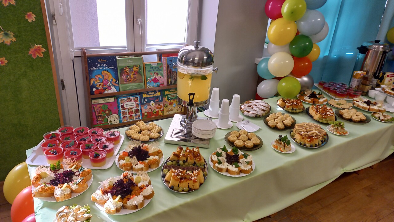 Uroczystość „Pasowania na przedszkolaka” nie mogłaby odbyć się bez pysznego poczęstunku, w całości przygotowanego przez Ciocie z kuchni! Wszystko było piękne i smaczne! Gorąco dziękujemy za pomoc!!!