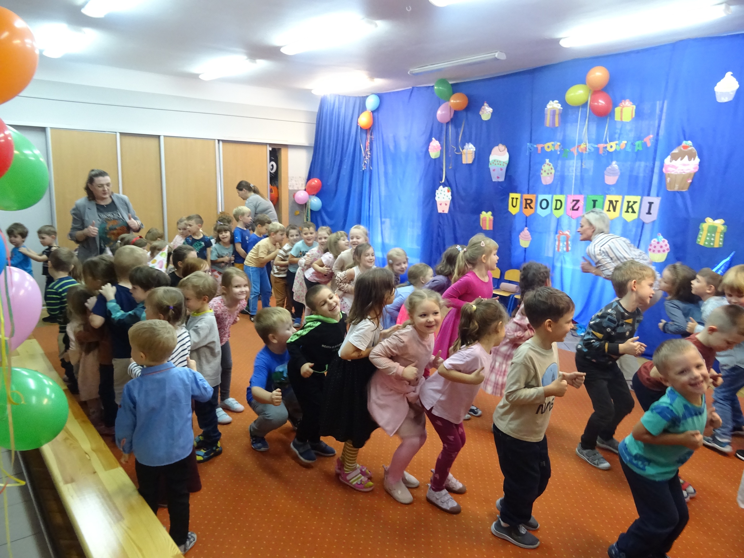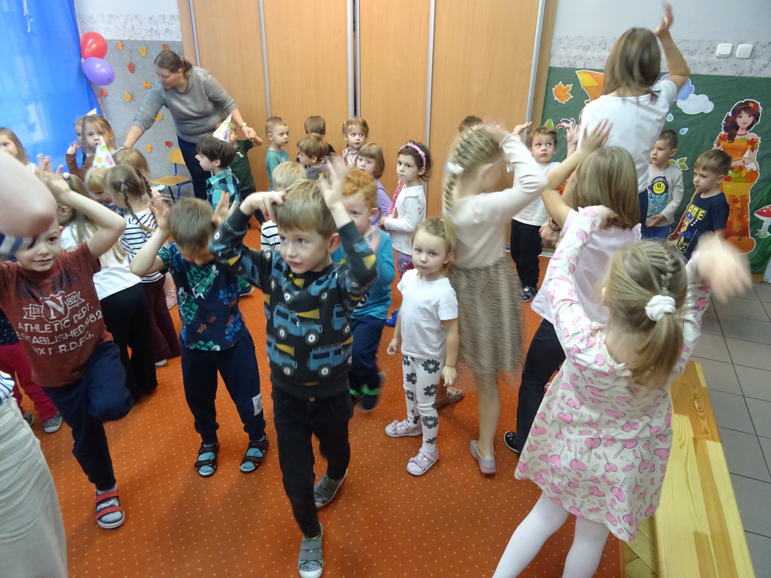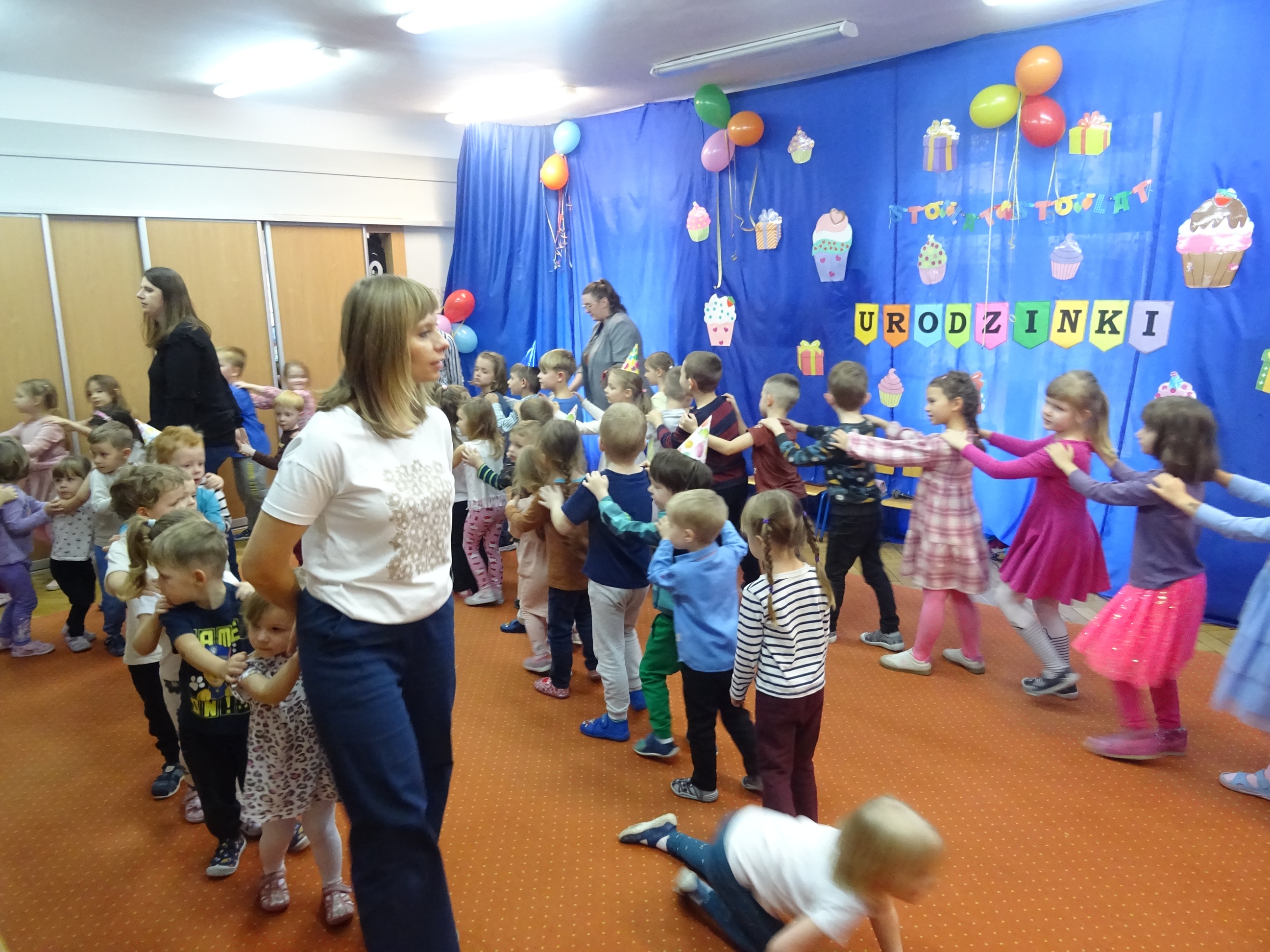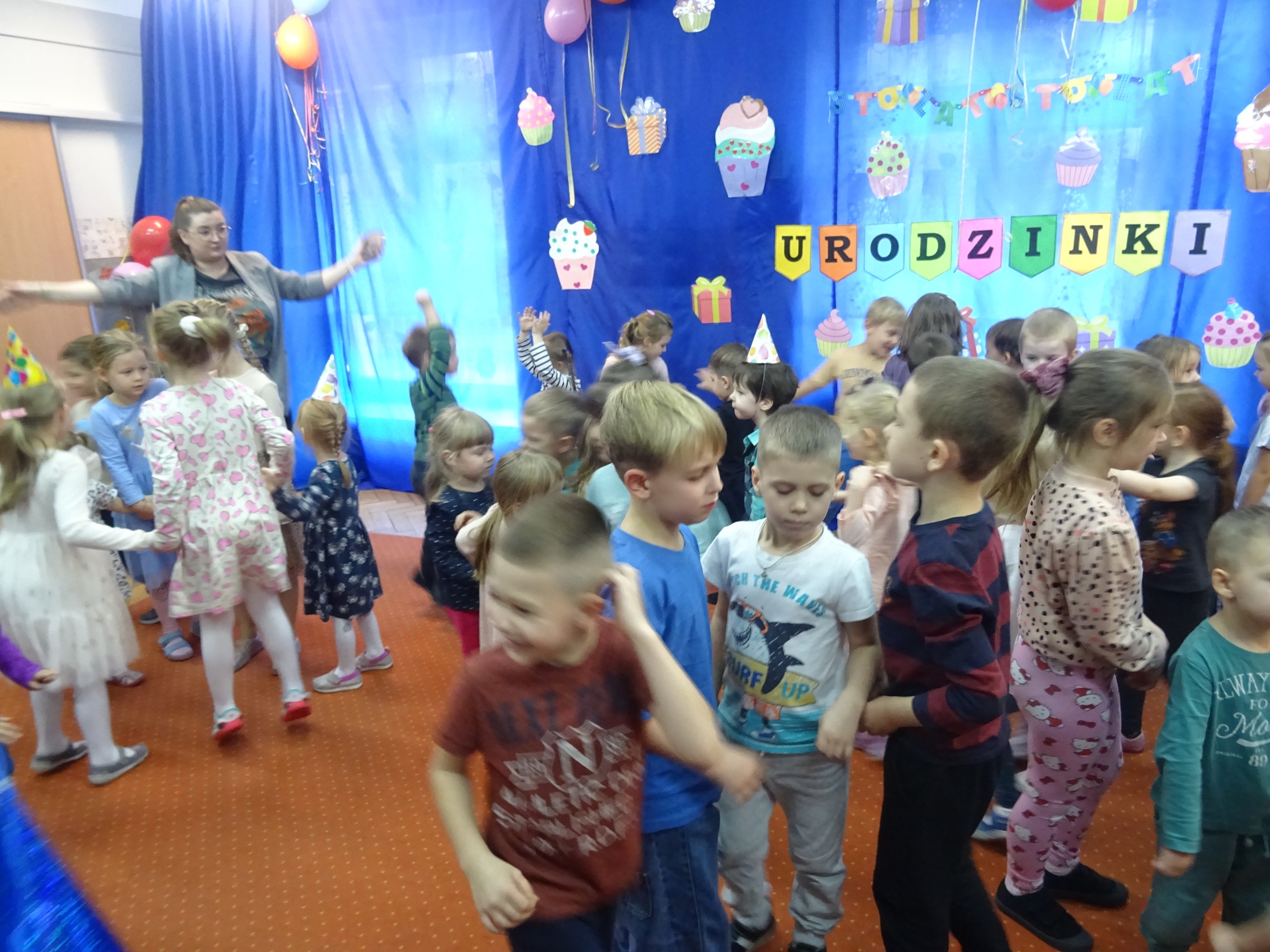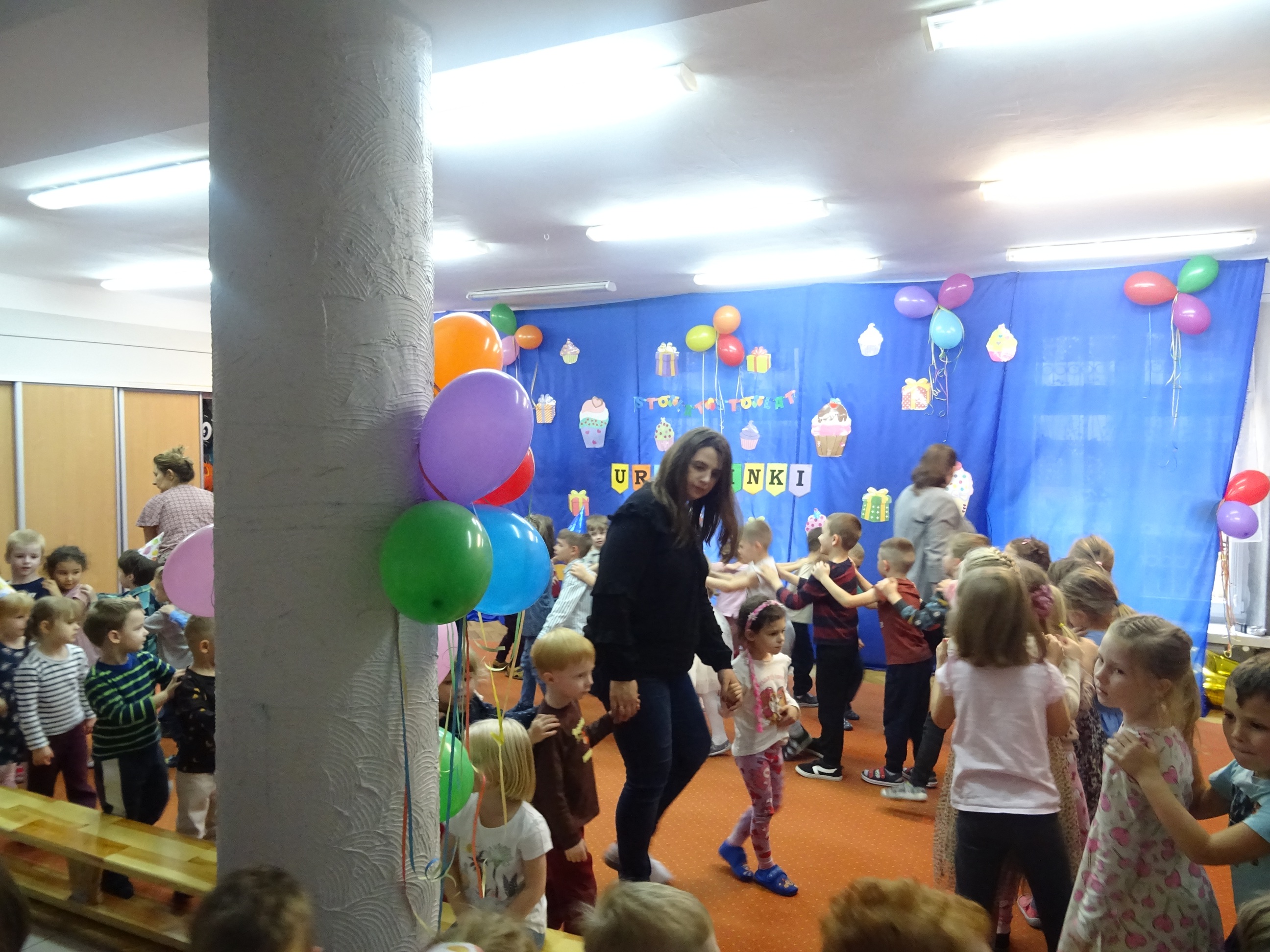 30 października odbyła się w naszym Przedszkolu kolejna uroczystość – Dzień Urodzinkowy dzieci urodzonych w miesiącu październiku! Z tej okazji pani Wicedyrektor złożyła życzenia zdrowia, uśmiechu, wspaniałych przyjaciół i udanej zabawy dla wszystkich Solenizantów! Następnie dzieci ze wszystkich grup wiekowych wzięły udział w konkursach, zabawach i tańcach na holu przedszkolnym. Przy dźwiękach wesołej, uwielbianej przez dzieci muzyce przedszkolaki prezentowały swoje zdolności taneczne.