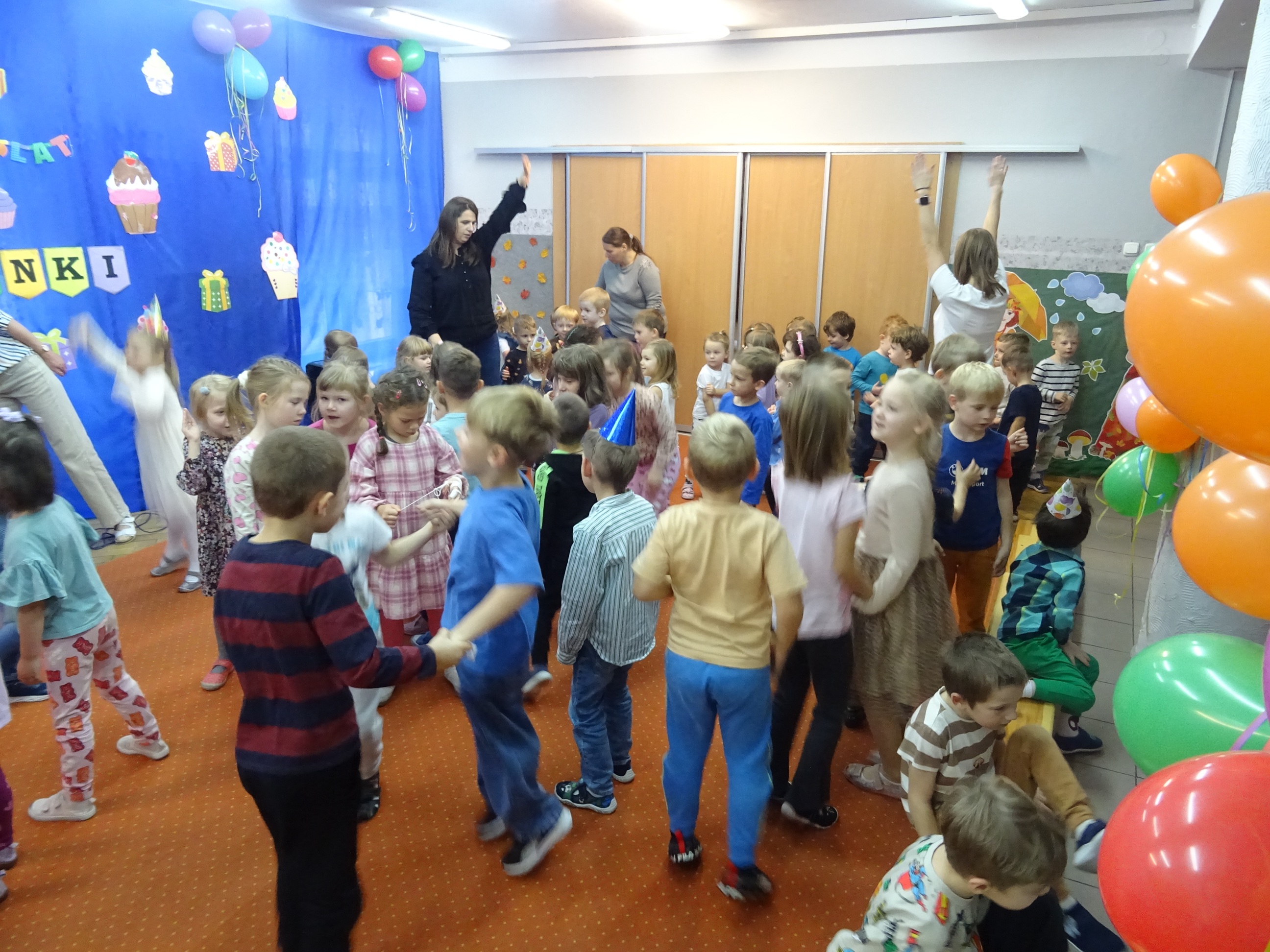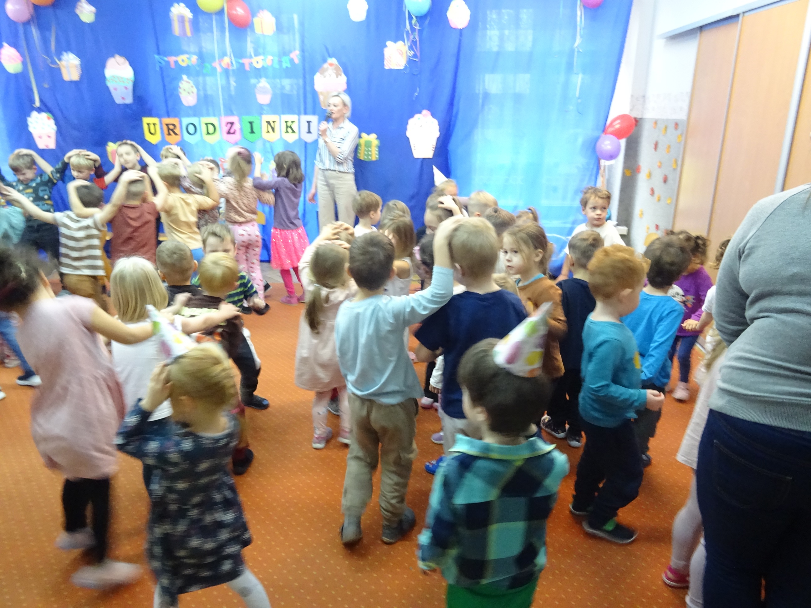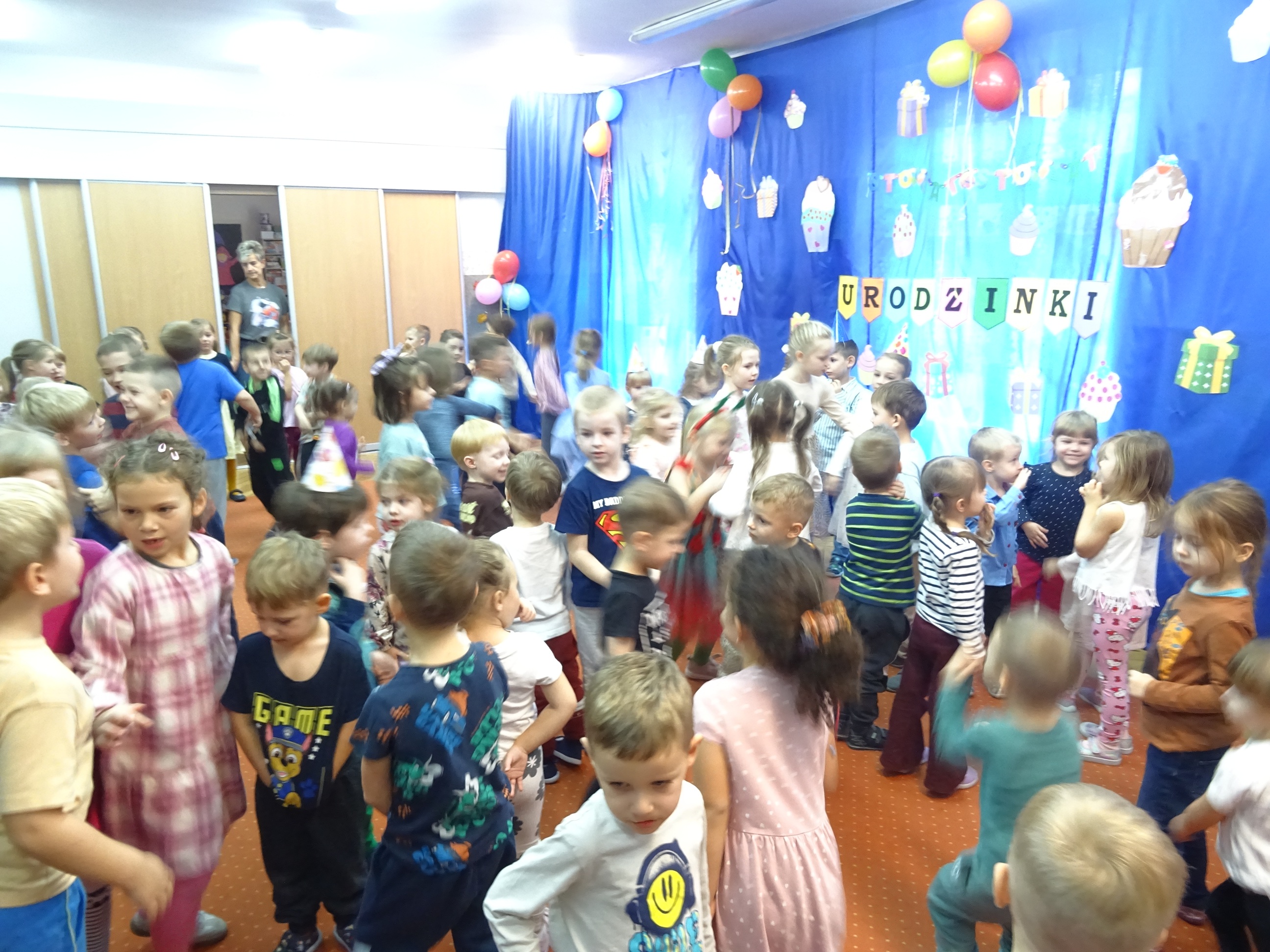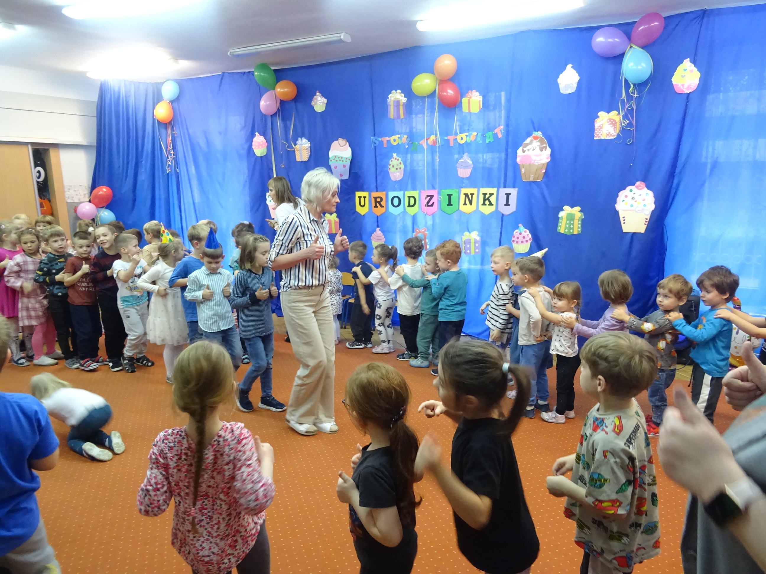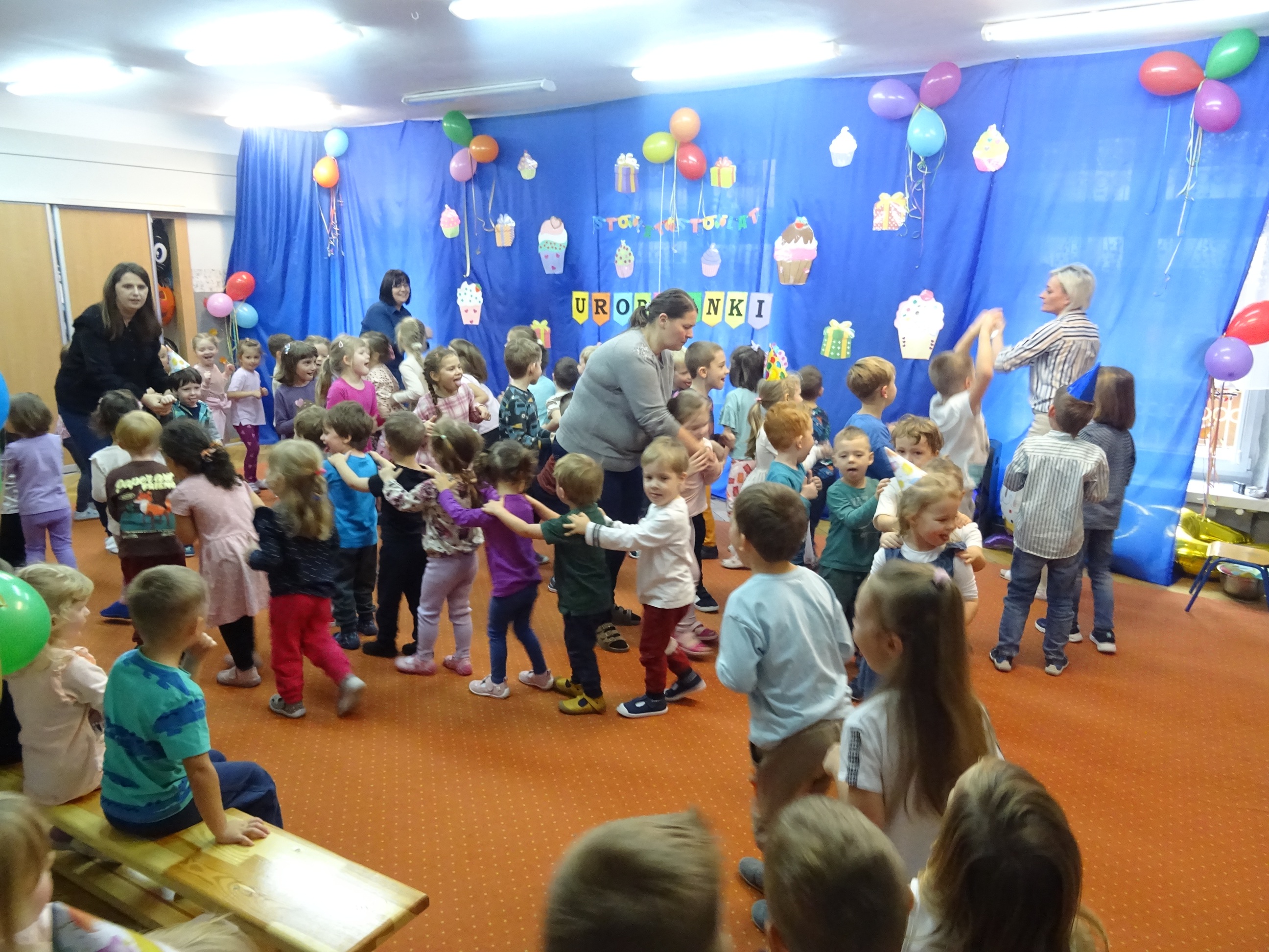 30 października odbyła się w naszym Przedszkolu kolejna uroczystość – Dzień Urodzinkowy dzieci urodzonych w miesiącu październiku! Z tej okazji pani Wicedyrektor złożyła życzenia zdrowia, uśmiechu, wspaniałych przyjaciół i udanej zabawy dla wszystkich Solenizantów! Następnie dzieci ze wszystkich grup wiekowych wzięły udział w konkursach, zabawach i tańcach na holu przedszkolnym. Przy dźwiękach wesołej, uwielbianej przez dzieci muzyce przedszkolaki prezentowały swoje zdolności taneczne.