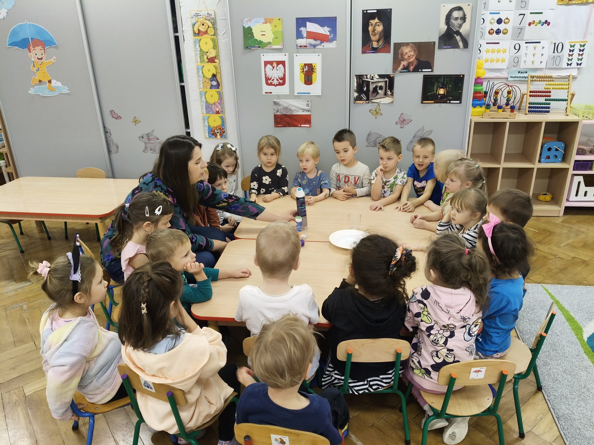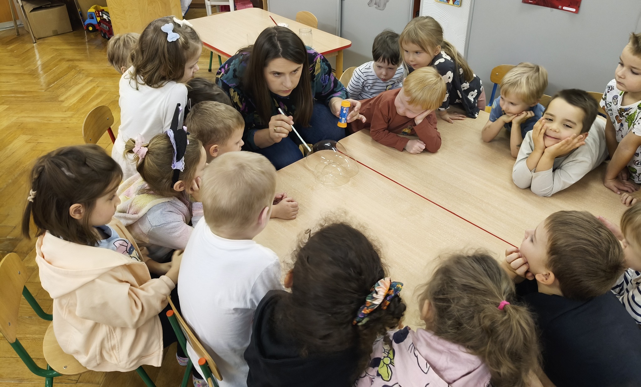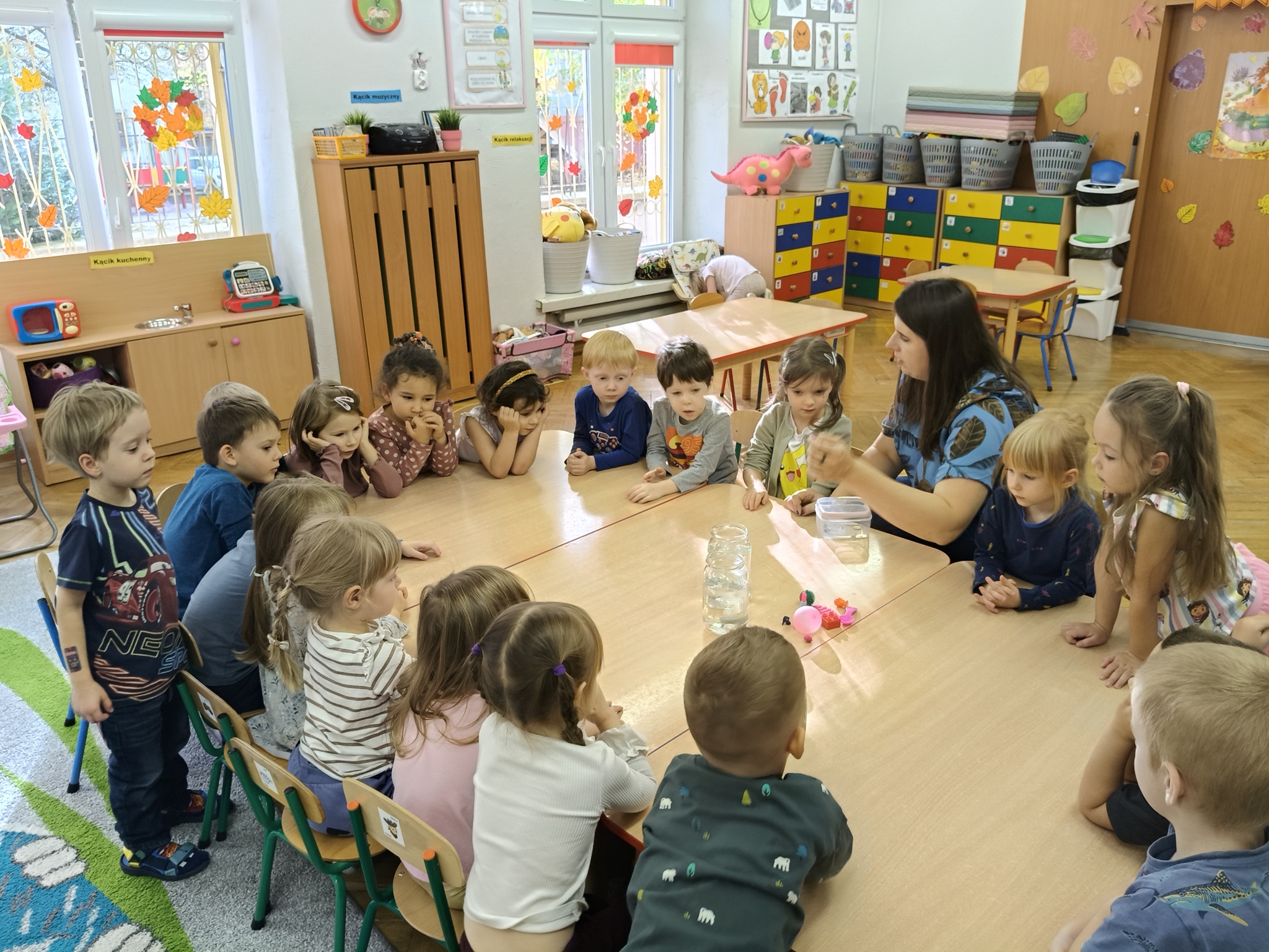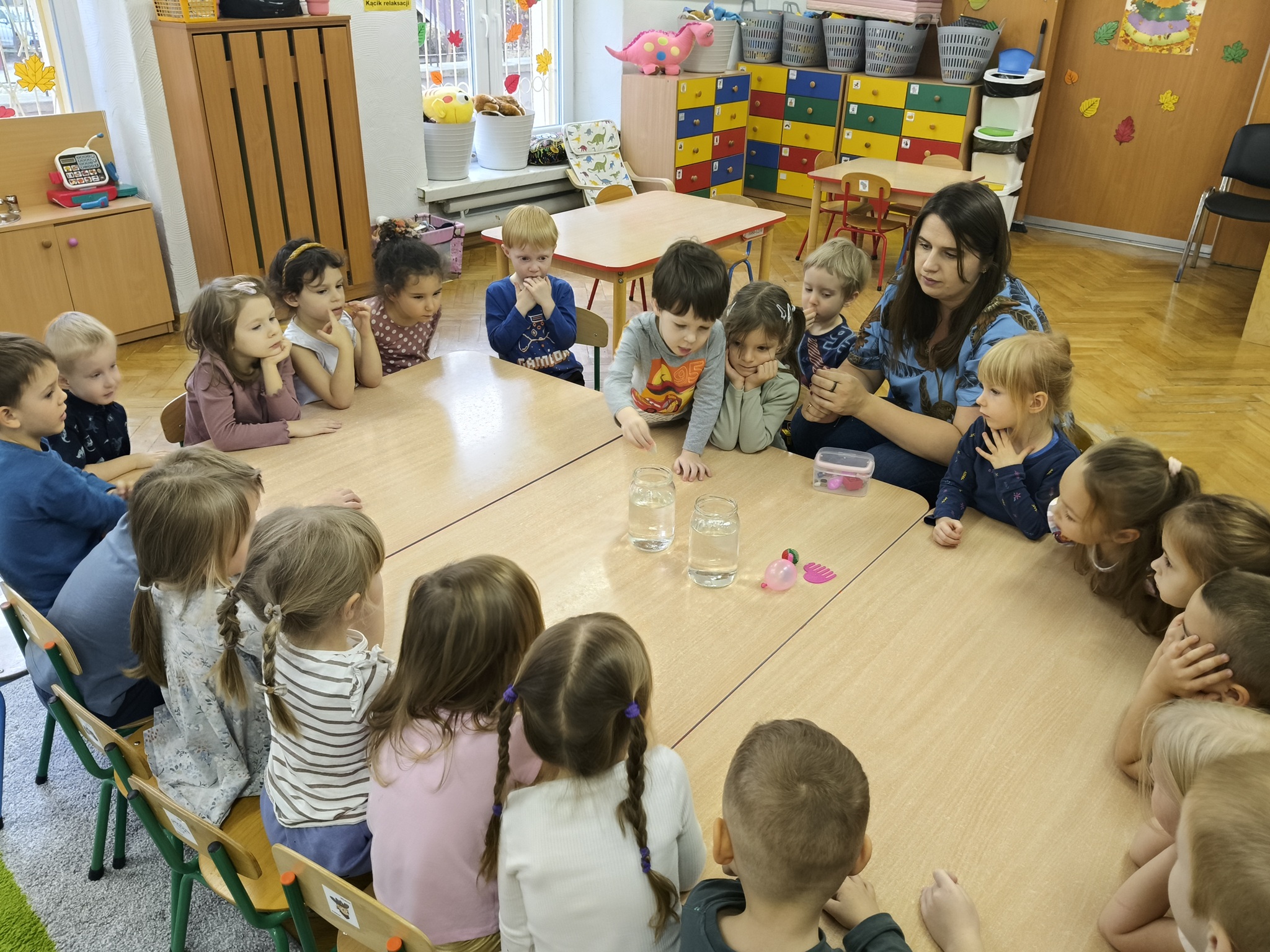 W ostatnim czasie dzieci z grupy Smyki wcieliły się w małych naukowców. Dzieci razem z nauczycielem wykonywały różne eksperymenty i doświadczenia. Zabawy badawcze dostarczyły dzieciom dużo nowych przeżyć i wrażeń. Dzieci szukały odpowiedzi na pytania, dlaczego tak się dzieje?