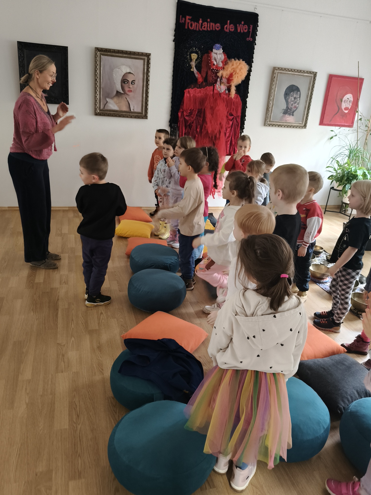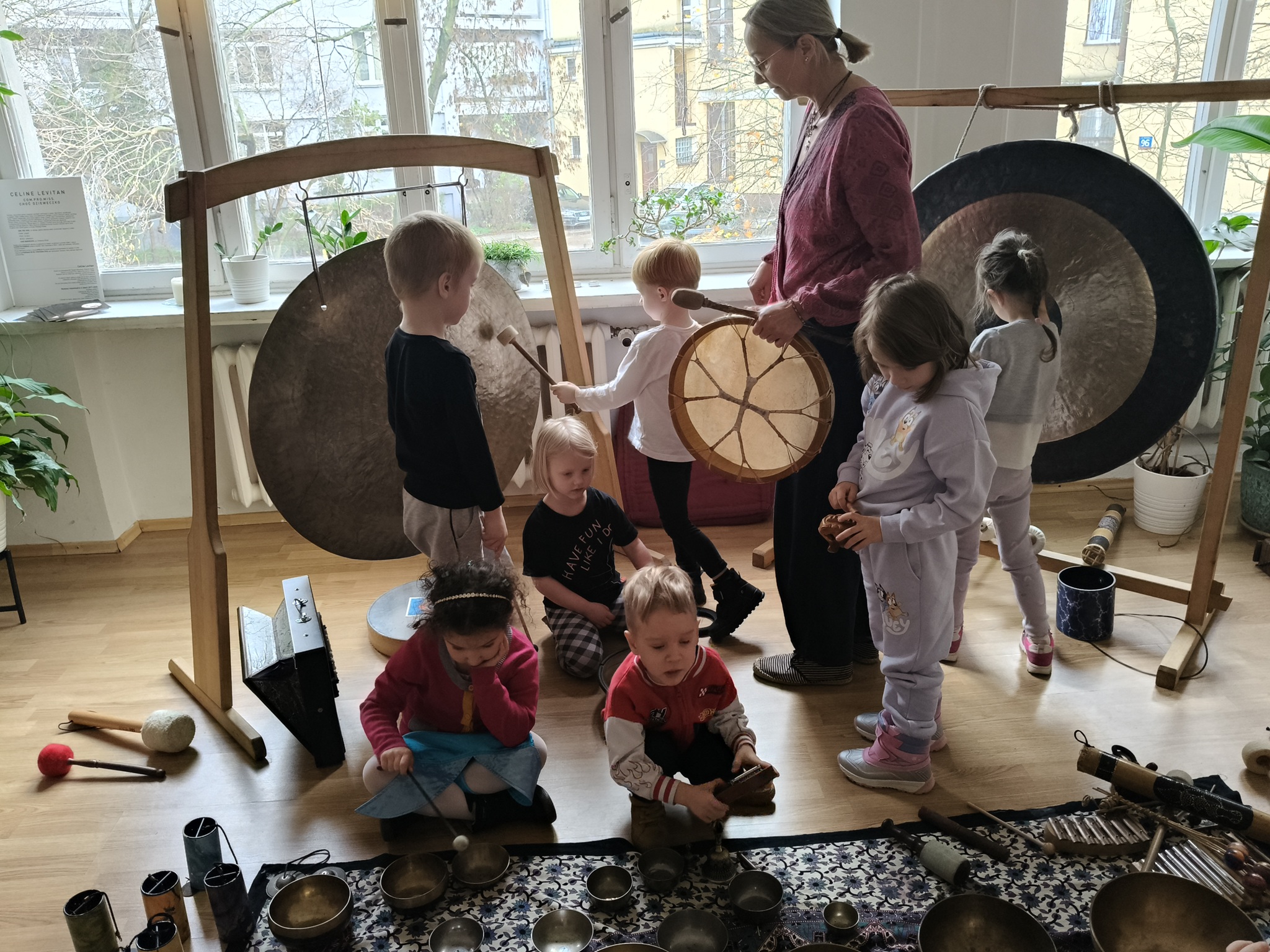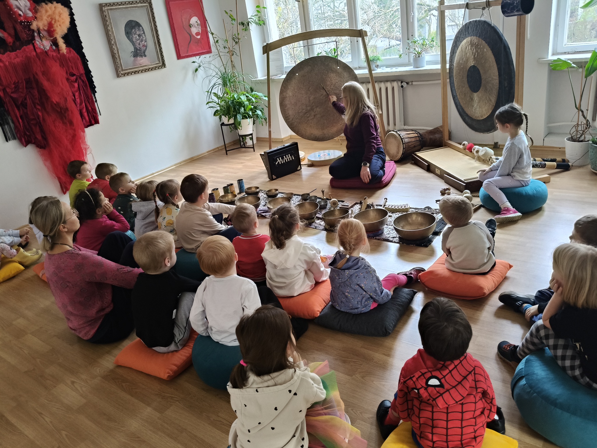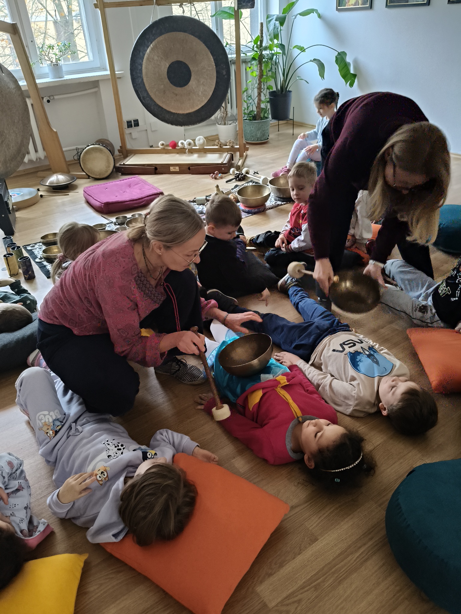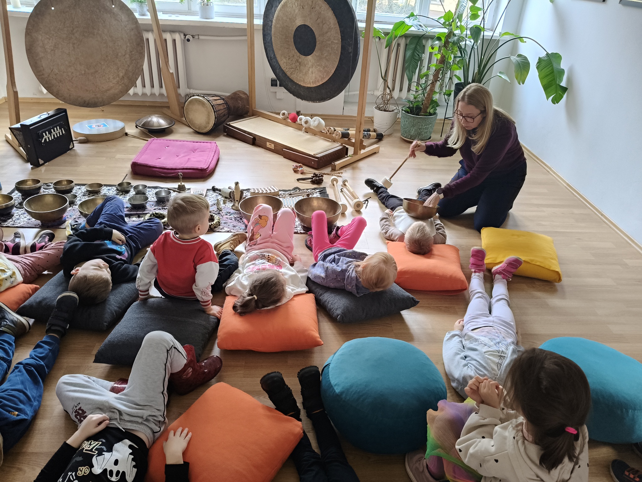 W środę 12 listopada, grupa Smyków uczestniczyła w warsztatach muzycznych „Śpiewające misy – niezwykłe spotkanie z dźwiękiem”. Było to muzyczne wydarzenie oparte na zasadach muzykoterapii, podczas którego wykorzystywano: bębenki, tamburyna, misy dźwiękowe, gongi, dzwonki, kamertony oraz niezwykłe instrumenty jak np. laska deszczowa, puszka burzowa, itp. Zajęcia te zapewniły dzieciom wielozmysłową aktywność, angażując zarówno małą i dużą motorykę, zmysł słuchu, wzroku oraz dotyku. Przez całe zajęcia, dzieci były zainteresowane proponowanymi aktywnościami i zadowolone wróciły do przedszkola.