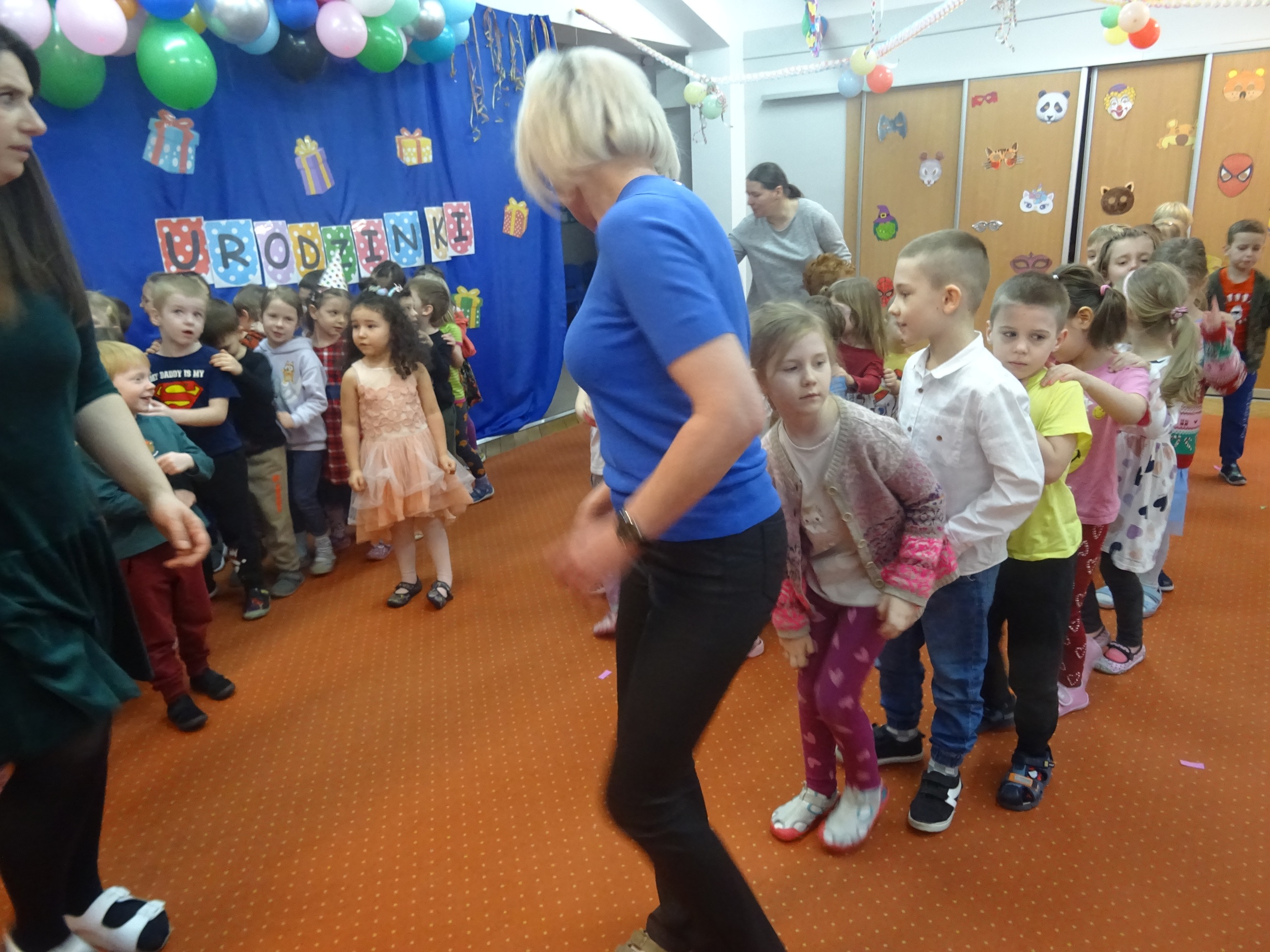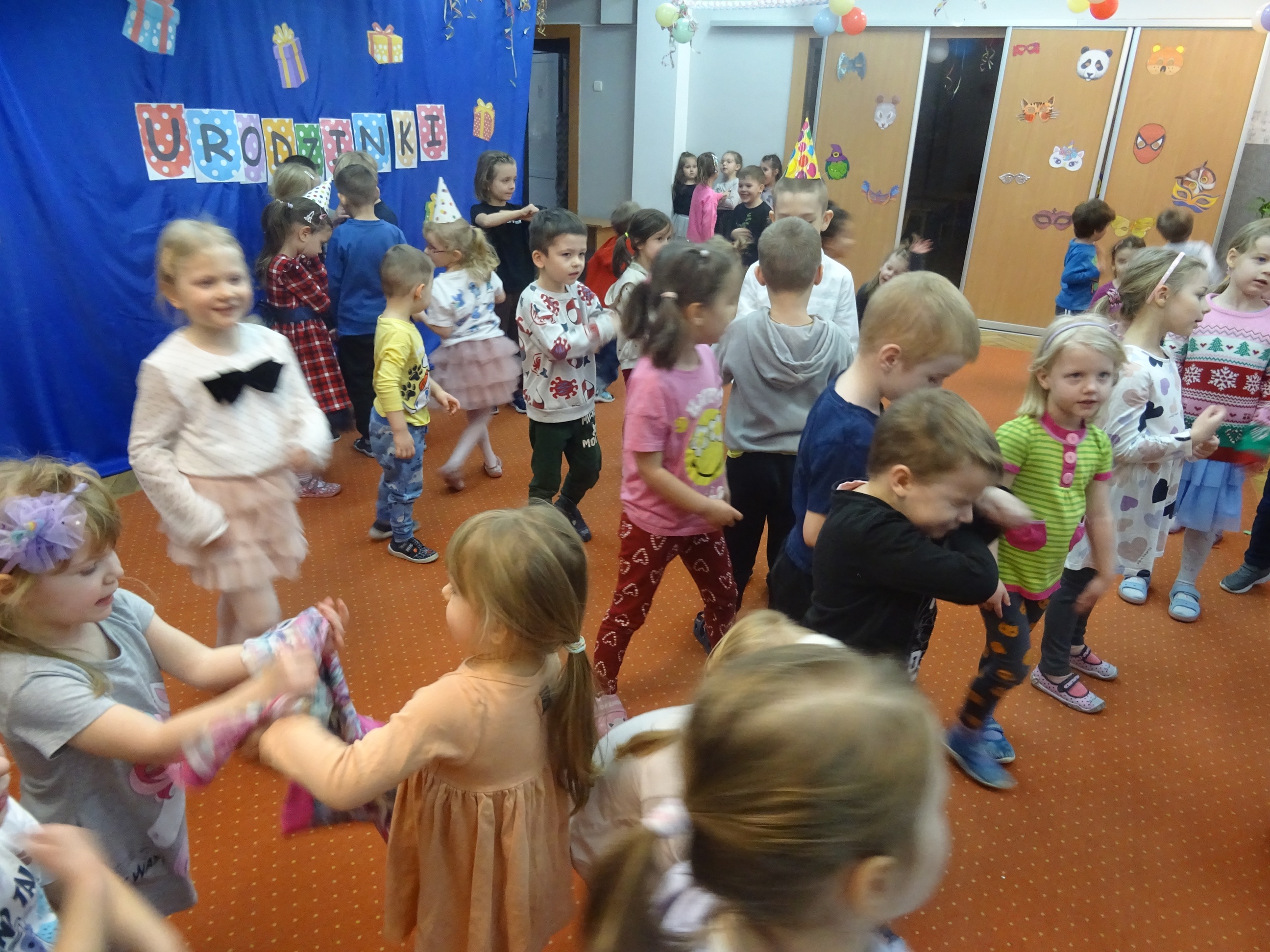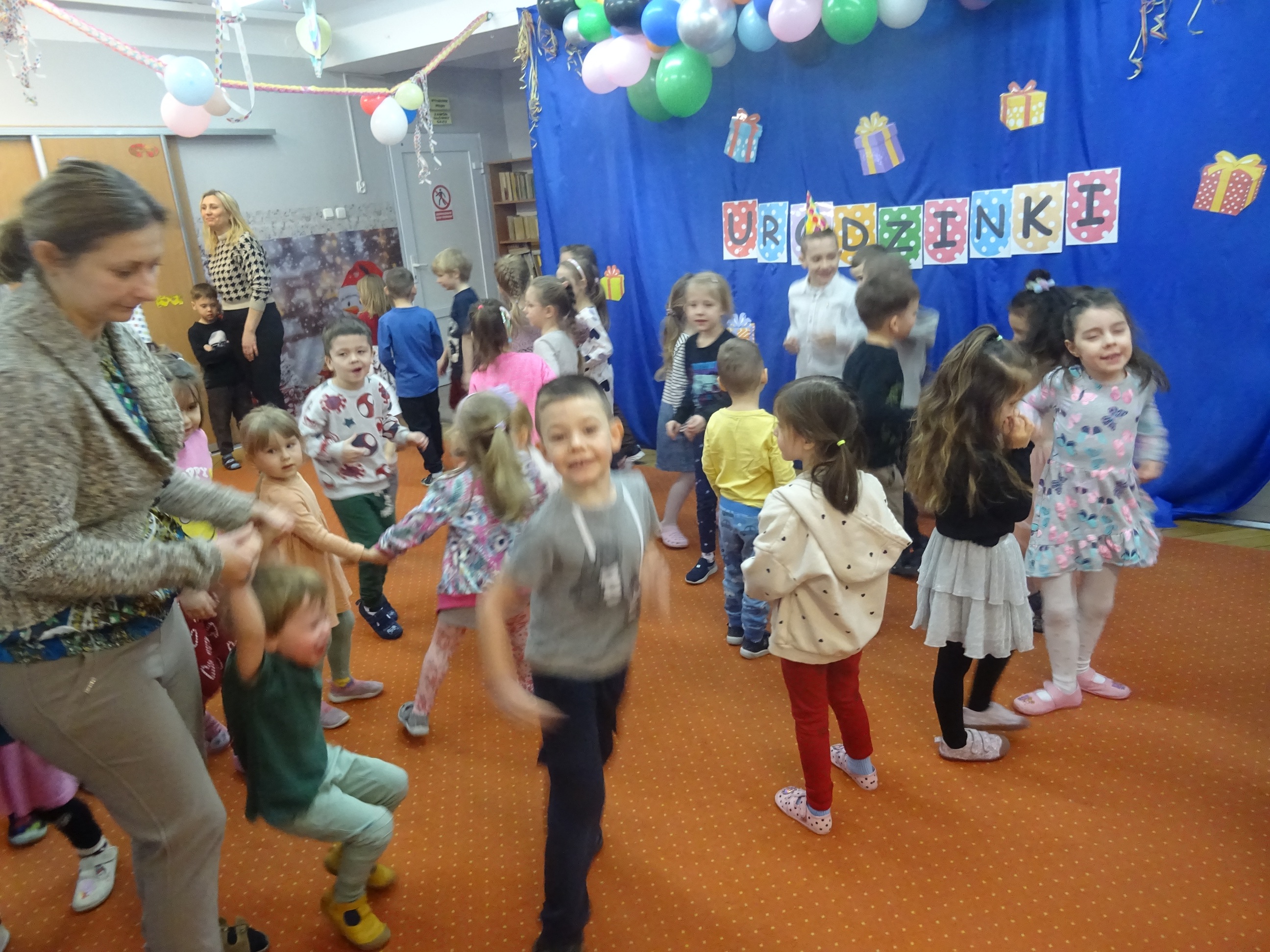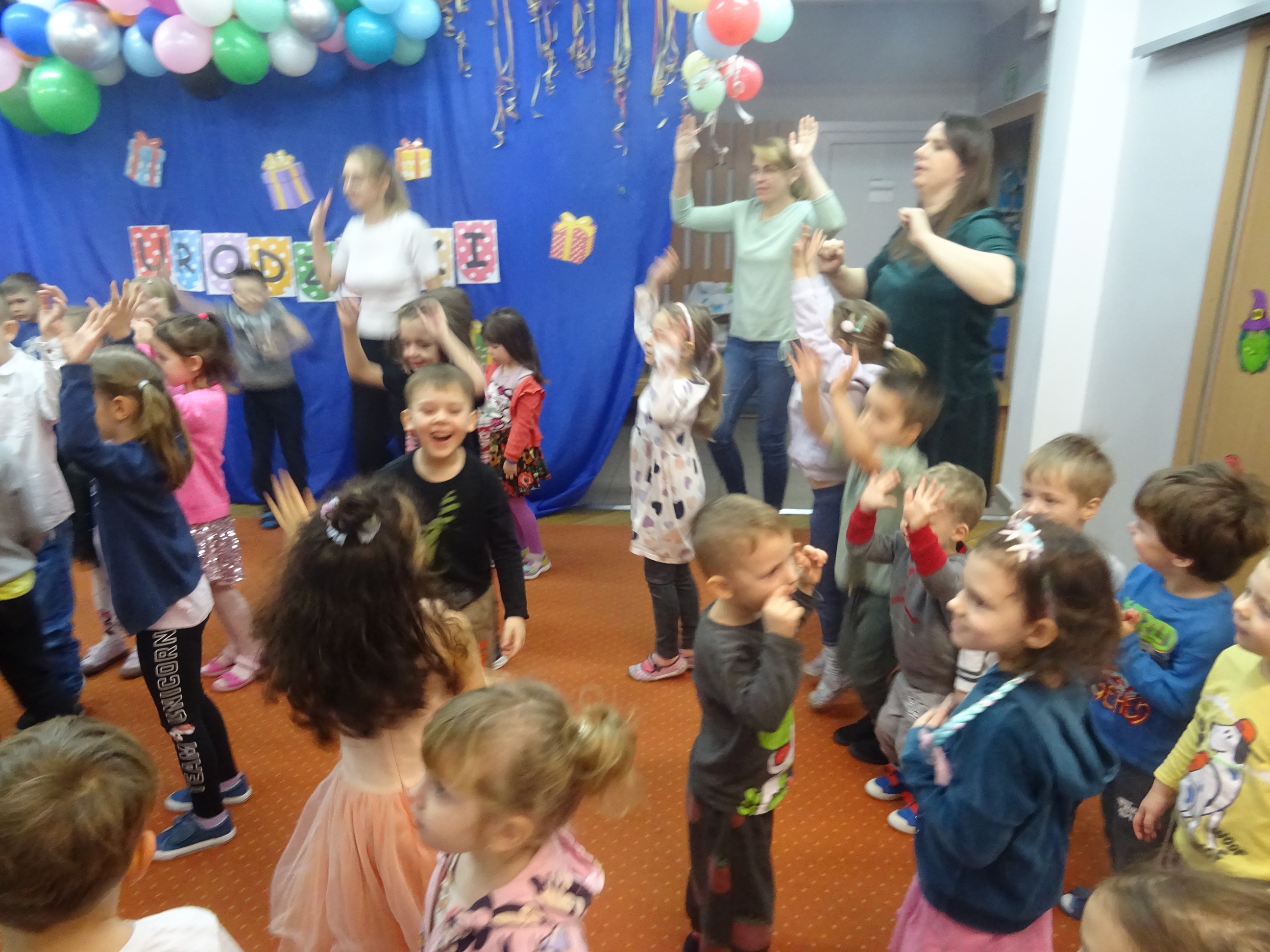29 stycznia odbyła się w naszym Przedszkolu kolejna uroczystość – Dzień Urodzinkowy dzieci urodzonych w miesiącu styczniu! Z tej okazji pani Wicedyrektor złożyła życzenia zdrowia, uśmiechu, wspaniałych przyjaciół i udanej zabawy dla wszystkich Solenizantów! Następnie dzieci ze wszystkich grup wiekowych wzięły udział w konkursach, zabawach i tańcach na holu przedszkolnym. Przy dźwiękach wesołej, uwielbianej przez dzieci muzyce przedszkolaki prezentowały swoje zdolności taneczne.