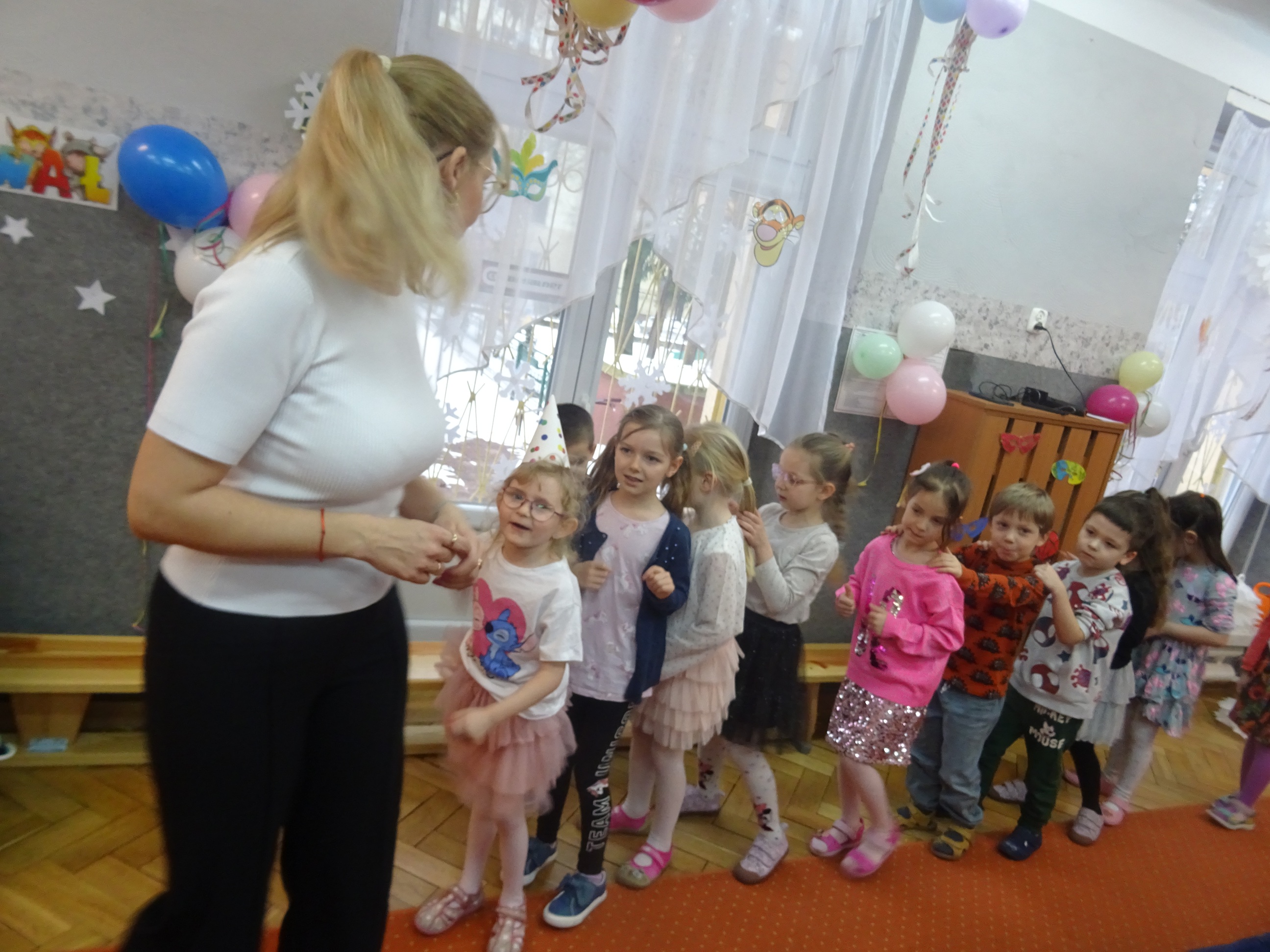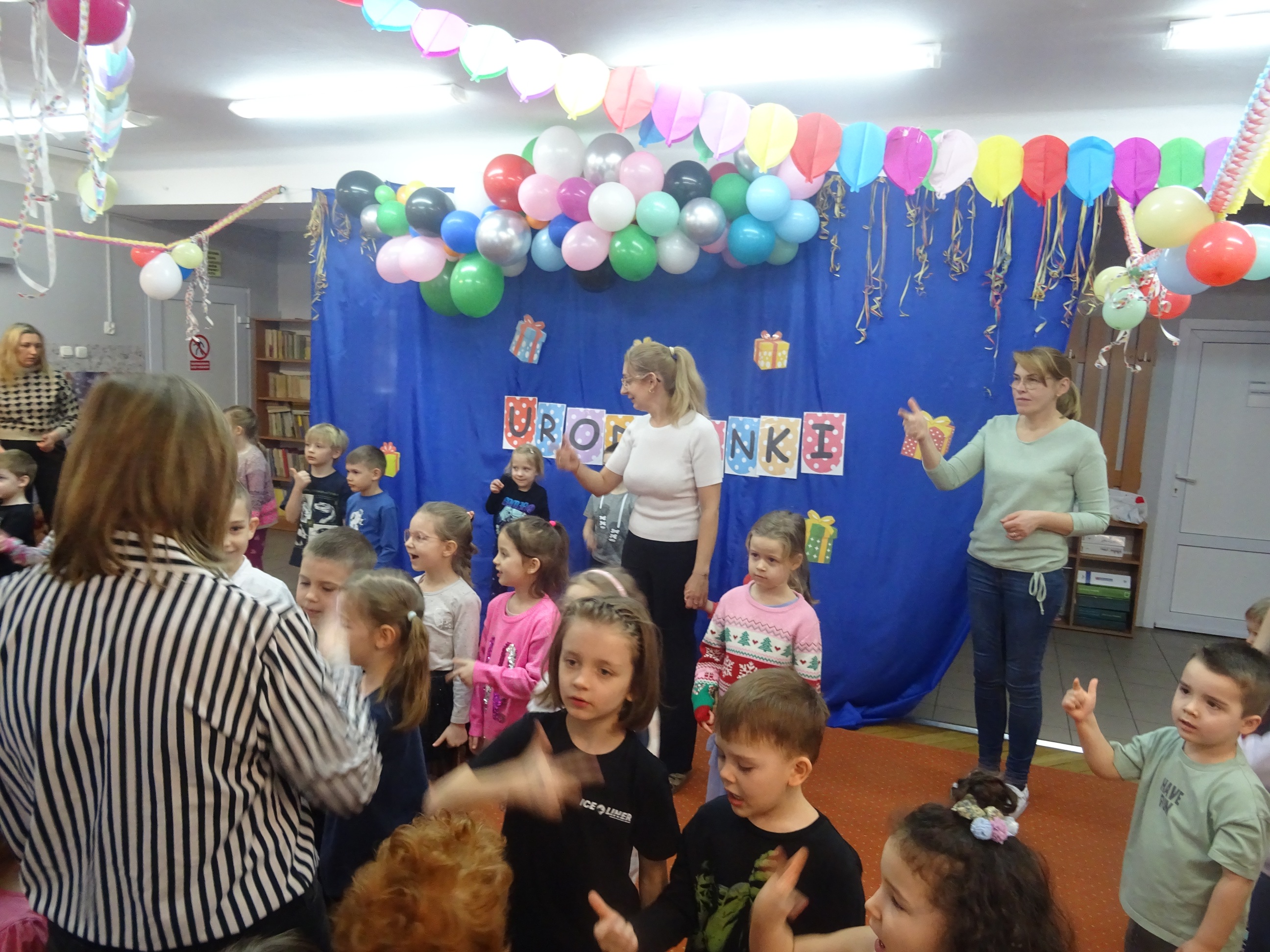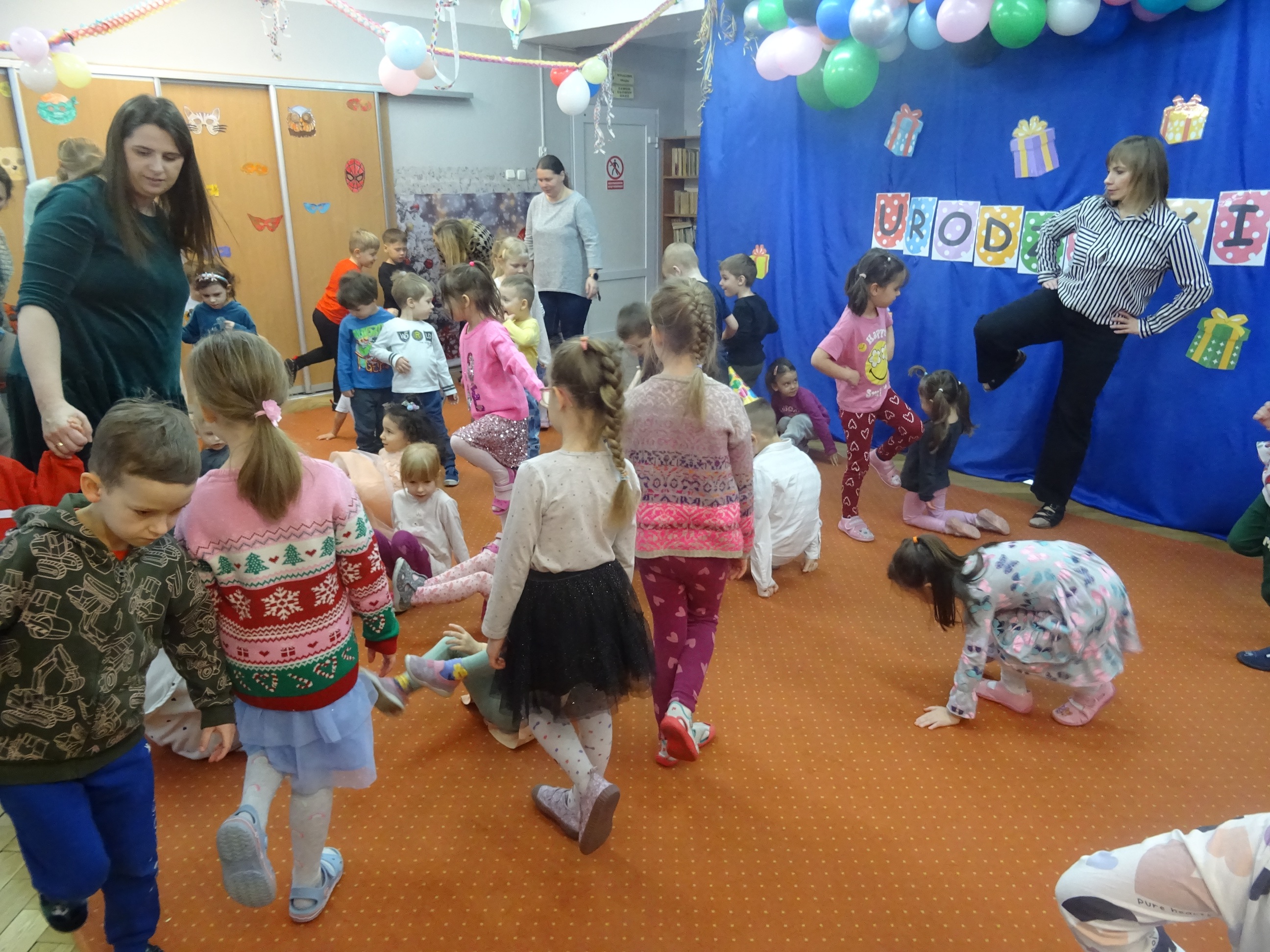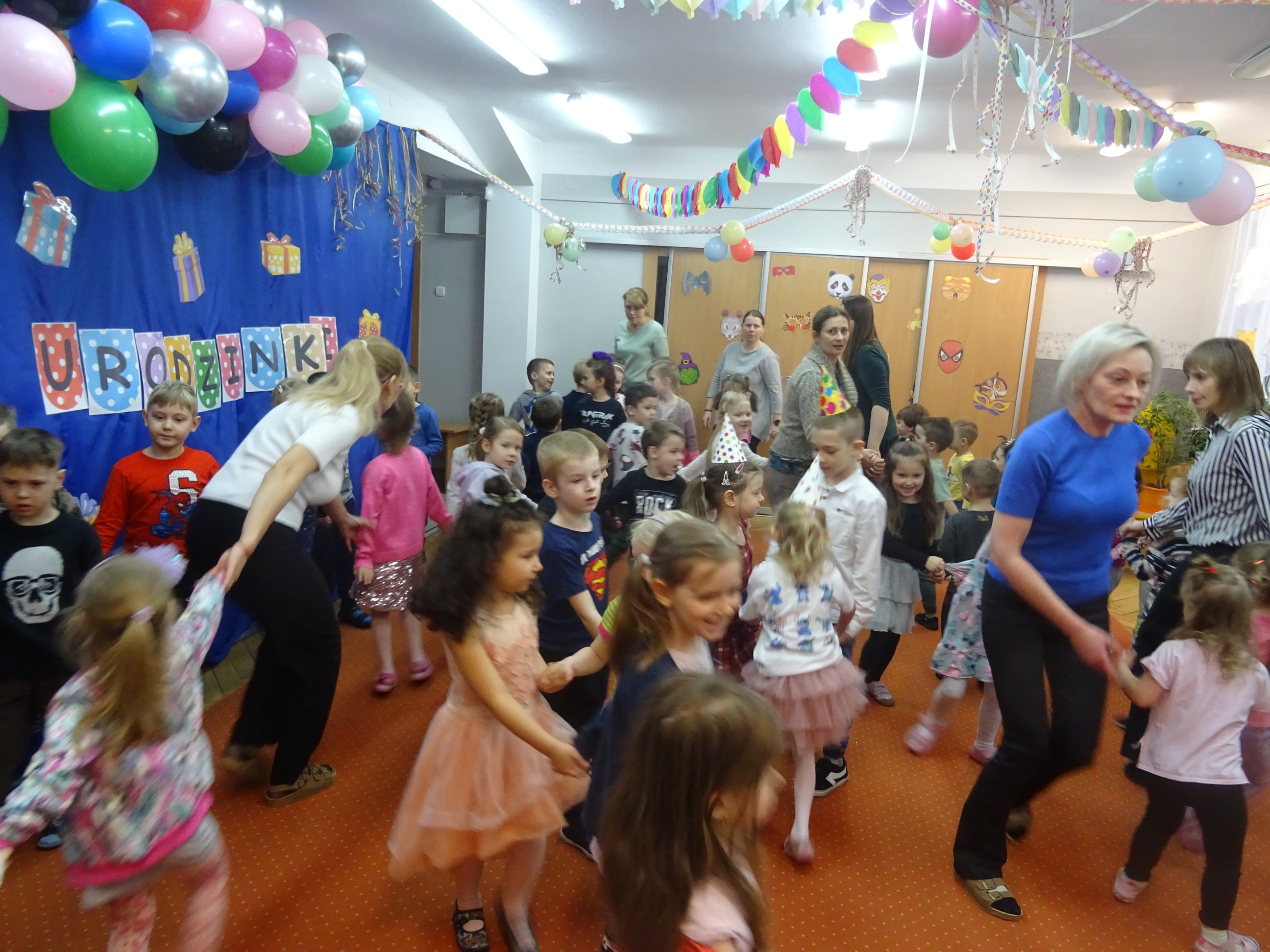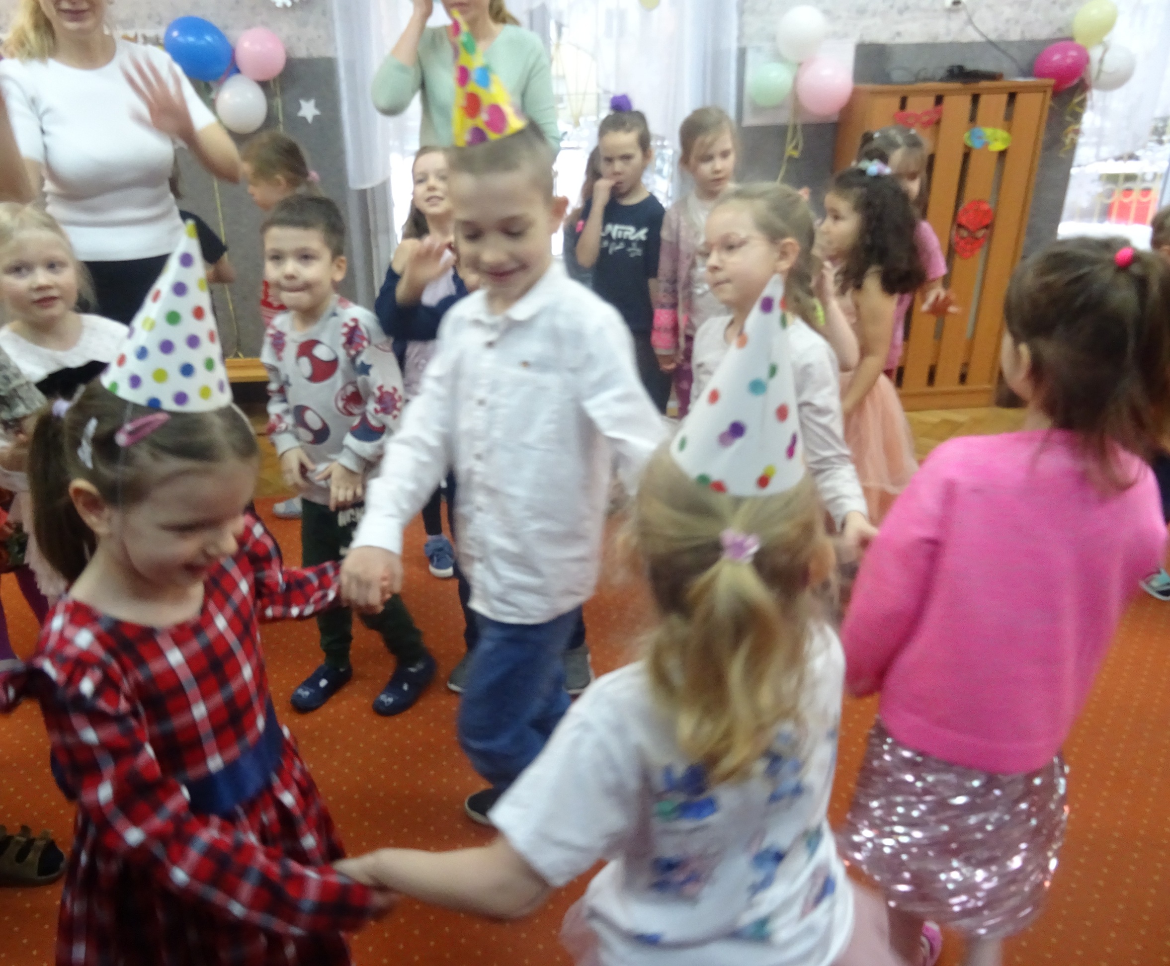 29 stycznia odbyła się w naszym Przedszkolu kolejna uroczystość – Dzień Urodzinkowy dzieci urodzonych w miesiącu styczniu! Z tej okazji pani Wicedyrektor złożyła życzenia zdrowia, uśmiechu, wspaniałych przyjaciół i udanej zabawy dla wszystkich Solenizantów! Następnie dzieci ze wszystkich grup wiekowych wzięły udział w konkursach, zabawach i tańcach na holu przedszkolnym. Przy dźwiękach wesołej, uwielbianej przez dzieci muzyce przedszkolaki prezentowały swoje zdolności taneczne.