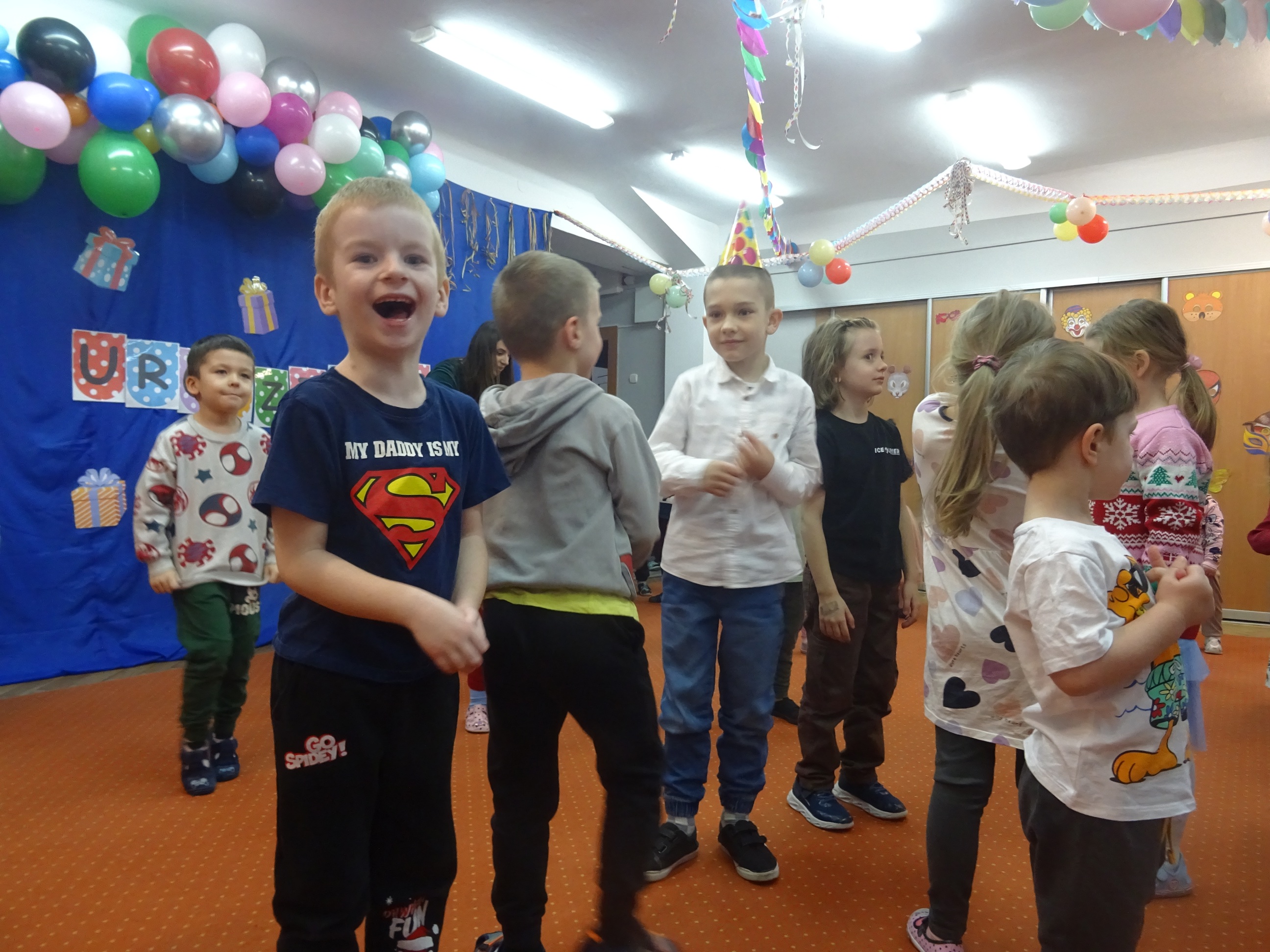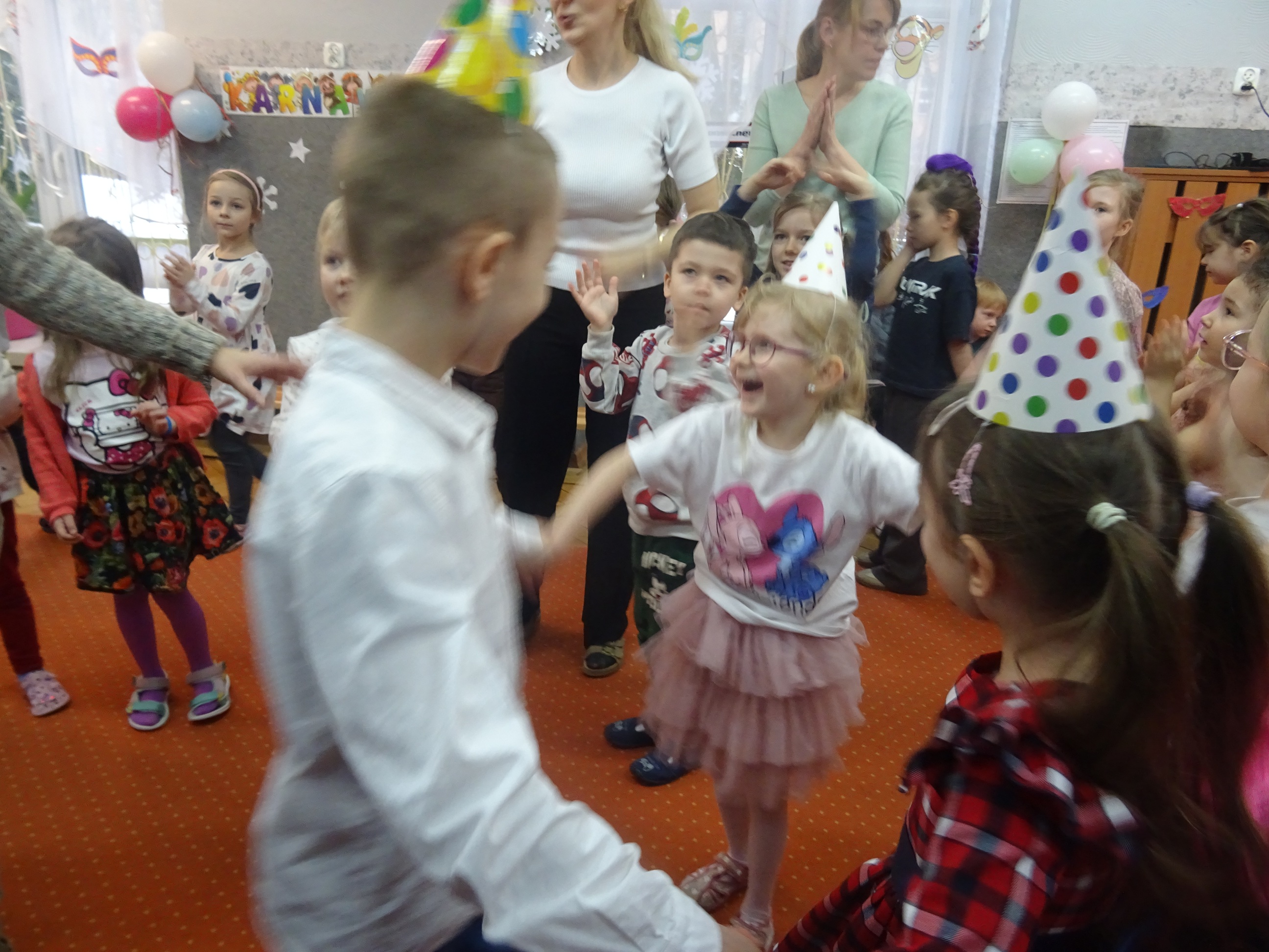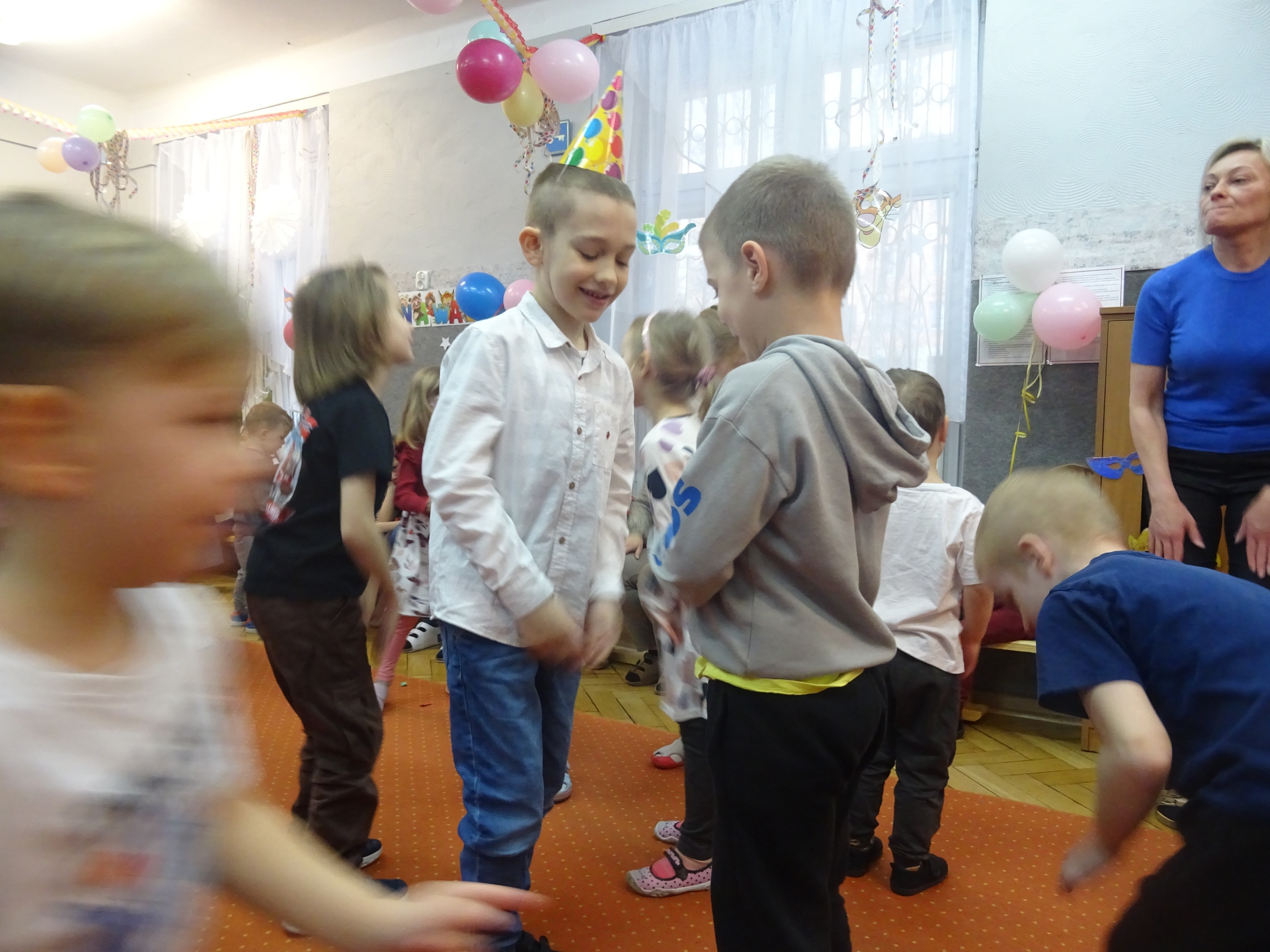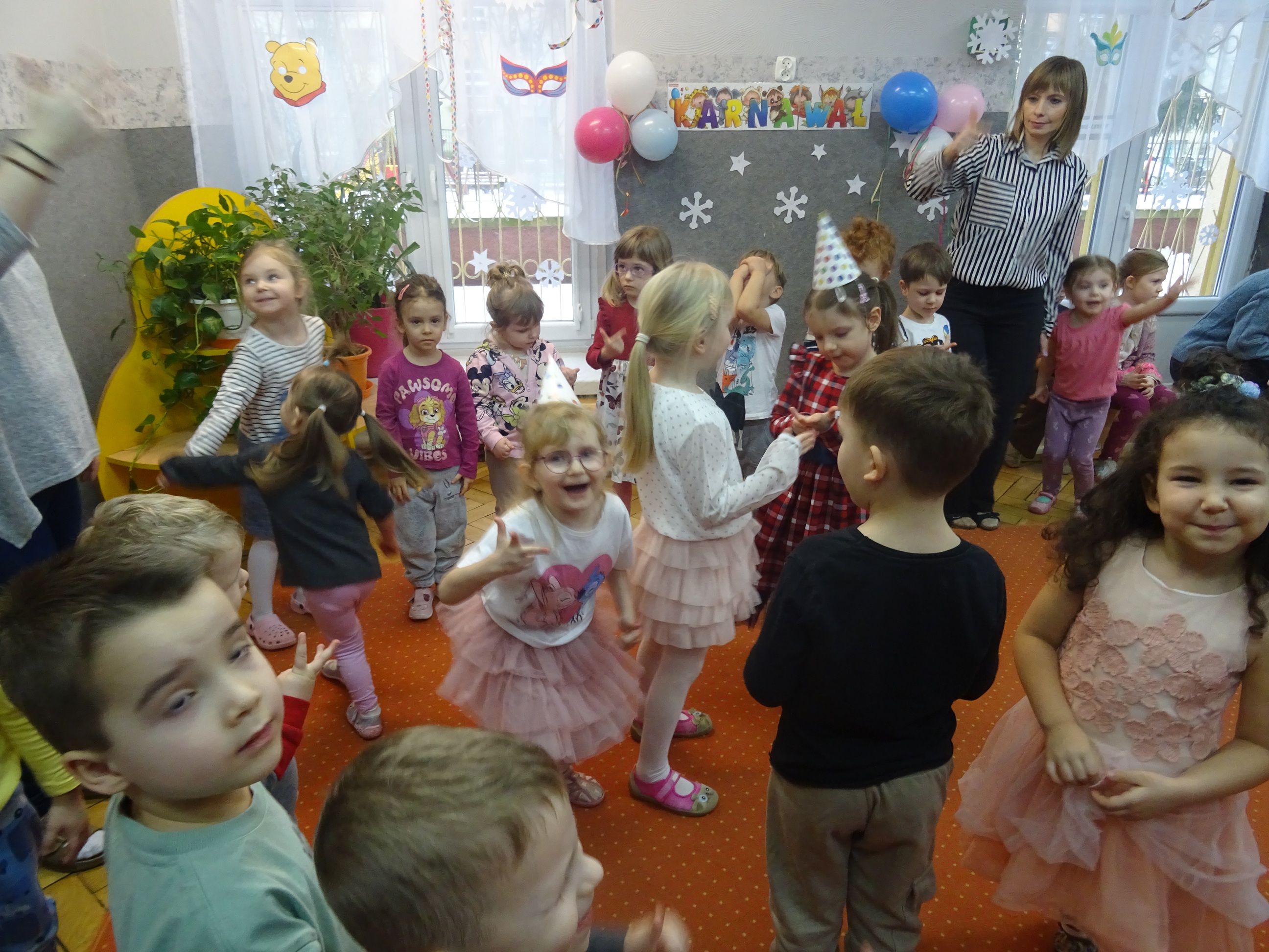 29 stycznia odbyła się w naszym Przedszkolu kolejna uroczystość – Dzień Urodzinkowy dzieci urodzonych w miesiącu styczniu! Z tej okazji pani Wicedyrektor złożyła życzenia zdrowia, uśmiechu, wspaniałych przyjaciół i udanej zabawy dla wszystkich Solenizantów! Następnie dzieci ze wszystkich grup wiekowych wzięły udział w konkursach, zabawach i tańcach na holu przedszkolnym. Przy dźwiękach wesołej, uwielbianej przez dzieci muzyce przedszkolaki prezentowały swoje zdolności taneczne.