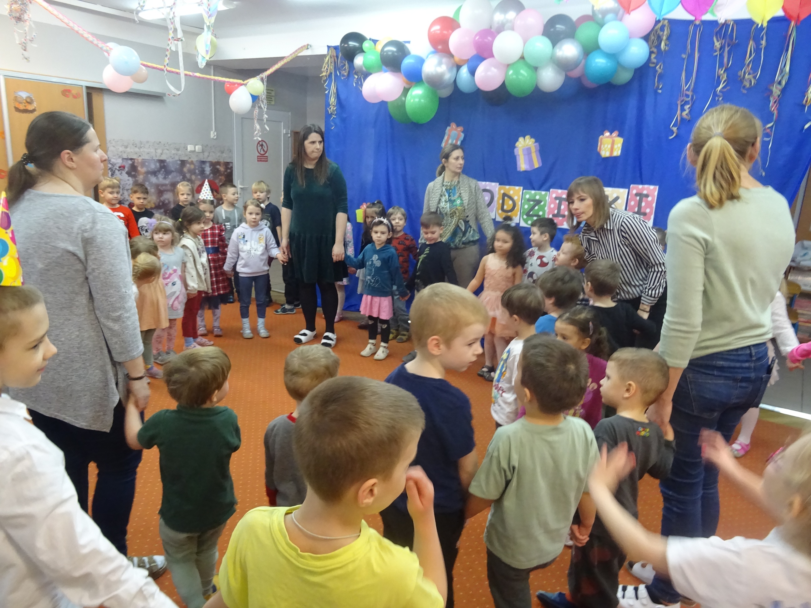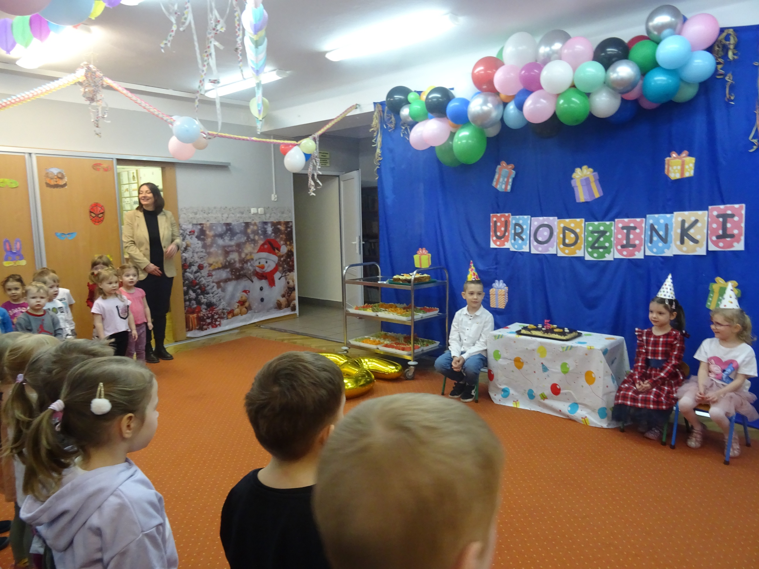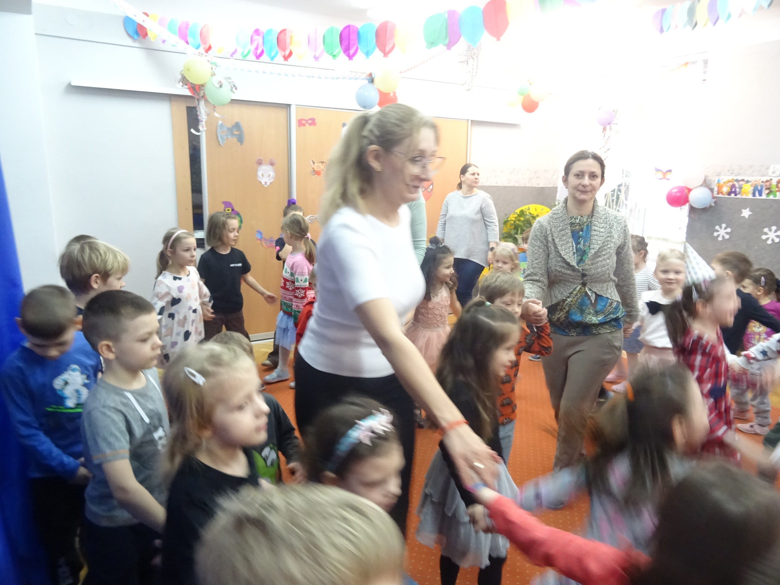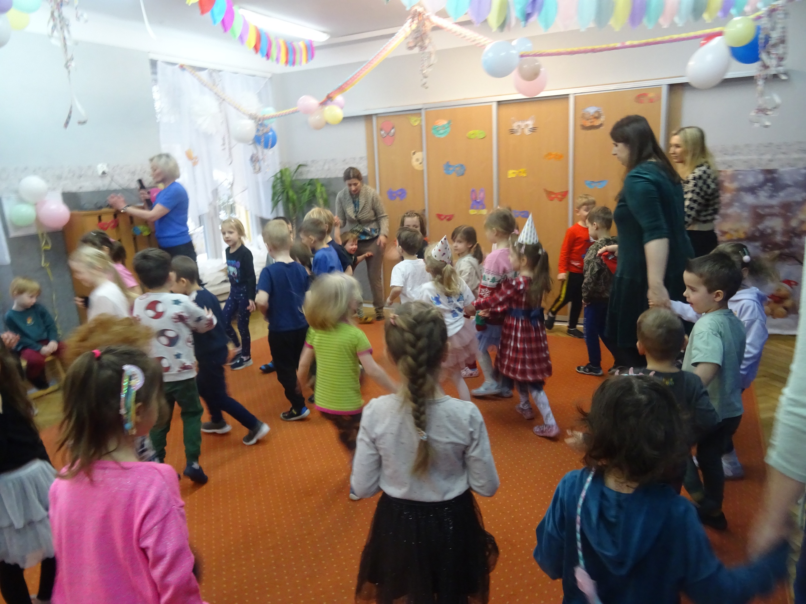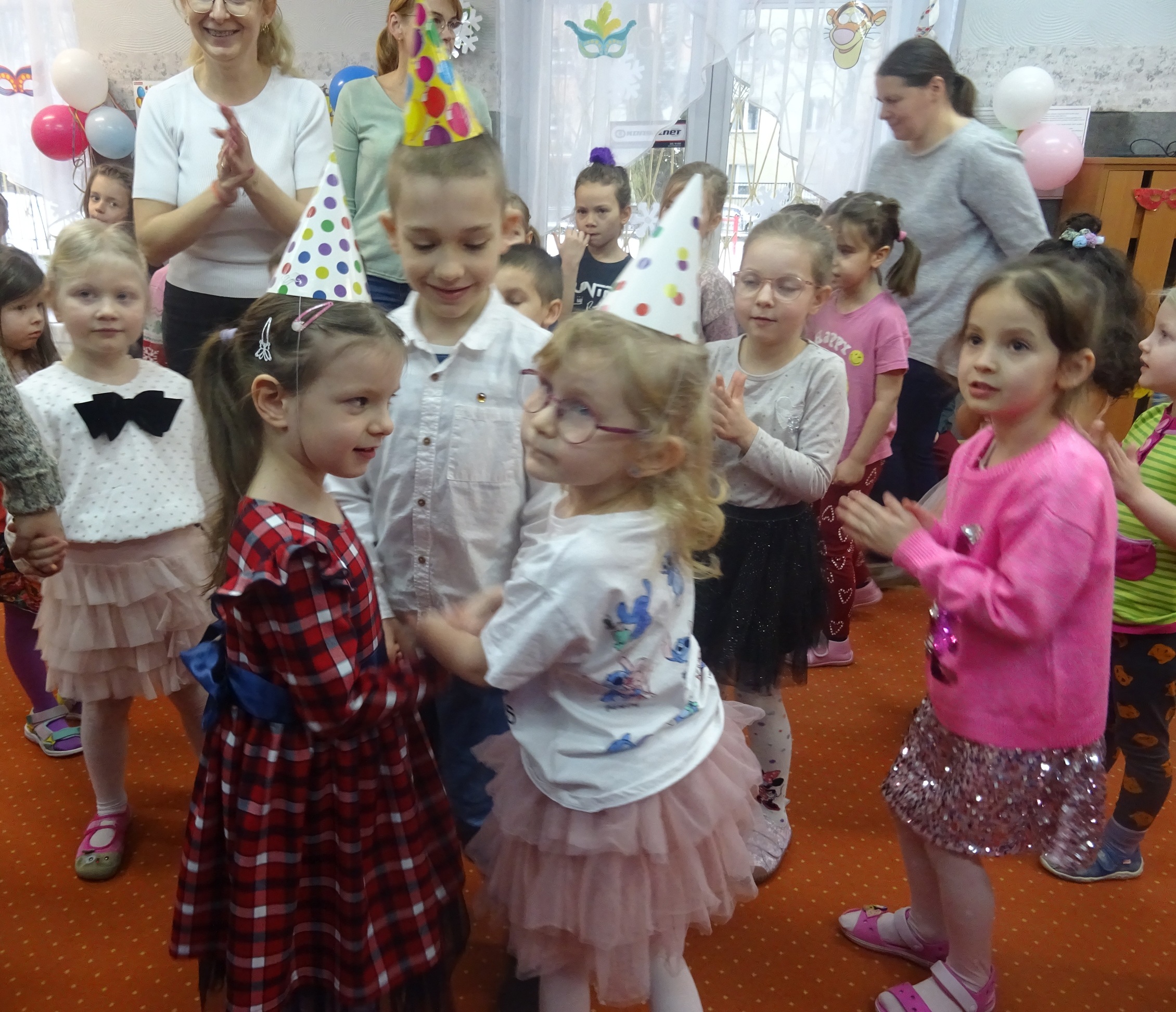 29 stycznia odbyła się w naszym Przedszkolu kolejna uroczystość – Dzień Urodzinkowy dzieci urodzonych w miesiącu styczniu! Z tej okazji pani Wicedyrektor złożyła życzenia zdrowia, uśmiechu, wspaniałych przyjaciół i udanej zabawy dla wszystkich Solenizantów! Następnie dzieci ze wszystkich grup wiekowych wzięły udział w konkursach, zabawach i tańcach na holu przedszkolnym. Przy dźwiękach wesołej, uwielbianej przez dzieci muzyce przedszkolaki prezentowały swoje zdolności taneczne.