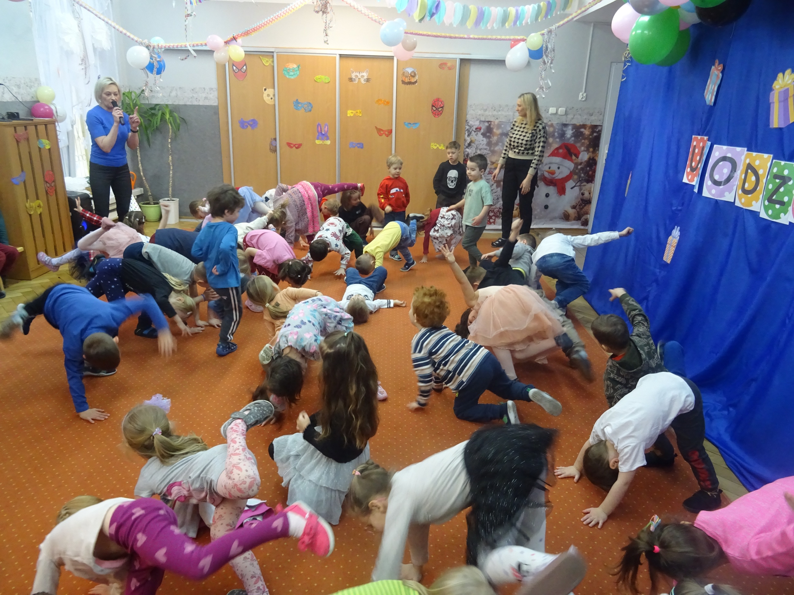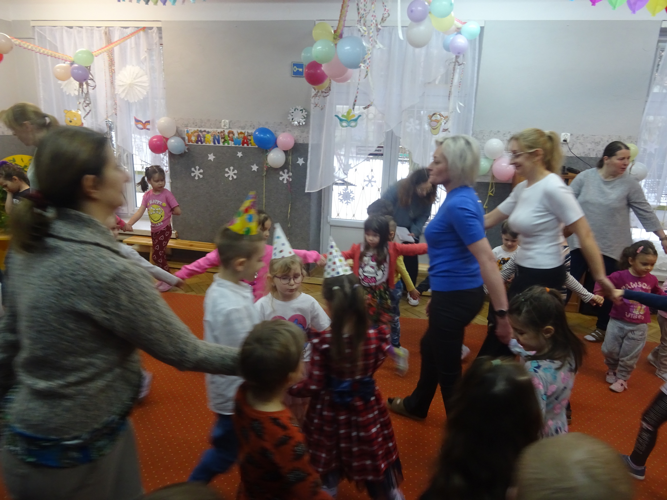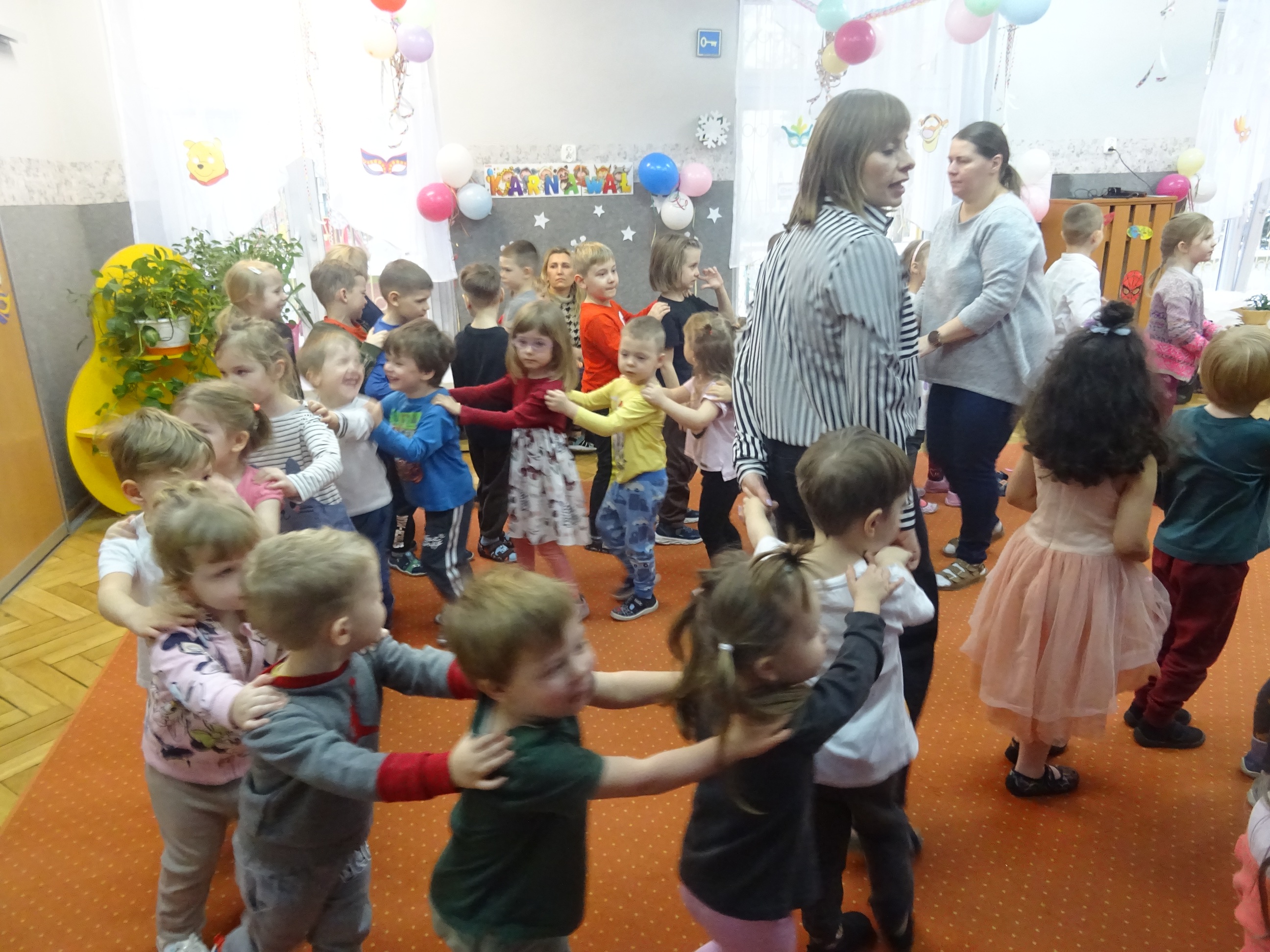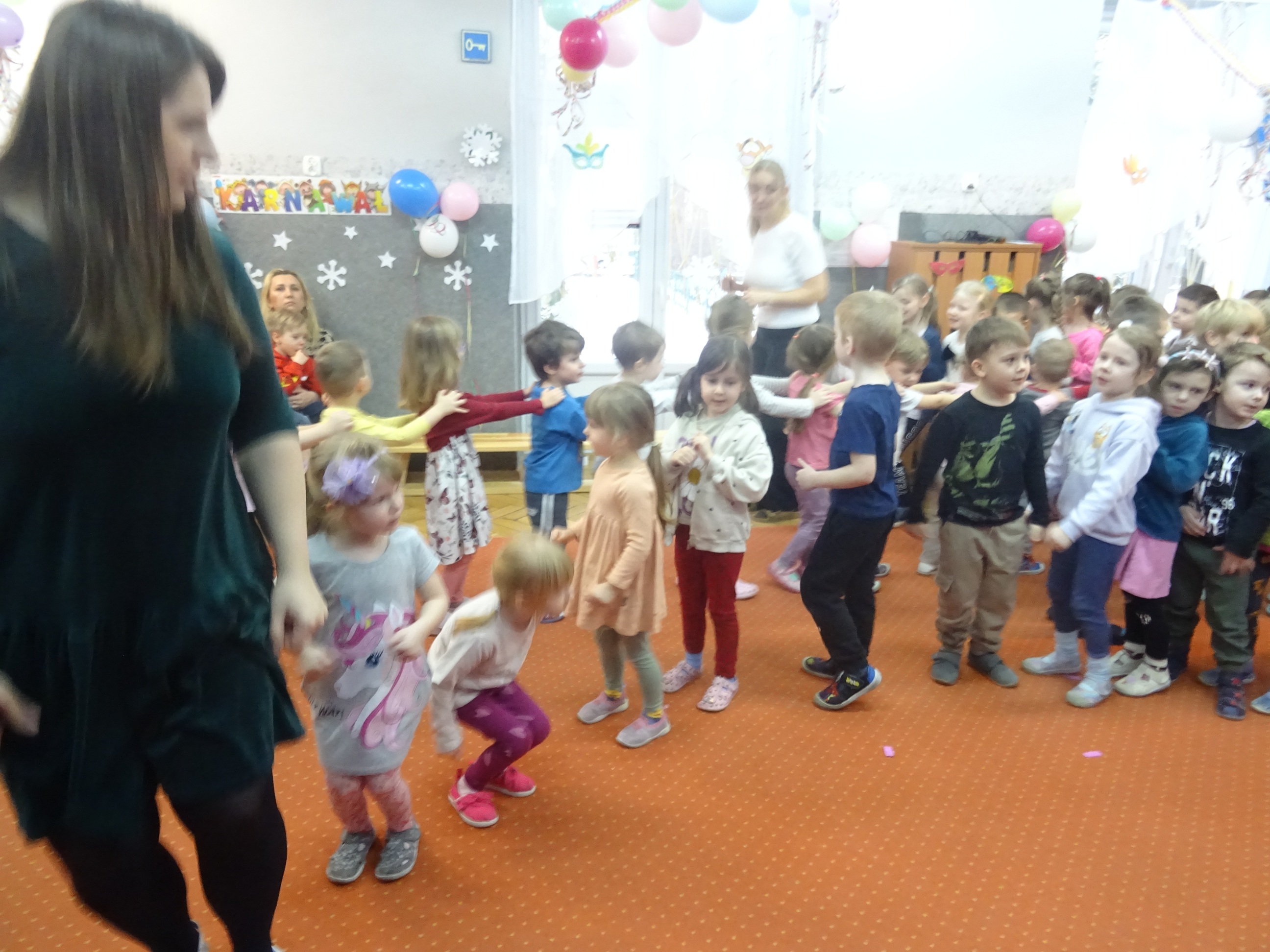 29 stycznia odbyła się w naszym Przedszkolu kolejna uroczystość – Dzień Urodzinkowy dzieci urodzonych w miesiącu styczniu! Z tej okazji pani Wicedyrektor złożyła życzenia zdrowia, uśmiechu, wspaniałych przyjaciół i udanej zabawy dla wszystkich Solenizantów! Następnie dzieci ze wszystkich grup wiekowych wzięły udział w konkursach, zabawach i tańcach na holu przedszkolnym. Przy dźwiękach wesołej, uwielbianej przez dzieci muzyce przedszkolaki prezentowały swoje zdolności taneczne.