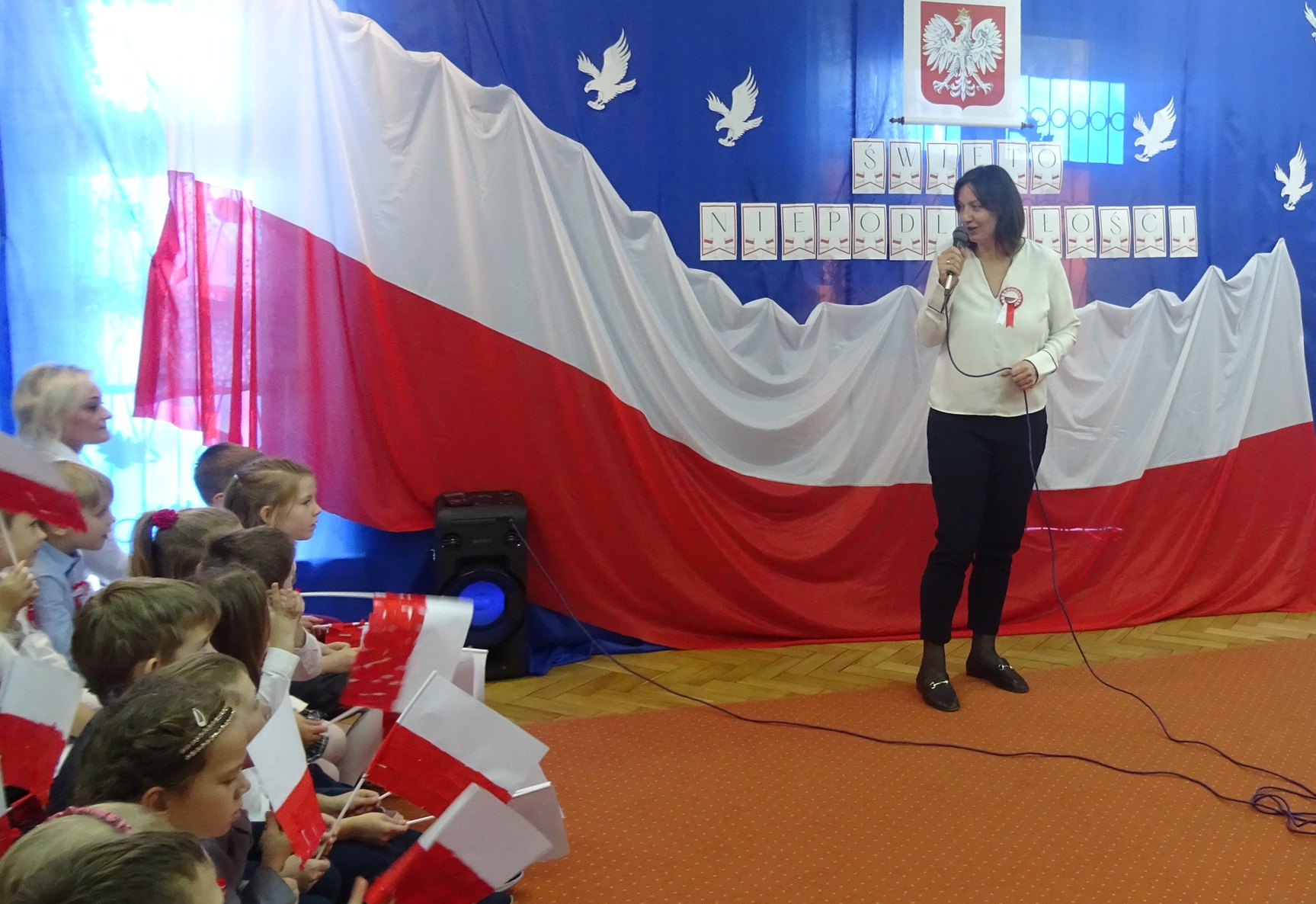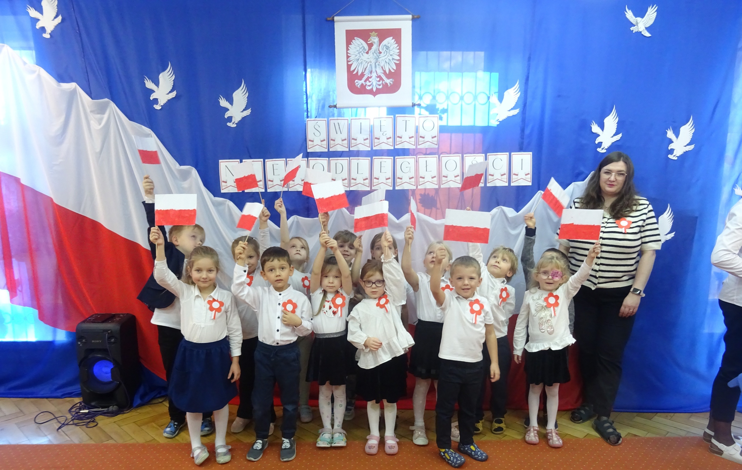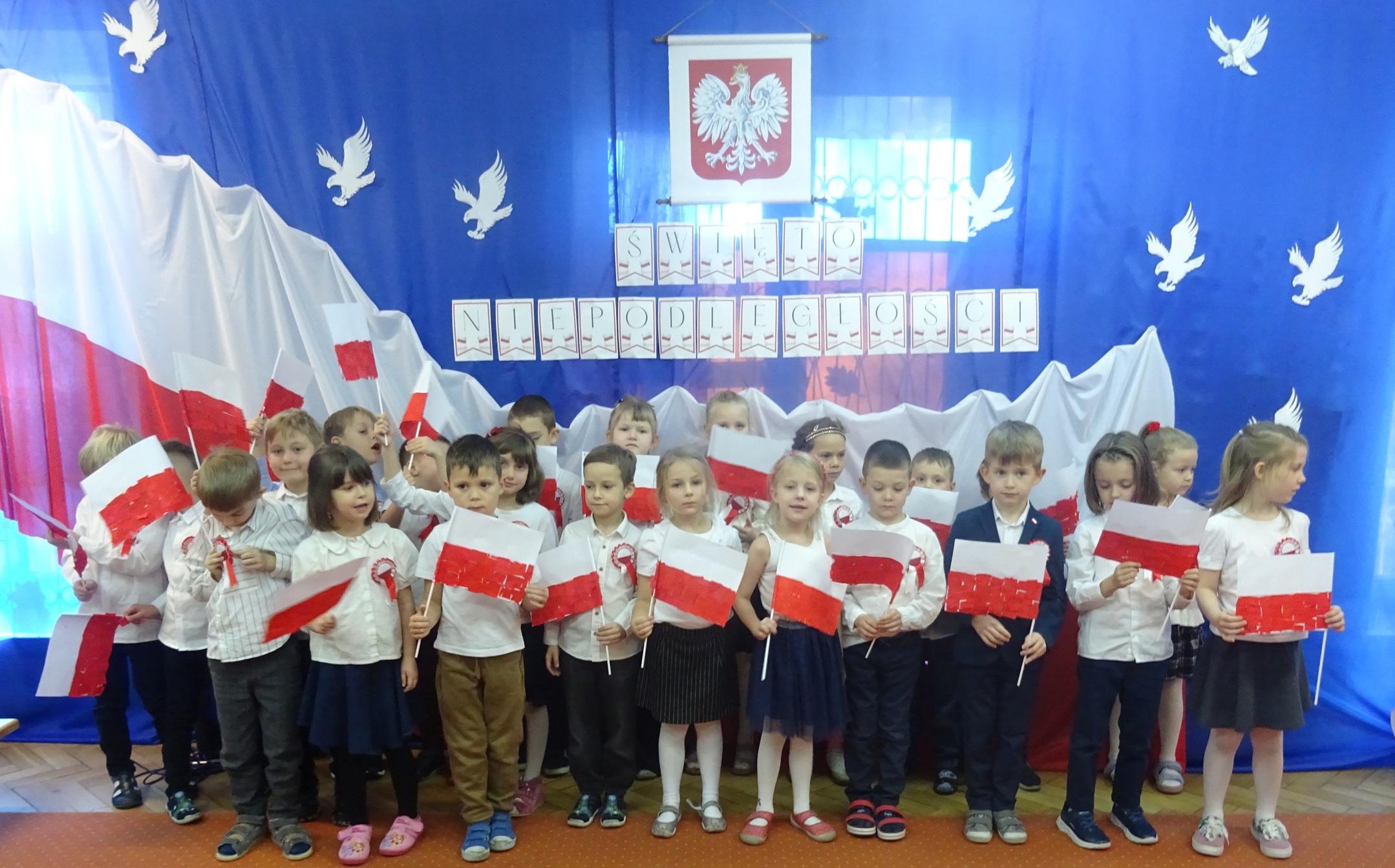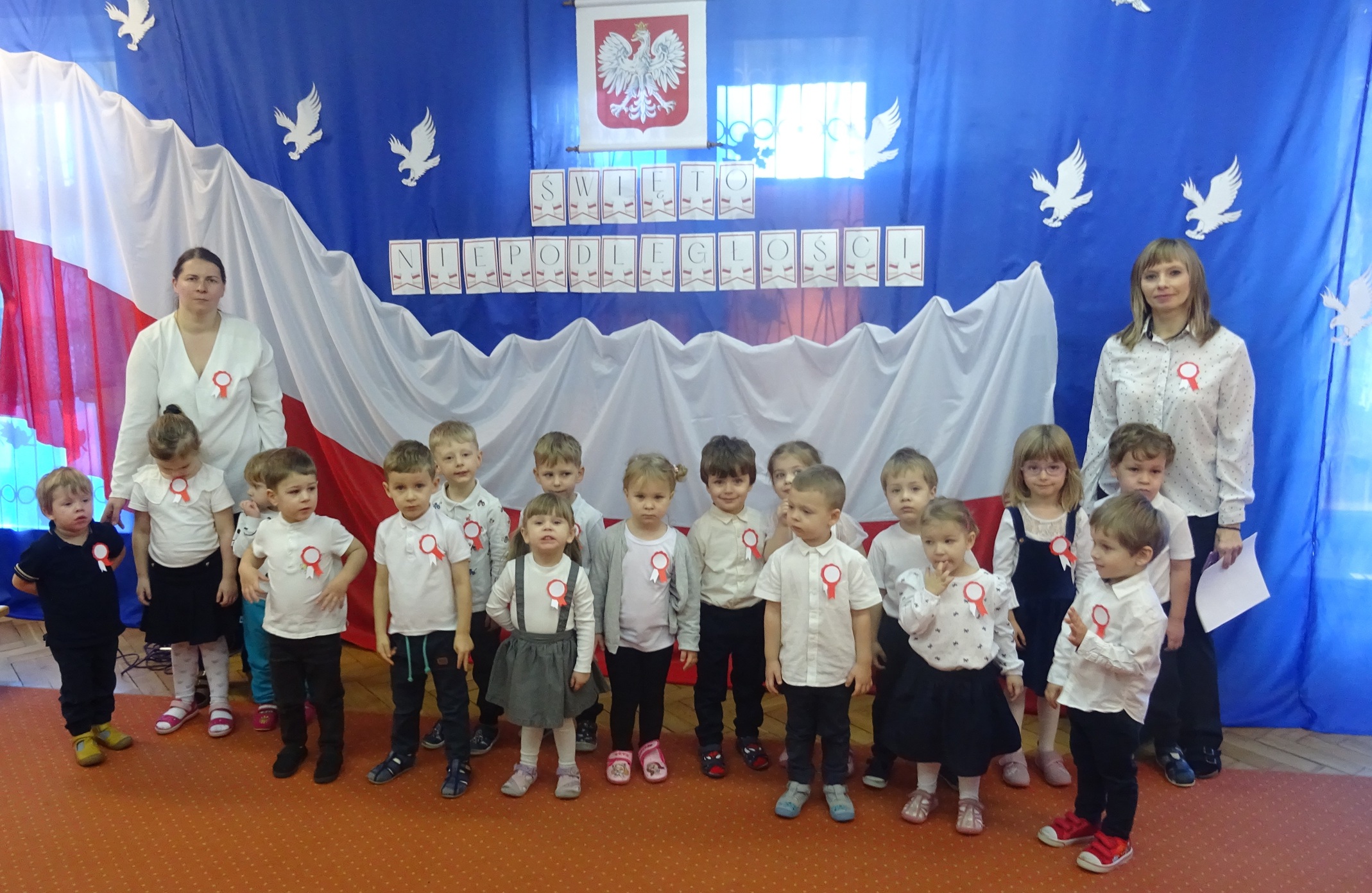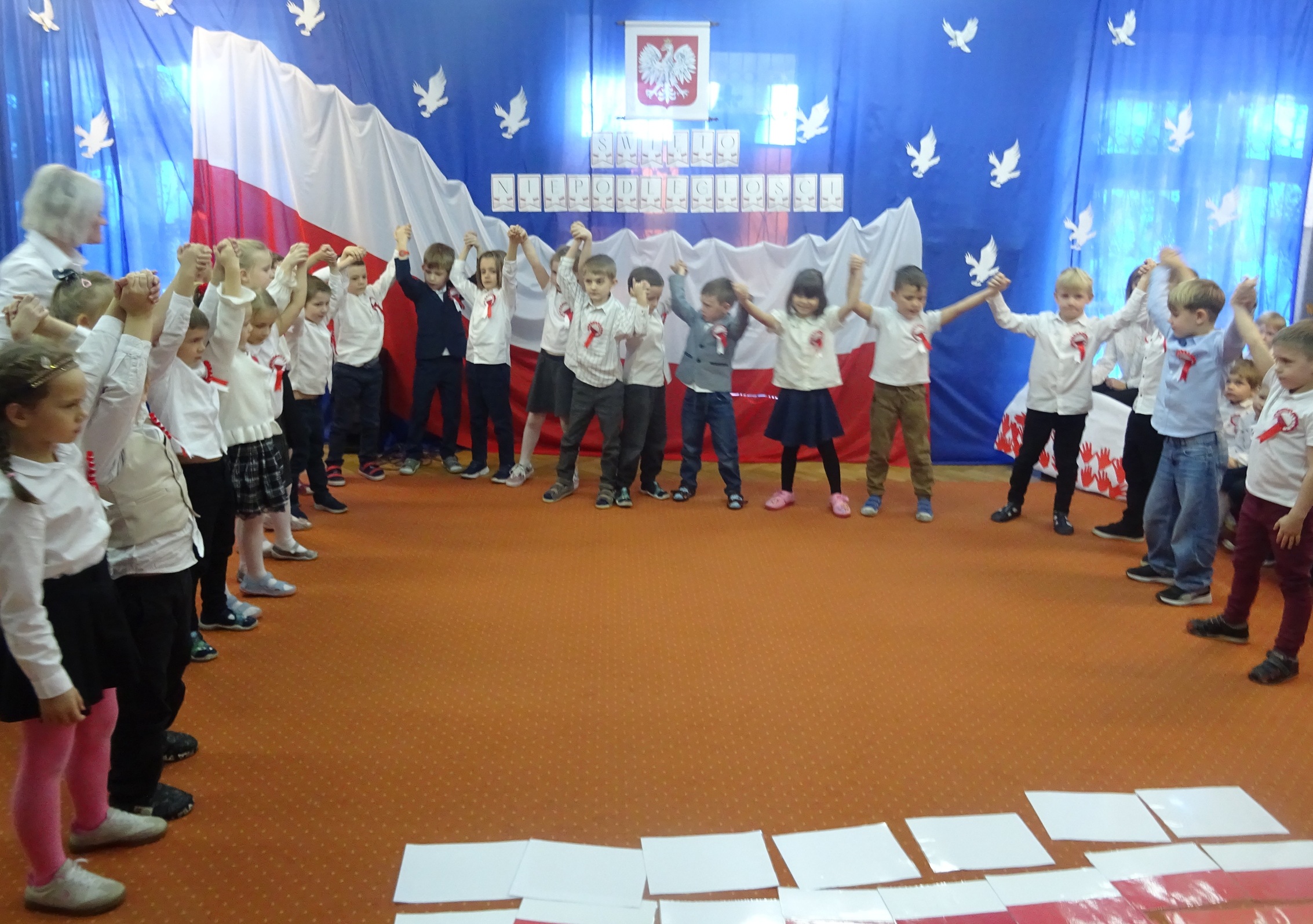 O godz. 11.00 pracownicy przedszkola oraz dzieci odśpiewały Hymn Polski pt. „Mazurek Dąbrowskiego” pamiętając o odpowiedniej postawie. Przedszkolaki wspólnie wyrecytowali wiersz pt. „Katechizm polskiego dziecka" Władysława Bełzy. Następnie dzieci z młodszych grup wysłuchały piosenki patriotycznej w wykonaniu Juniorów pt. „Biały orzeł” oraz obejrzały układ taneczny do utworu "Od morza, aż do Tatr". W dalszej części apelu grupa Tuptusiów zaprezentowała piosenkę pt. „Polak mały”, Smyki „Polak mały, piosenka na 11 listopada”. Występ zakończyła grupa Żaczków piękną piosenką patriotyczną pt. „Piosenka na święto niepodległości”.