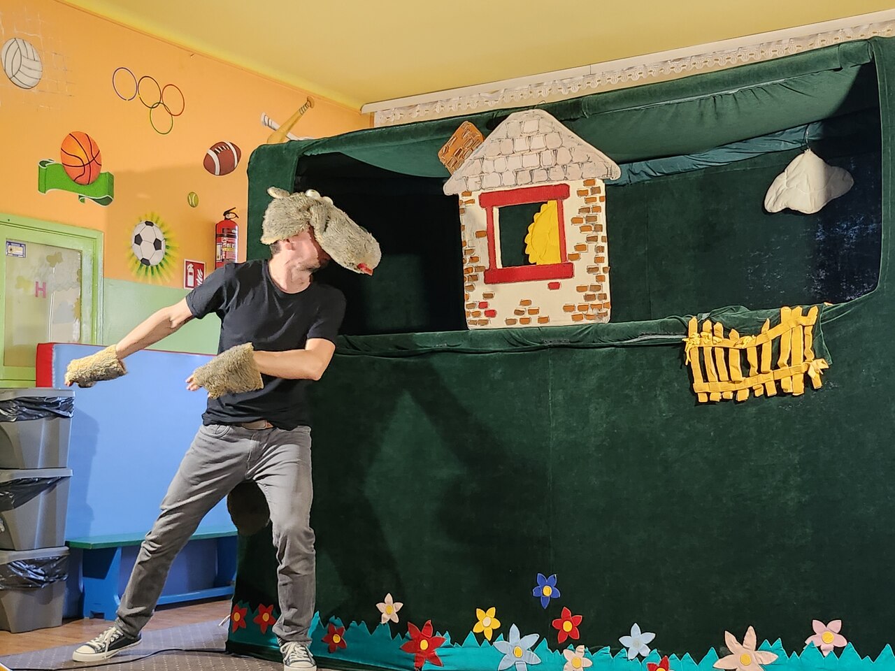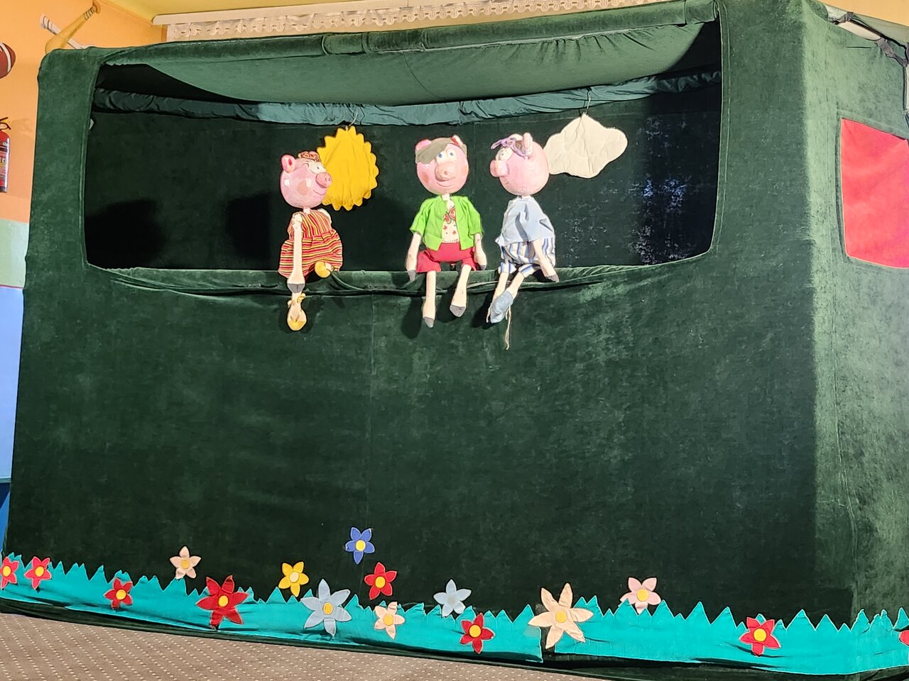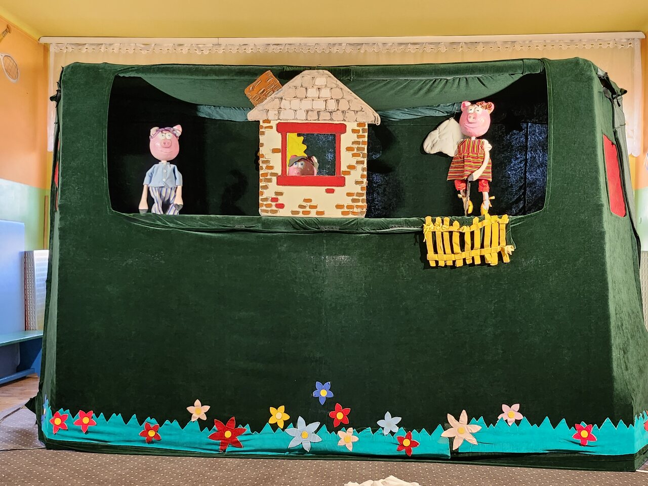 Tym razem dzieci miały okazję obejrzeć spektakl pt. „Trzy świnki”. Bajka opowiadała o przygodach rodzeństwa, które bardzo lubiło śpiewać. Po wielu wojażach i cennych uwagach sroki osiągnęło swój cel- stali się prawdziwymi śpiewakami. Musieli jednak jeszcze obronić się przed złym wilkiem- niestety tylko jedna ze świnek wybudowała solidny dom, który ostatecznie obronił całe rodzeństwo. Świnki nauczyły się, że ciężka praca i wysiłek popłaca.