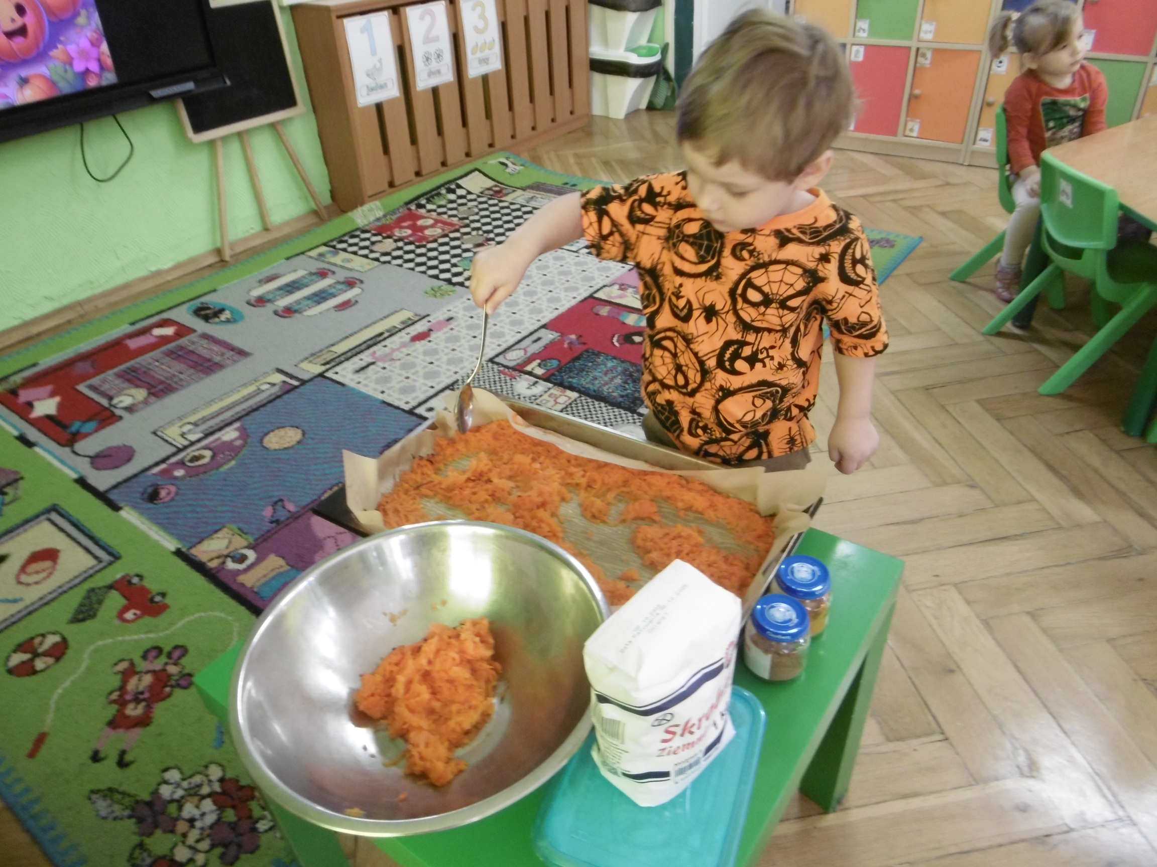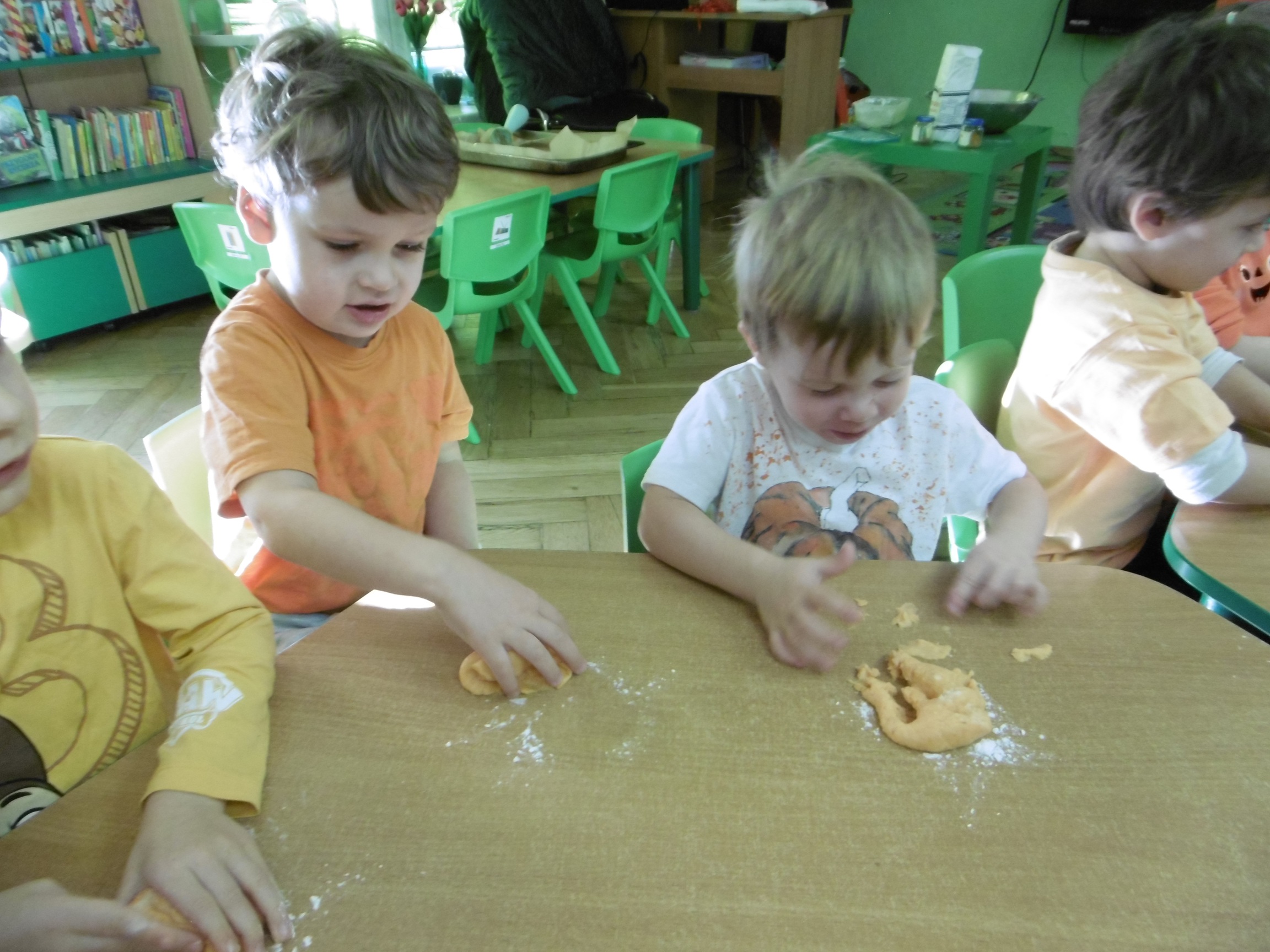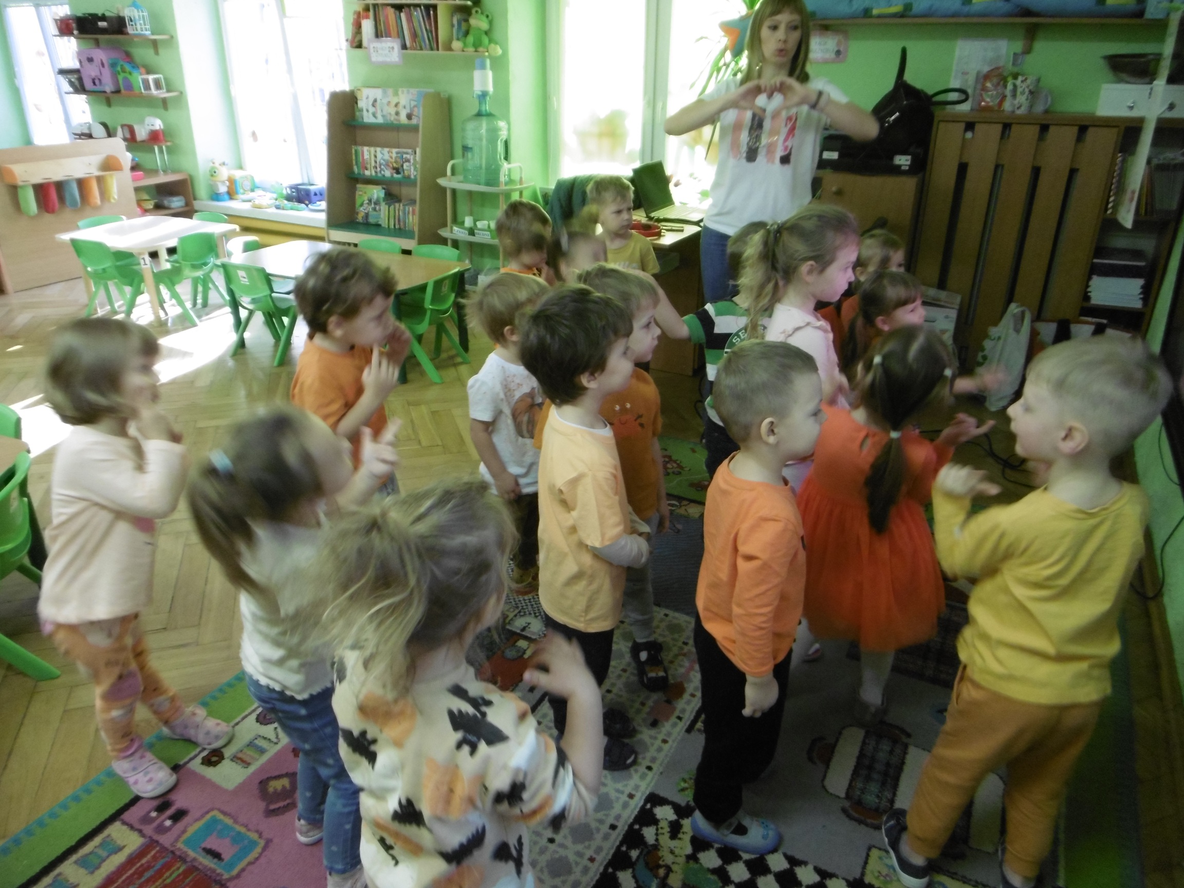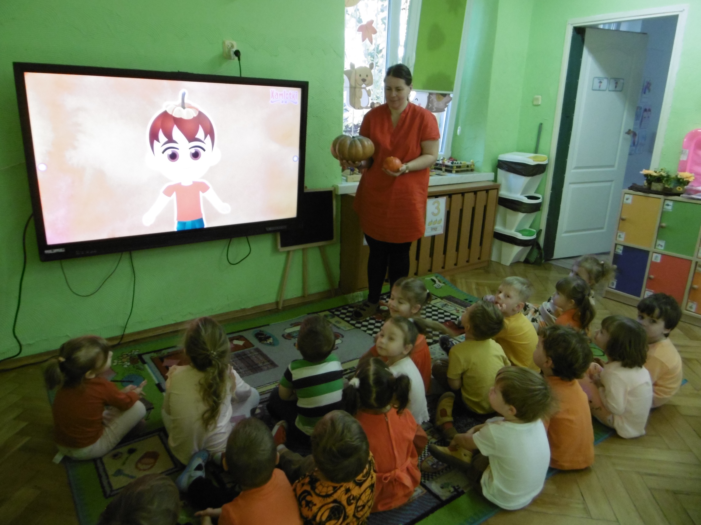 Podczas Dnia Dyni, Tuptusie zapoznały się z różnymi rodzajami dyń, wskazując, które z nich są małe, a które duże. Z pomocą nauczycielki, dzieci nazywały ich kolory oraz kształty. Ponadto ćwiczyły pamięć podczas wykonywania zadań na tablicy multimedialnej. Dowiedziały się także, jakie ciekawe dania można przygotować z dyni – np. zupa krem z dyni, dyniowy sok czy ciasto dyniowe, które potem wspólnie przeliczały. Następnie tańczyły do piosenki ilustrując ruchami jej treść. A na koniec przygotowały własną masę plastyczną - dyniolinę, z której powstawało na naszych stolikach wiele niezwykłych form, tj. kuleczki, wałeczki i placuszki.