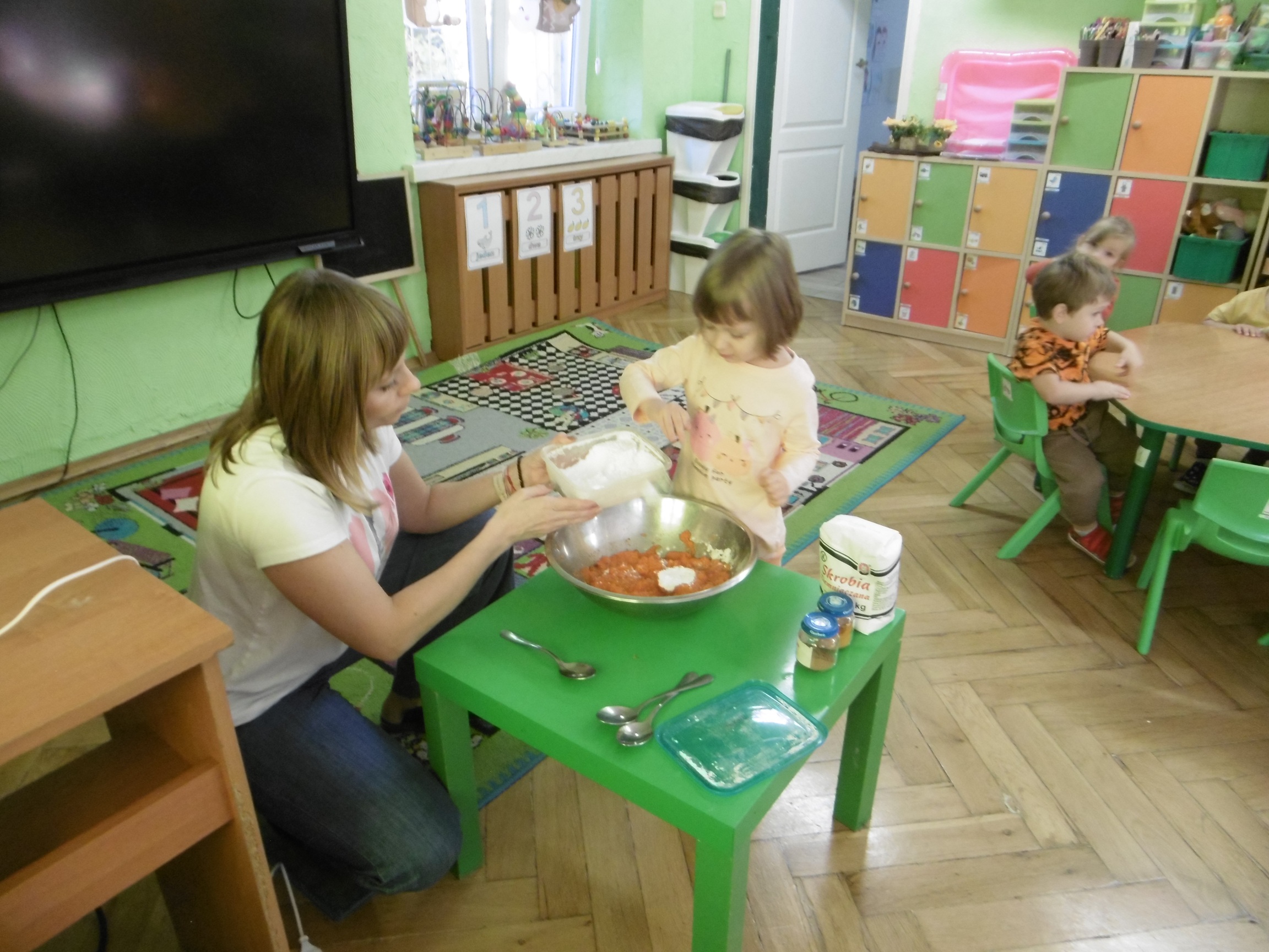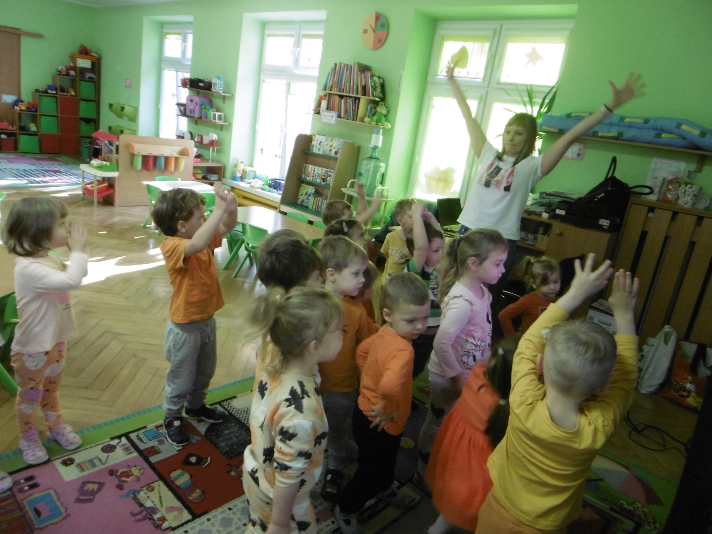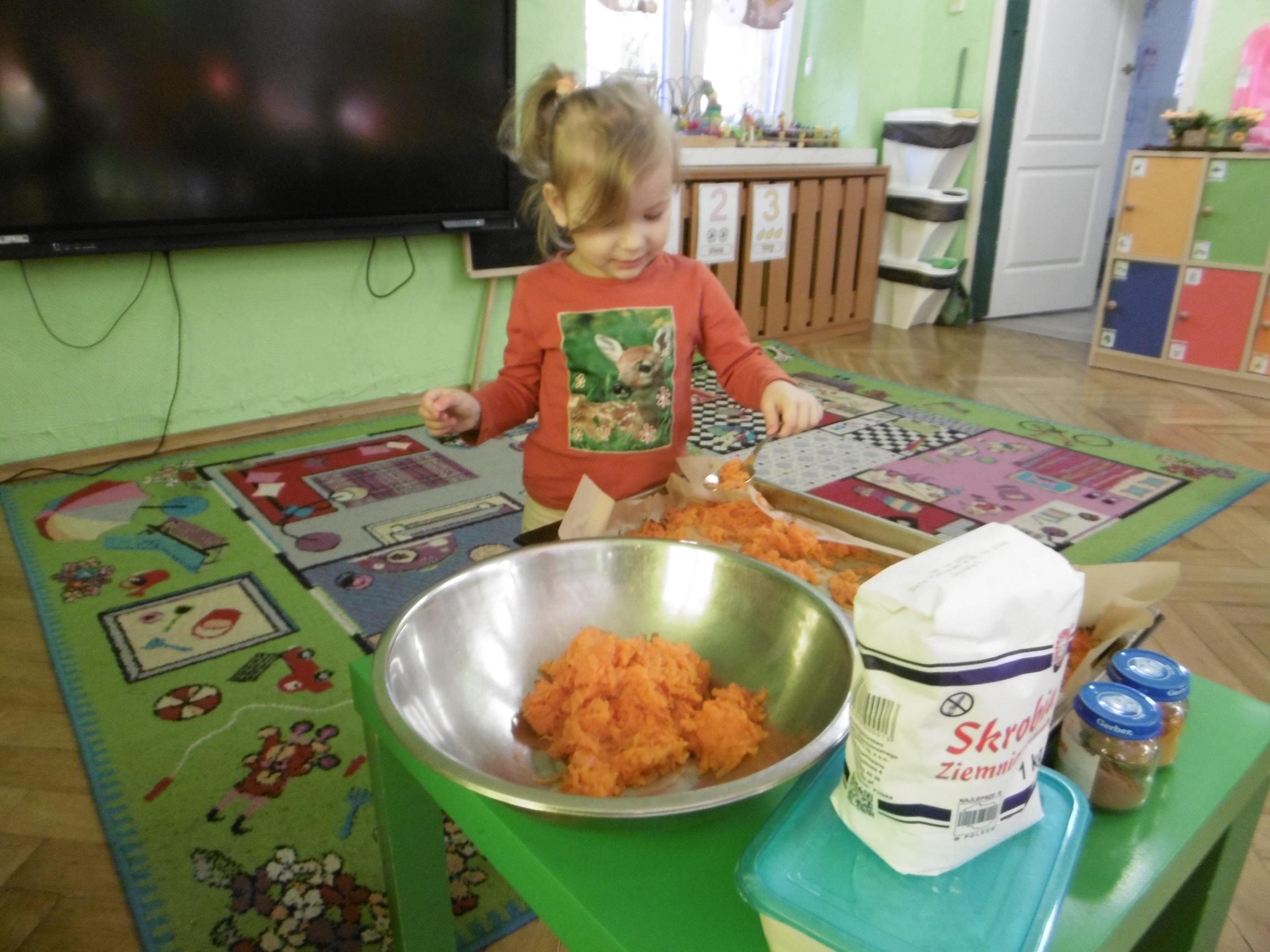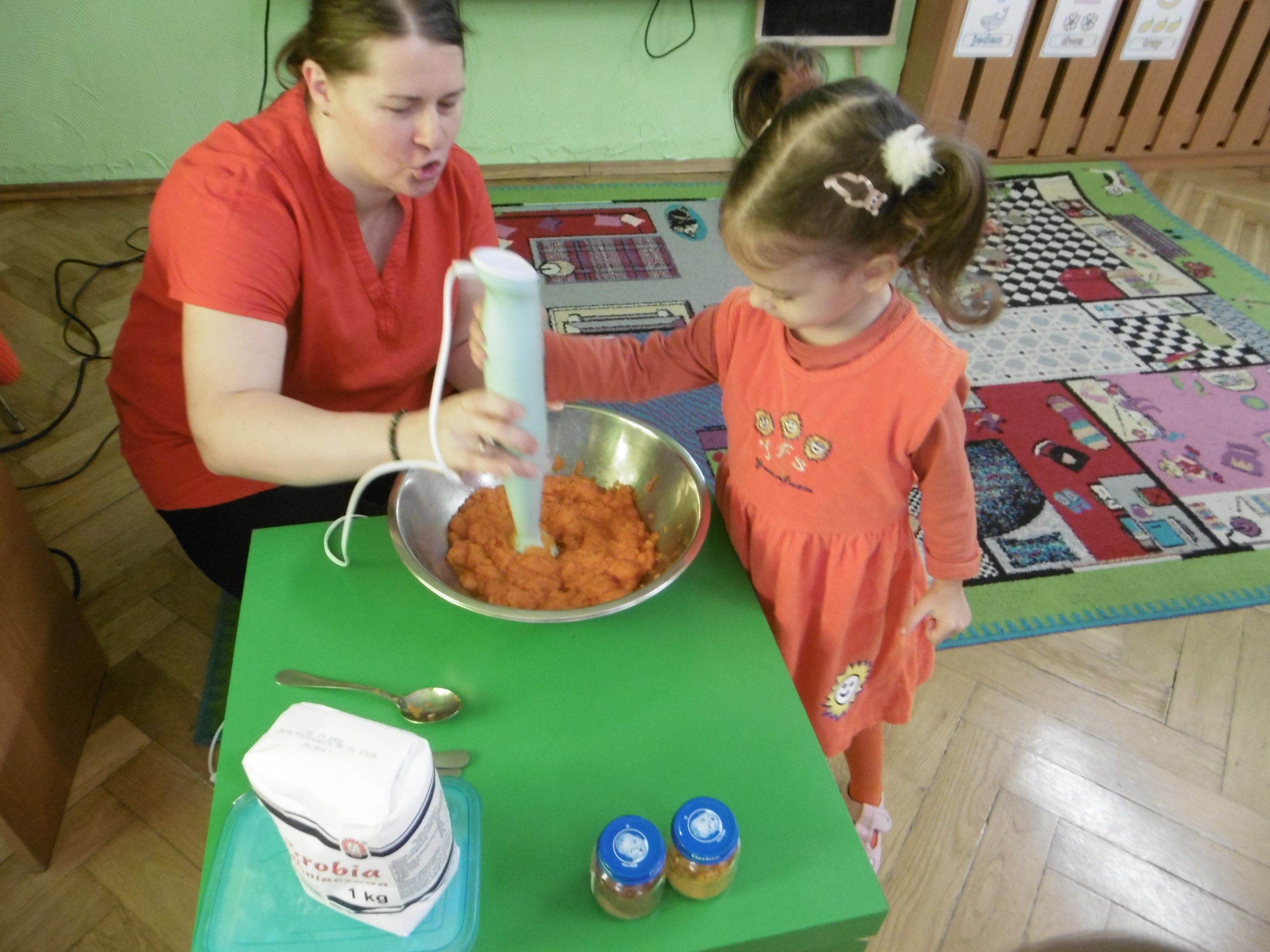 Podczas Dnia Dyni, Tuptusie zapoznały się z różnymi rodzajami dyń, wskazując, które z nich są małe, a które duże. Z pomocą nauczycielki, dzieci nazywały ich kolory oraz kształty. Ponadto ćwiczyły pamięć podczas wykonywania zadań na tablicy multimedialnej. Dowiedziały się także, jakie ciekawe dania można przygotować z dyni – np. zupa krem z dyni, dyniowy sok czy ciasto dyniowe, które potem wspólnie przeliczały. Następnie tańczyły do piosenki ilustrując ruchami jej treść. A na koniec przygotowały własną masę plastyczną - dyniolinę, z której powstawało na naszych stolikach wiele niezwykłych form, tj. kuleczki, wałeczki i placuszki.