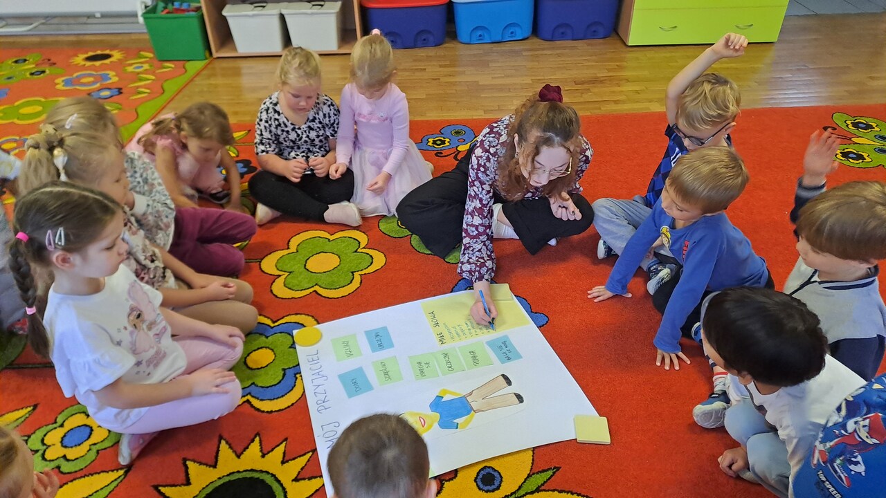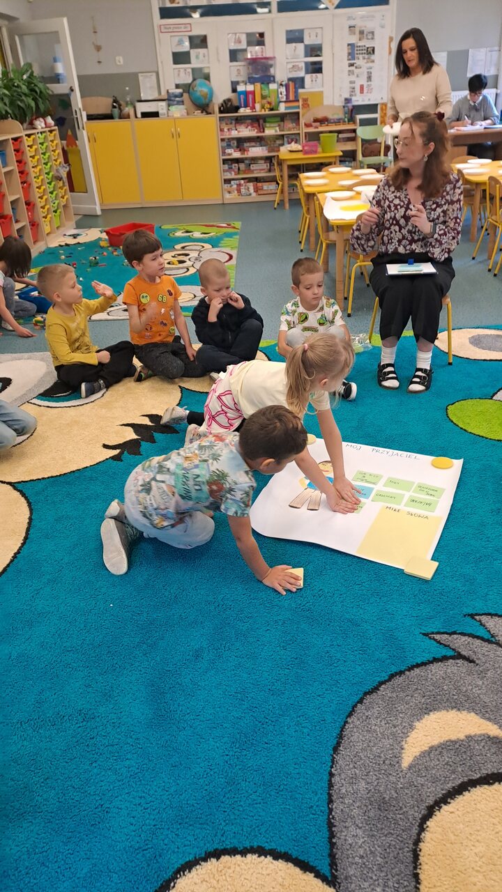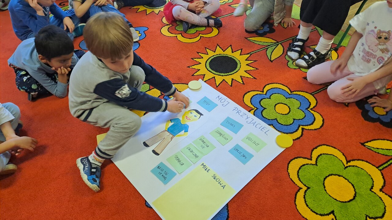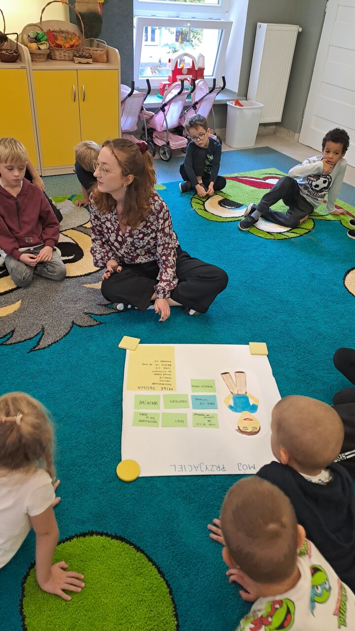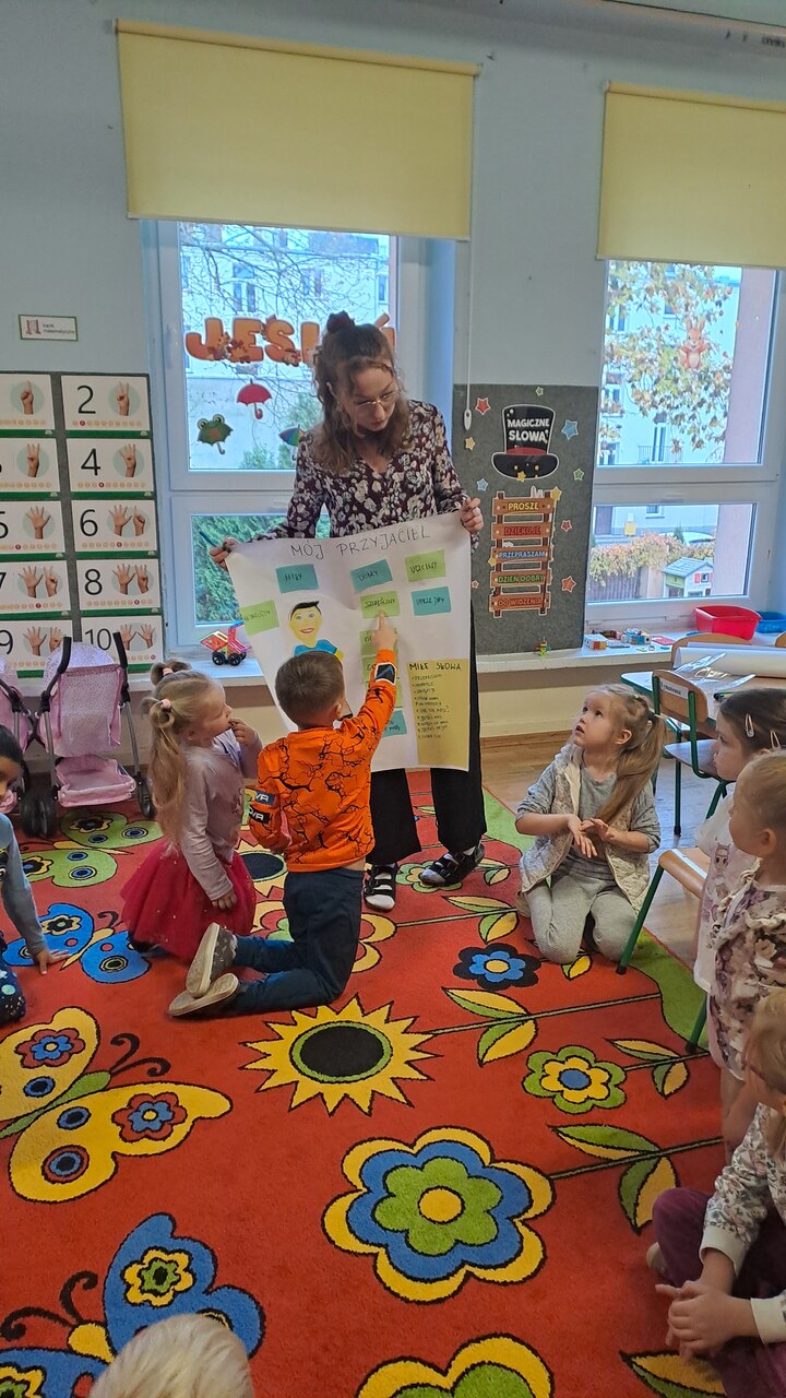 Z okazji Tygodnia Relacji w grupach Juniorów i Żaków w Przedszkolu Miejskim nr 52 odbyły się zajęcia psychoedukacyjne prowadzone przez psychologa Monikę Bochyńską. Tematem przewodnim była przyjaźń, dzieci miały okazję porozmawiać o znaczeniu przyjaźni i o tym, jak dbać o dobre relacje z innymi. Szczególną uwagę poświęciliśmy mocy dobrych słów – dzieci ćwiczyły dawanie komplementów i mówienie miłych rzeczy jako sposobu wzmacniania więzi.