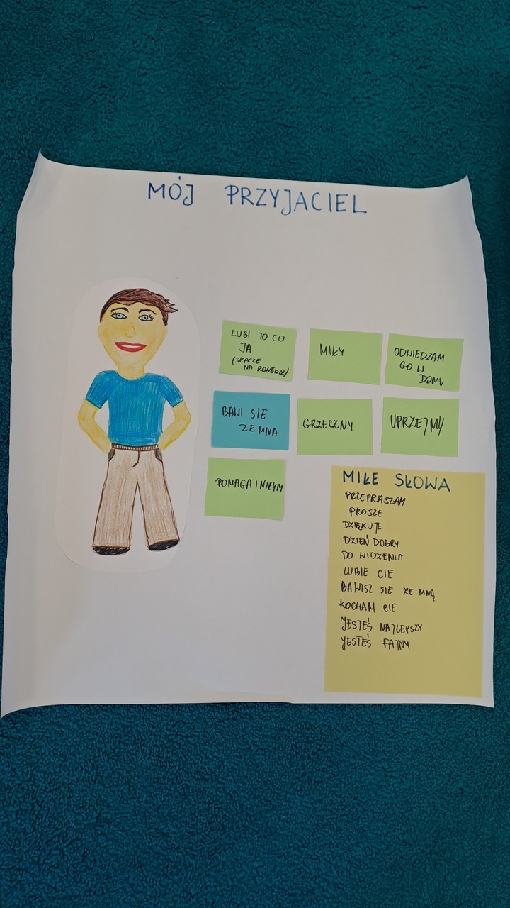 To były zajęcia pełne radości, wzajemnego wsparcia i dobrych emocji, podczas spotkania powstały wspólne plakaty przedstawiające pomysły na wzmacnianie więzi i cechy dobrego przyjaciela – a atmosfera zajęć sprzyjała otwartości, wzajemnemu wsparciu i radości ze wspólnego działania!