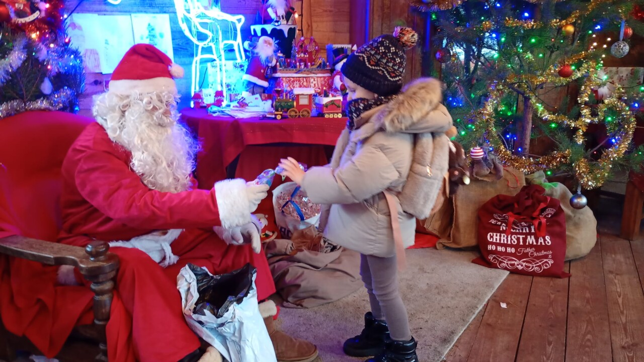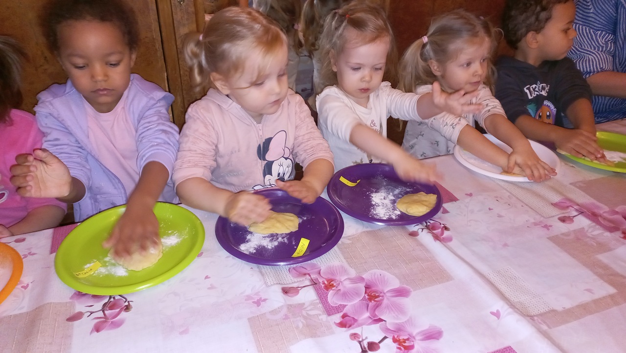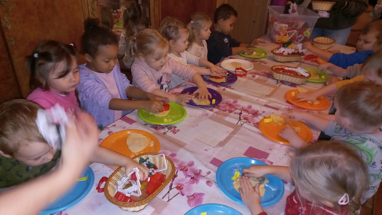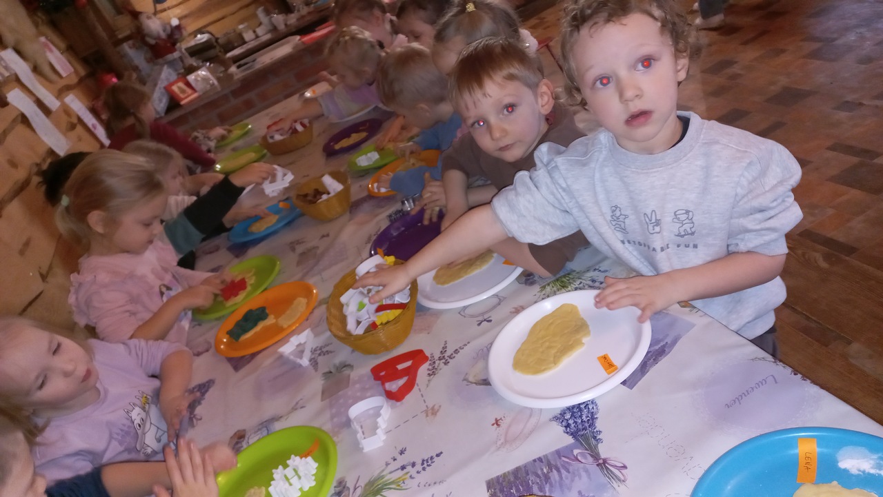 Dzieci miały niezwykłą okazję spędzić czas w Krainie Świętego Mikołaja! Od razu po dotarciu na miejsce zajęły się przygotowaniem ciasta na pyszne pierniczki! Dużo frajdy sprawiło dzieciom ozdabianie wykonanych pierniczków według własnego pomysłu. Następnie przedszkolaki zabrały się za dekorowanie świątecznych bombek- w ruch poszedł brokat, cekiny i piórka! Po skończonej pracy, udaliśmy się z wizytą do mini ZOO- łakome kuce, szalone kózki, uśmiechnięte alpaki, kolorowe kurki- wszystkie te zwierzątka cierpliwie prezentowały się naszym przedszkolakom! Na sam koniec, dzieci pełne werwy i humoru, odwiedziły prawdziwego Świętego Mikołaja!!! Czekał na nie w swojej mikołajowej chatce. Każde dziecko miało możliwość porozmawiania z Mikołajem, a za obietnicę wzorowego zachowania otrzymało mały prezent- niespodziankę! Kończąc naszą wizytę namówiliśmy Mikołaja do wspólnego, świątecznego zdjęcia!!!
