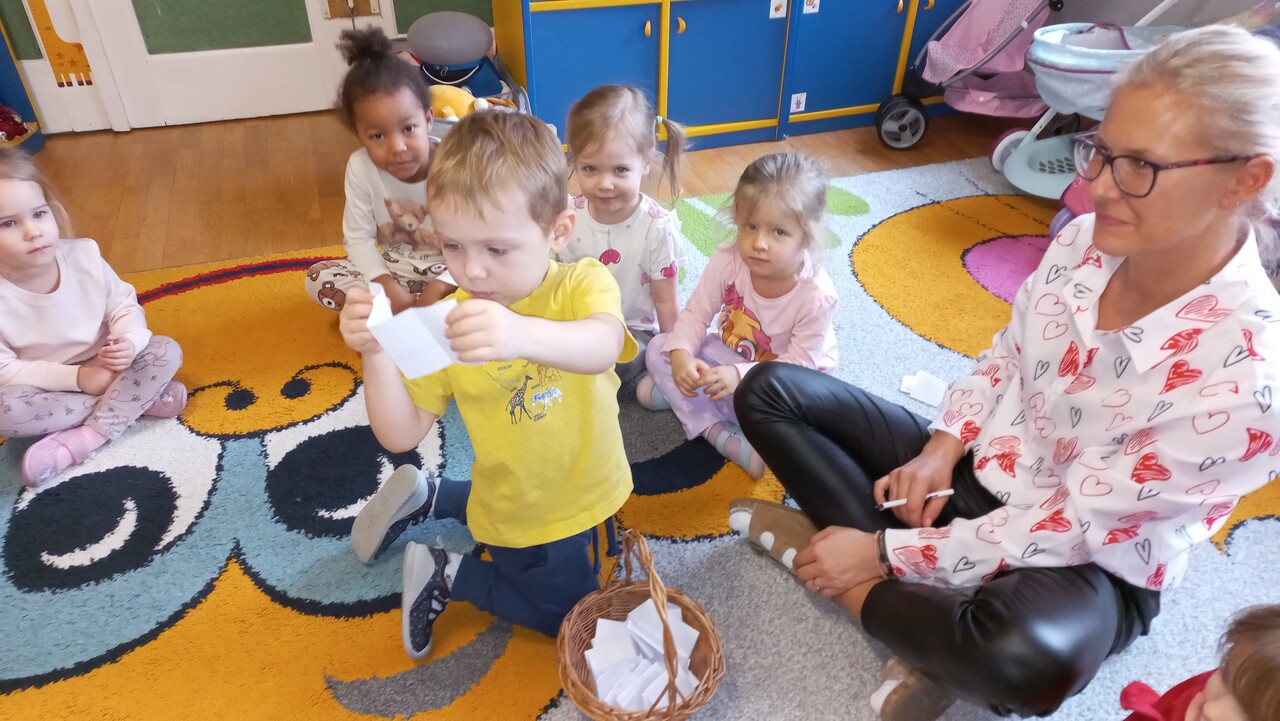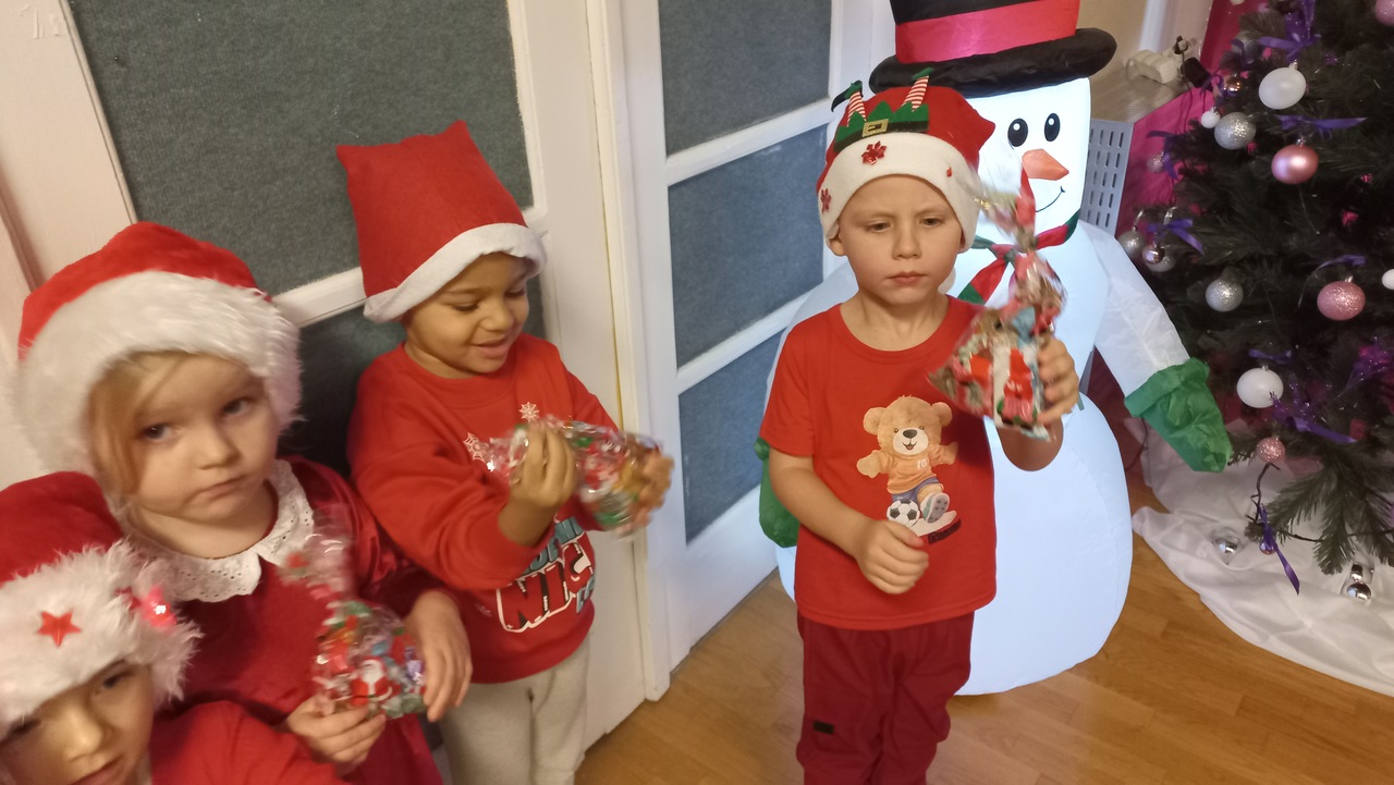 W trakcie mikołajkowego tygodnia odbyło się w grupie Tuptusiów mikołajkowe losowanie- każdy przedszkolak wylosowały koleżankę lub kolegę, dla której przyniósł drobny prezencik. 05.12.2025r. odbyło się rozdanie prezentów, co sprawiło wszystkim dzieciom wiele uśmiechu i radości! Wszystkie prezenty były trafione, a wszystkie dzieci bardzo zadowolone! Jest nam bardzo miło, że rodzice naszych przedszkolaków tak chętnie i z zaangażowaniem włączyli się w przygotowanie niespodzianek!!! Dziękujemy!