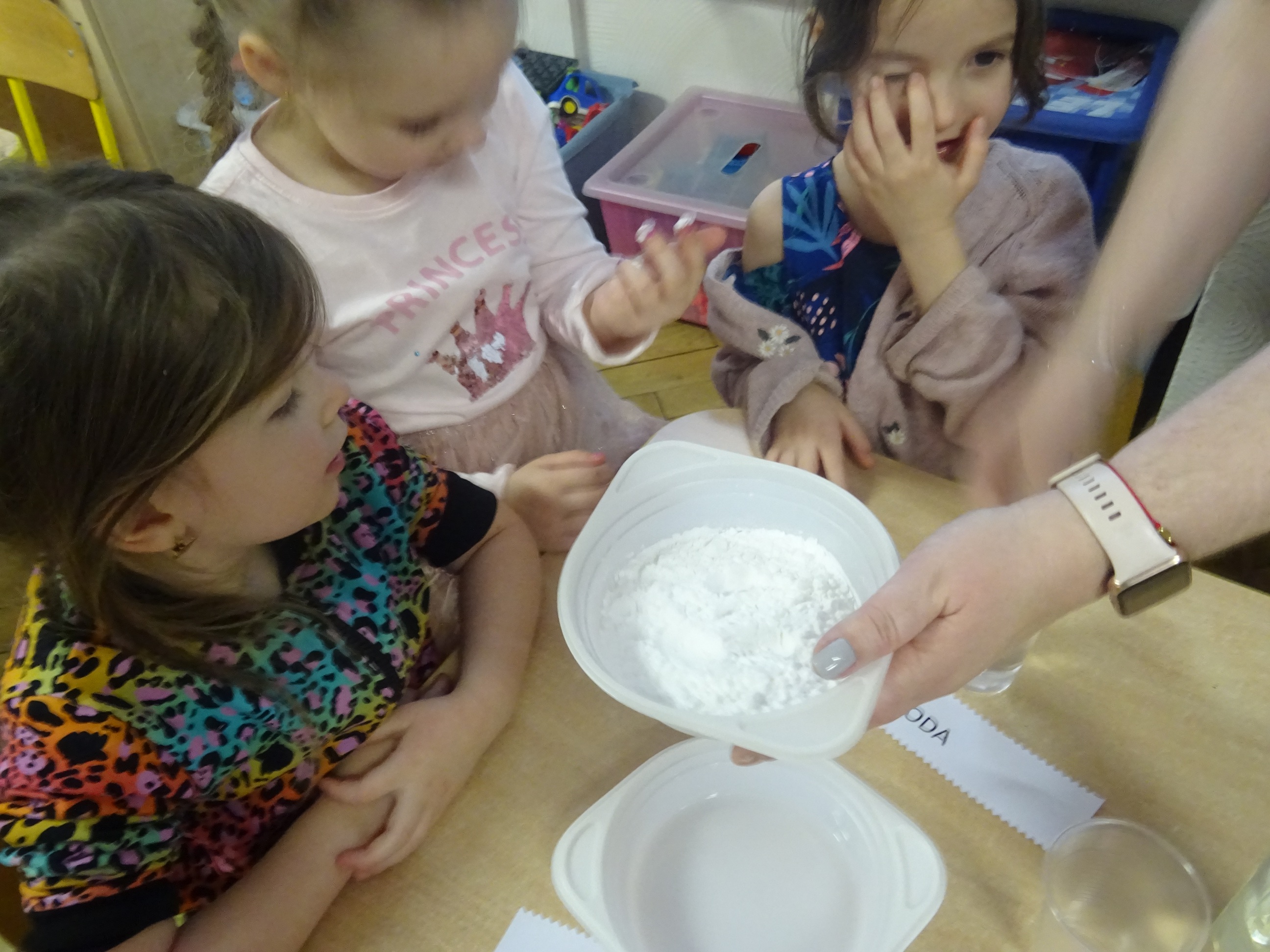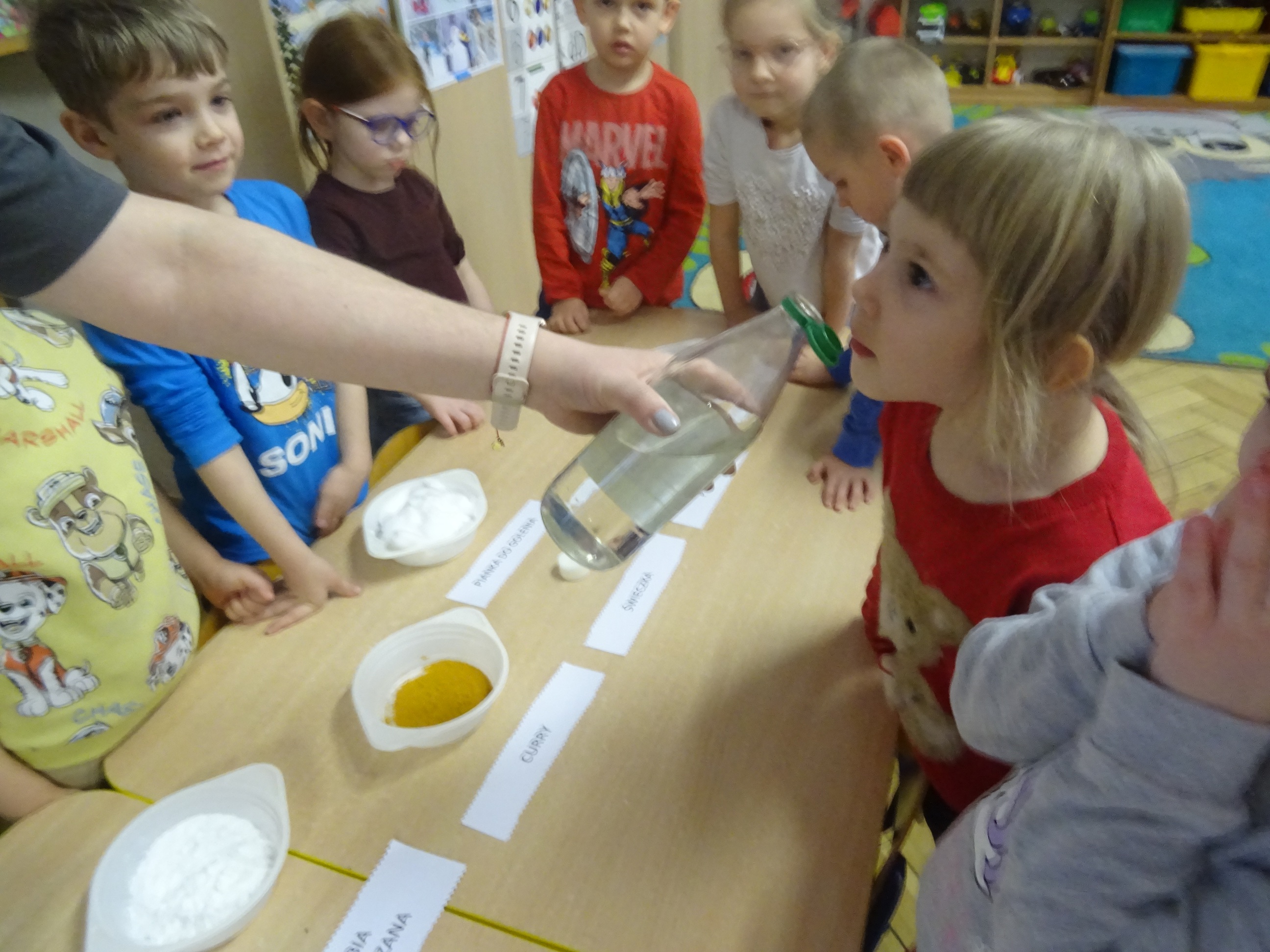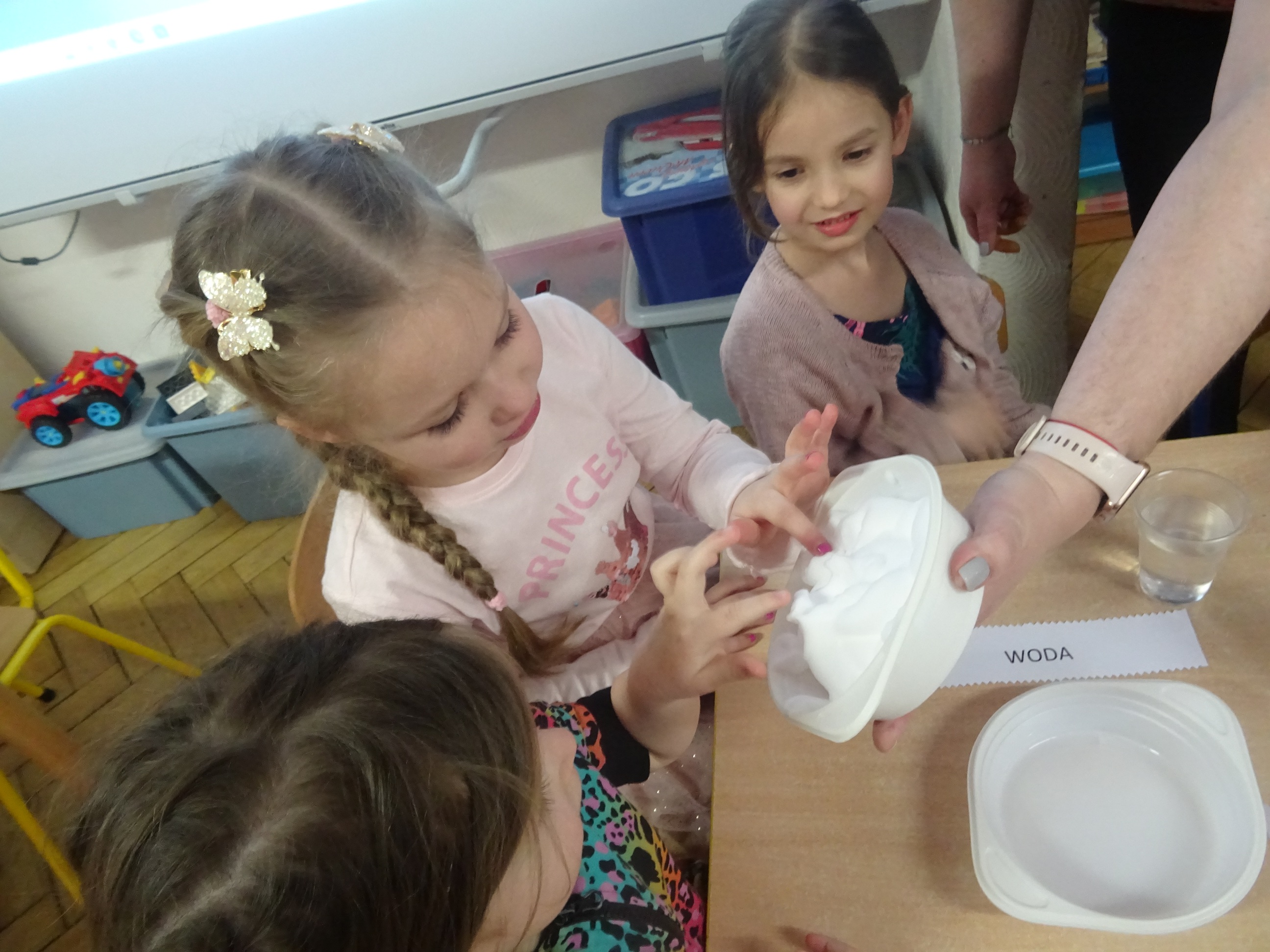 „Żaczki” mogły obserwować, jak niektóre substancje rozpuszczają się w wodzie – sprawdzały, co dzieje się z galaretką w proszku czy kawą rozpuszczalną, oraz uczyły się, jak dzięki odpowiednim połączeniom powstaje piana. Dzieci samodzielnie eksperymentowały, mieszając wodę z mydłem czy z płynem do naczyń, obserwując zmiany i wyciągając wnioski, a wszystko to w bezpiecznej i pełnej radości atmosferze.