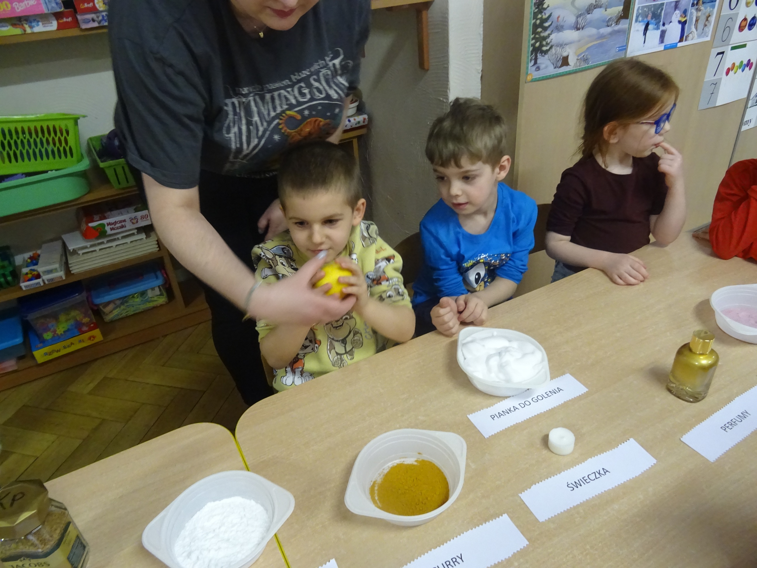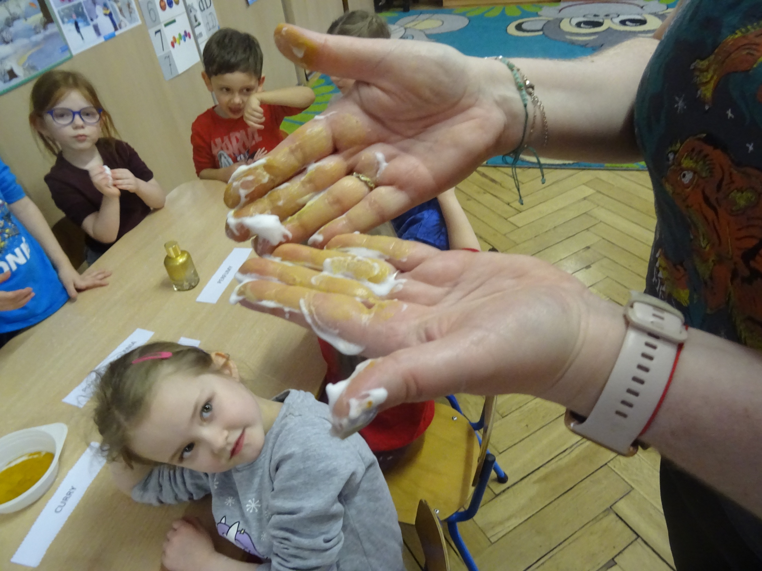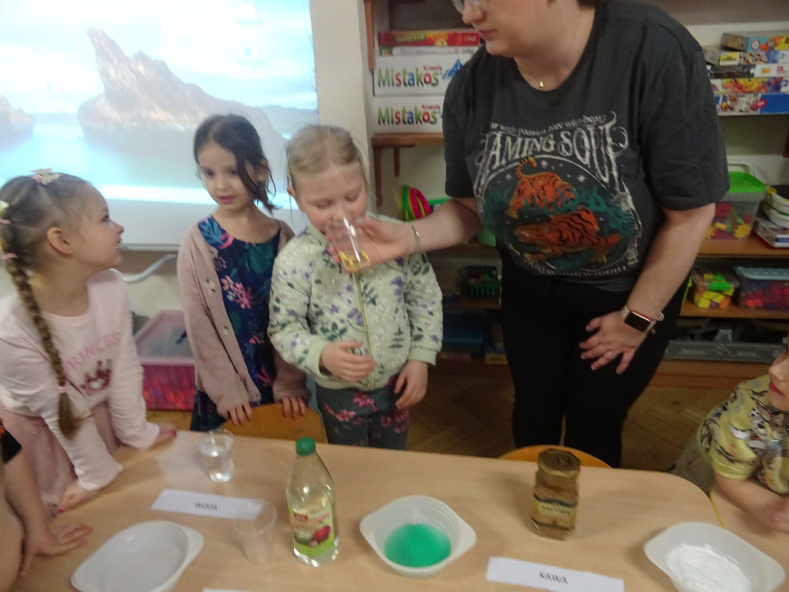„Żaczki” mogły obserwować, jak niektóre substancje rozpuszczają się w wodzie – sprawdzały, co dzieje się z galaretką w proszku czy kawą rozpuszczalną, oraz uczyły się, jak dzięki odpowiednim połączeniom powstaje piana. Dzieci samodzielnie eksperymentowały, mieszając wodę z mydłem czy z płynem do naczyń, obserwując zmiany i wyciągając wnioski, a wszystko to w bezpiecznej i pełnej radości atmosferze.