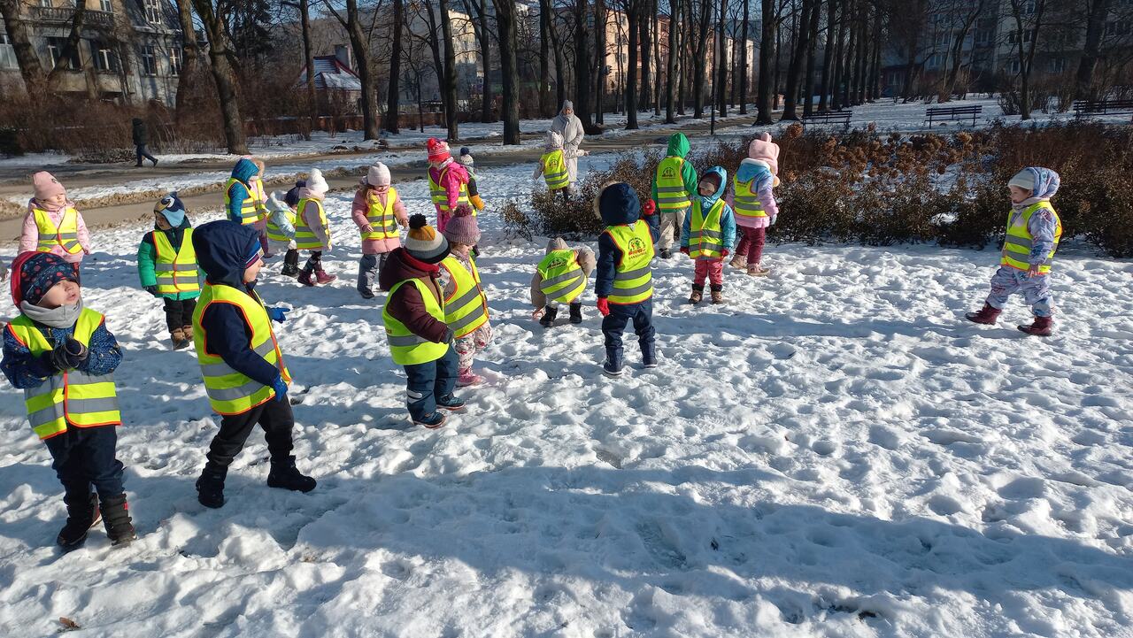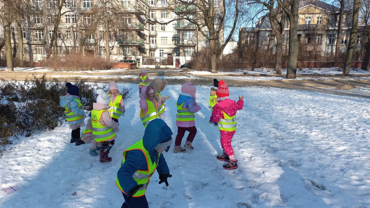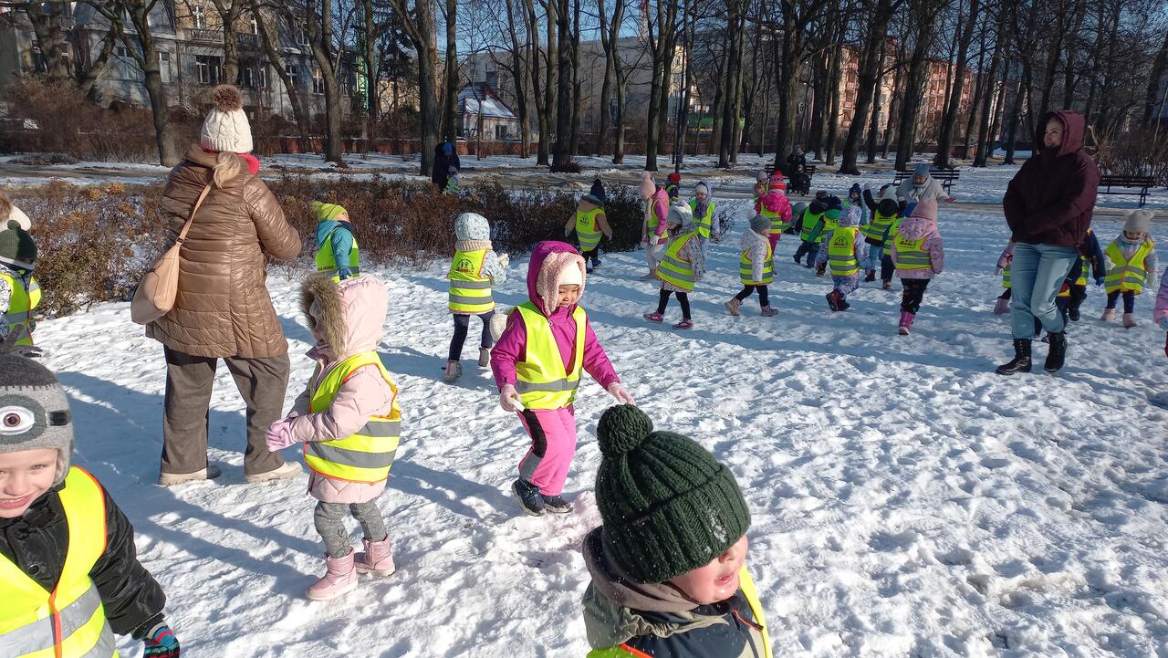 22.01.2025r. dzieci ze wszystkich grup wiekowych wybrały się na spacery w okolicach Przedszkola.
