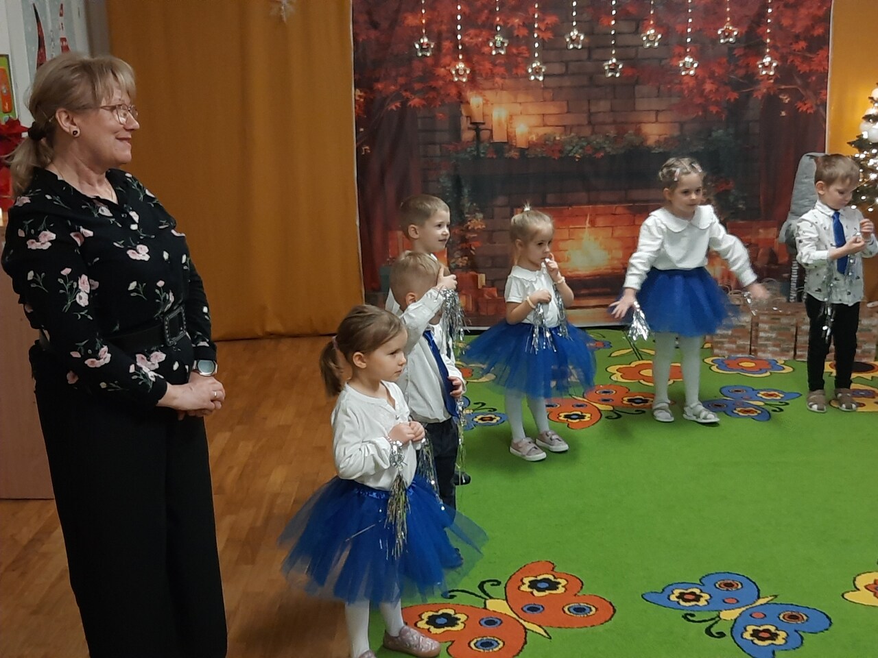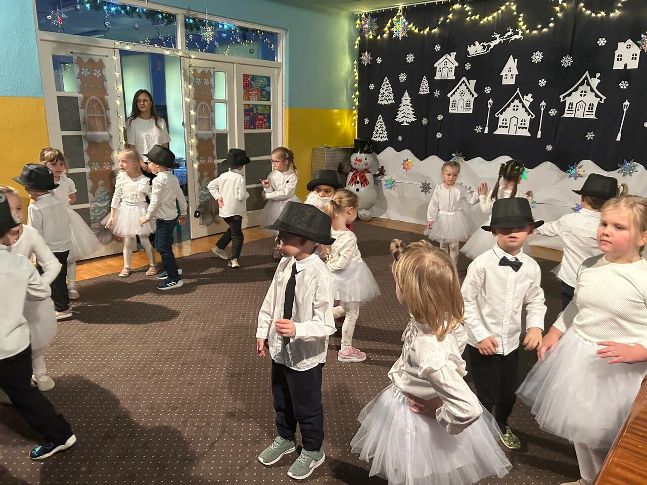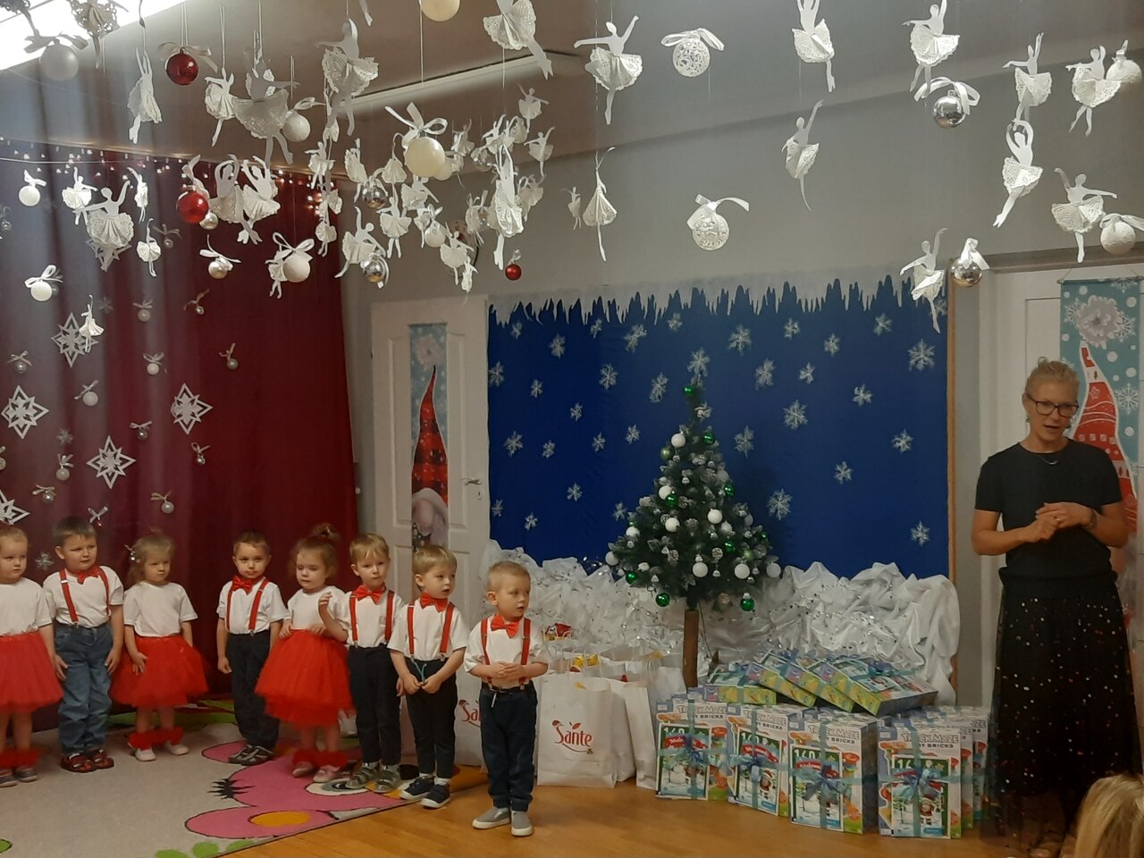 Przy kojących dźwiękach kolęd, a nawet skaczących iskier z rozgrzanych do czerwoności kominków, każda grupa przyjęła miłych gości. Po wspaniałych prezentacjach nadszedł czas na piękne, świąteczno- noworoczne życzenia ze strony Pani Dyrektor. Przy tej okazji każdy przedszkolak został obdarowany świątecznym prezentem- zakupionym dzięki wsparciu Rady Rodziców.